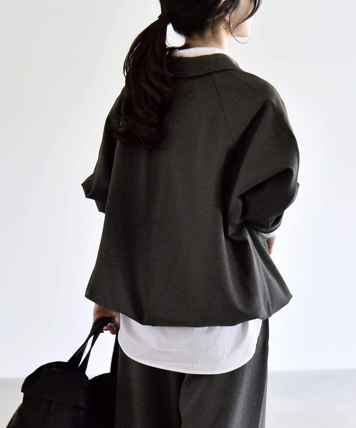 上品なハリのある生地感が大人のリラックススタイルにぴったりの一枚です。