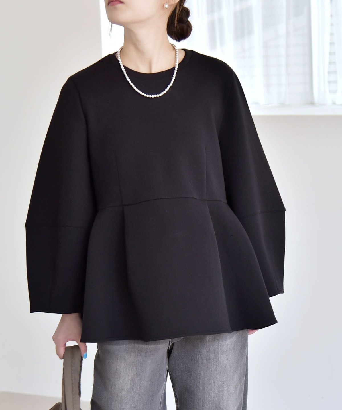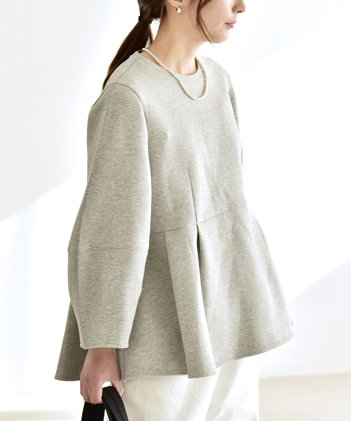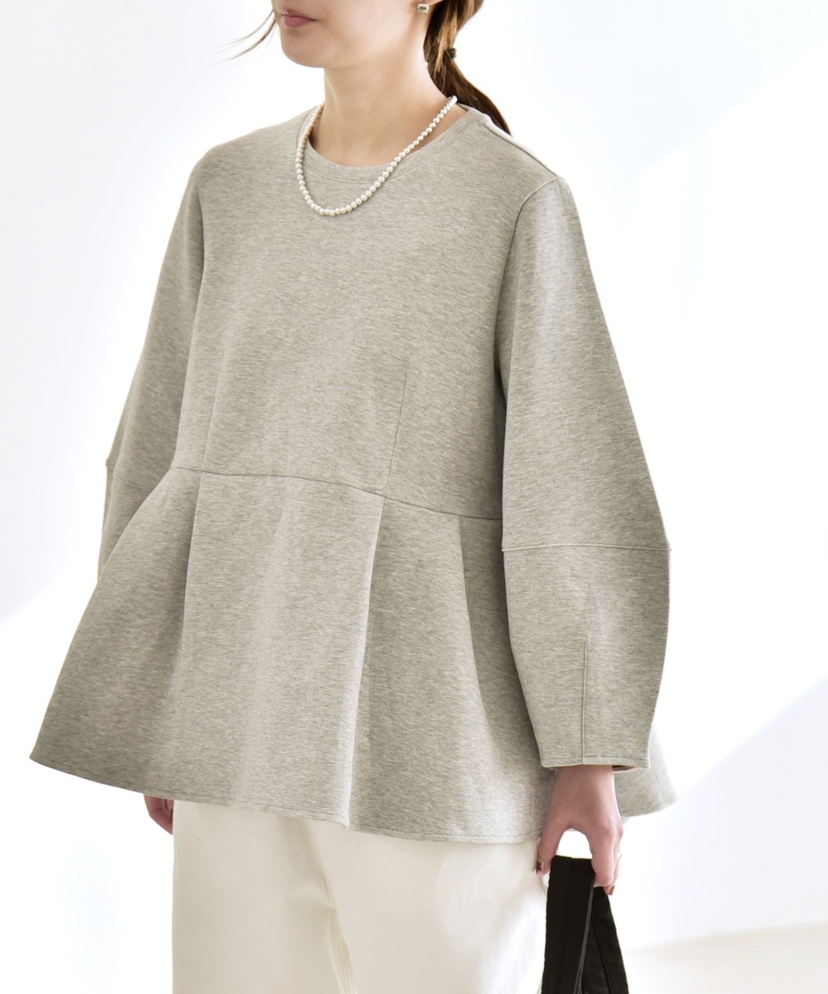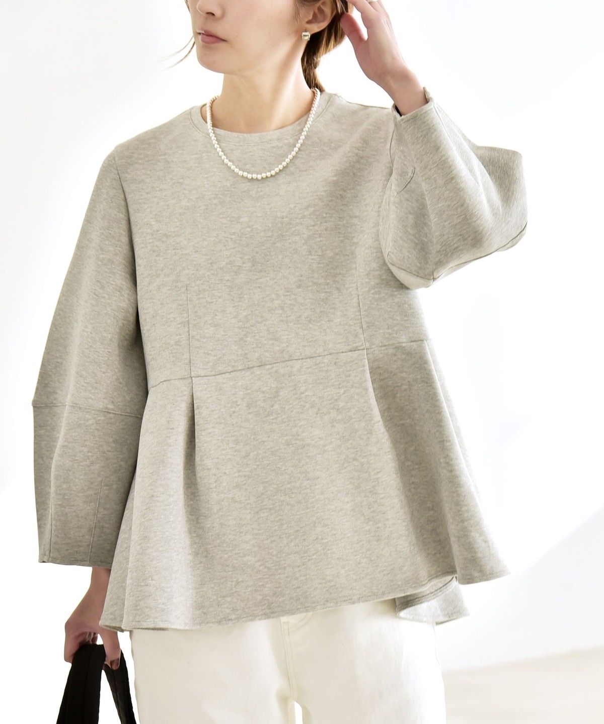 ふんわりと広がるペプラムシルエットがポイントのスウェット。