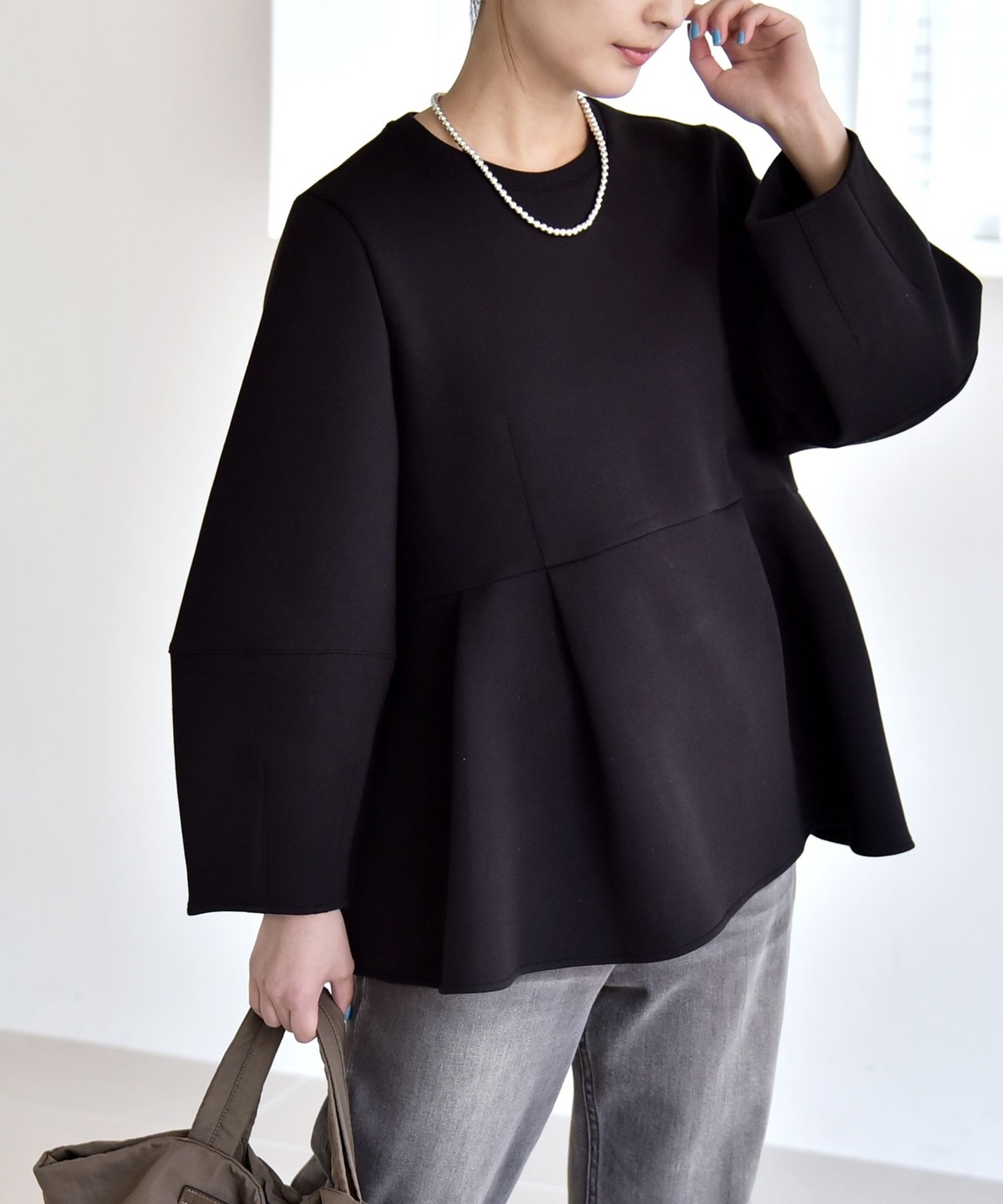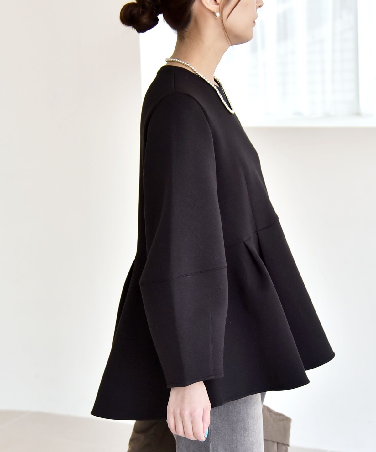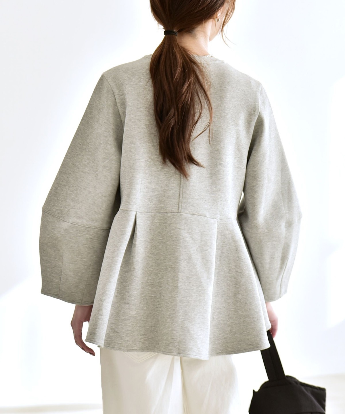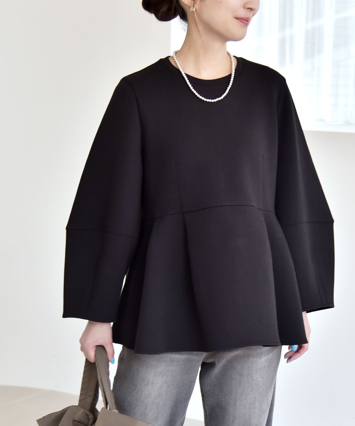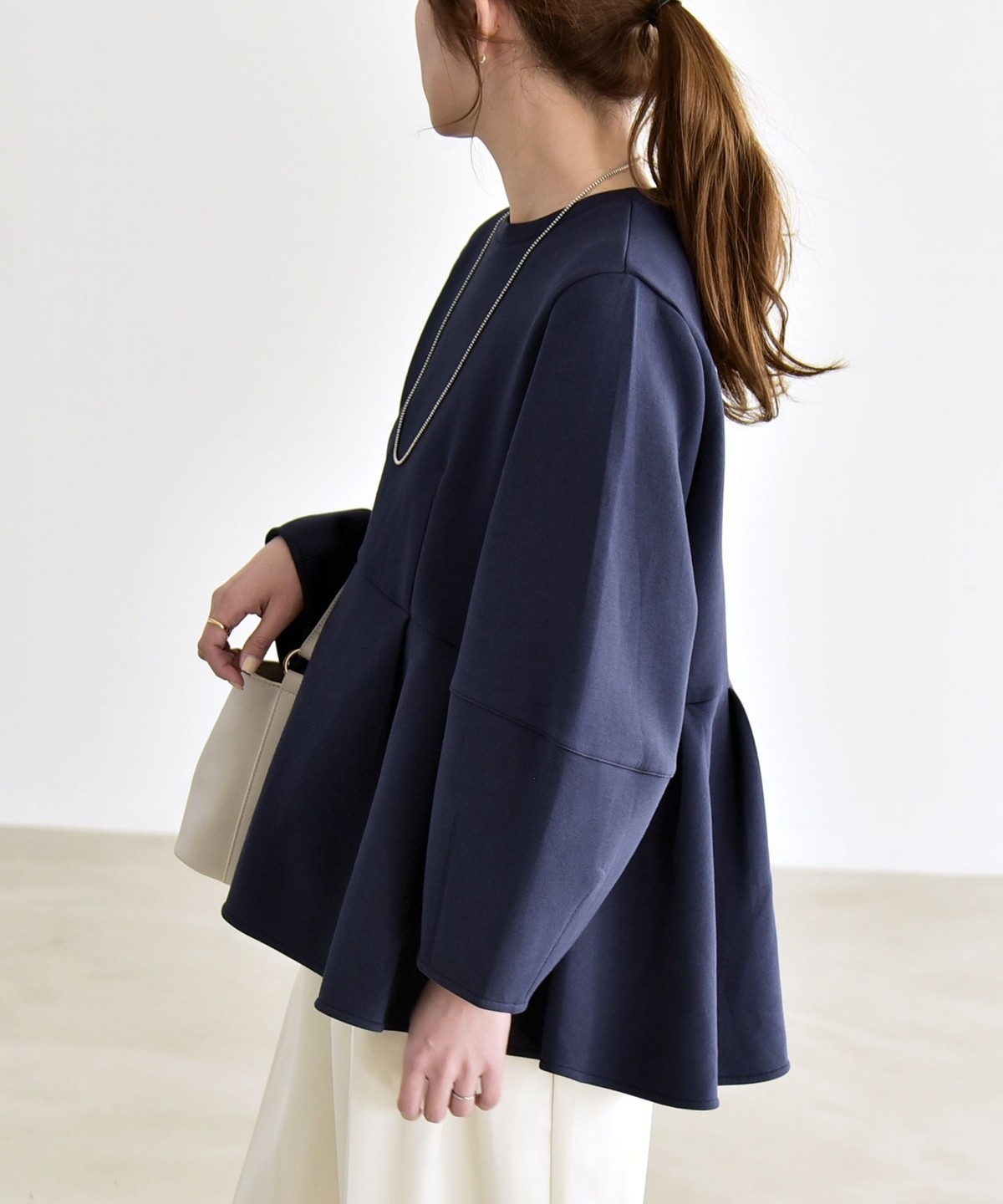 ふんわりと広がるペプラムシルエットがポイントのスウェット。