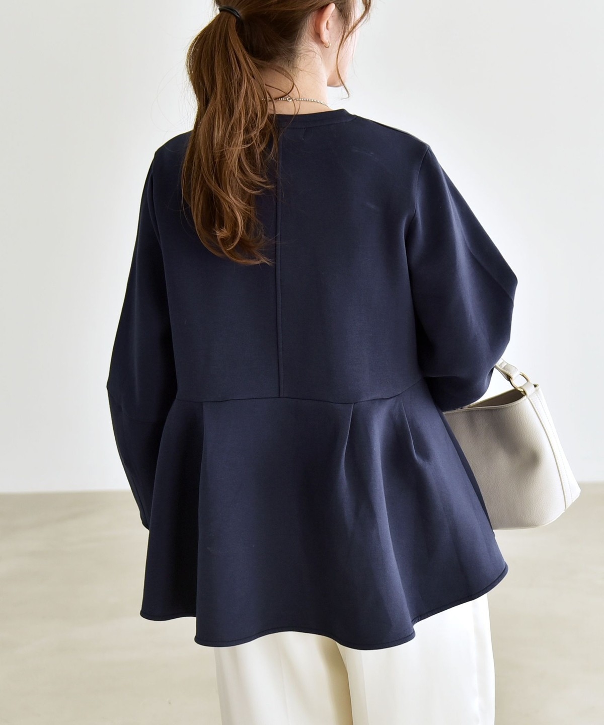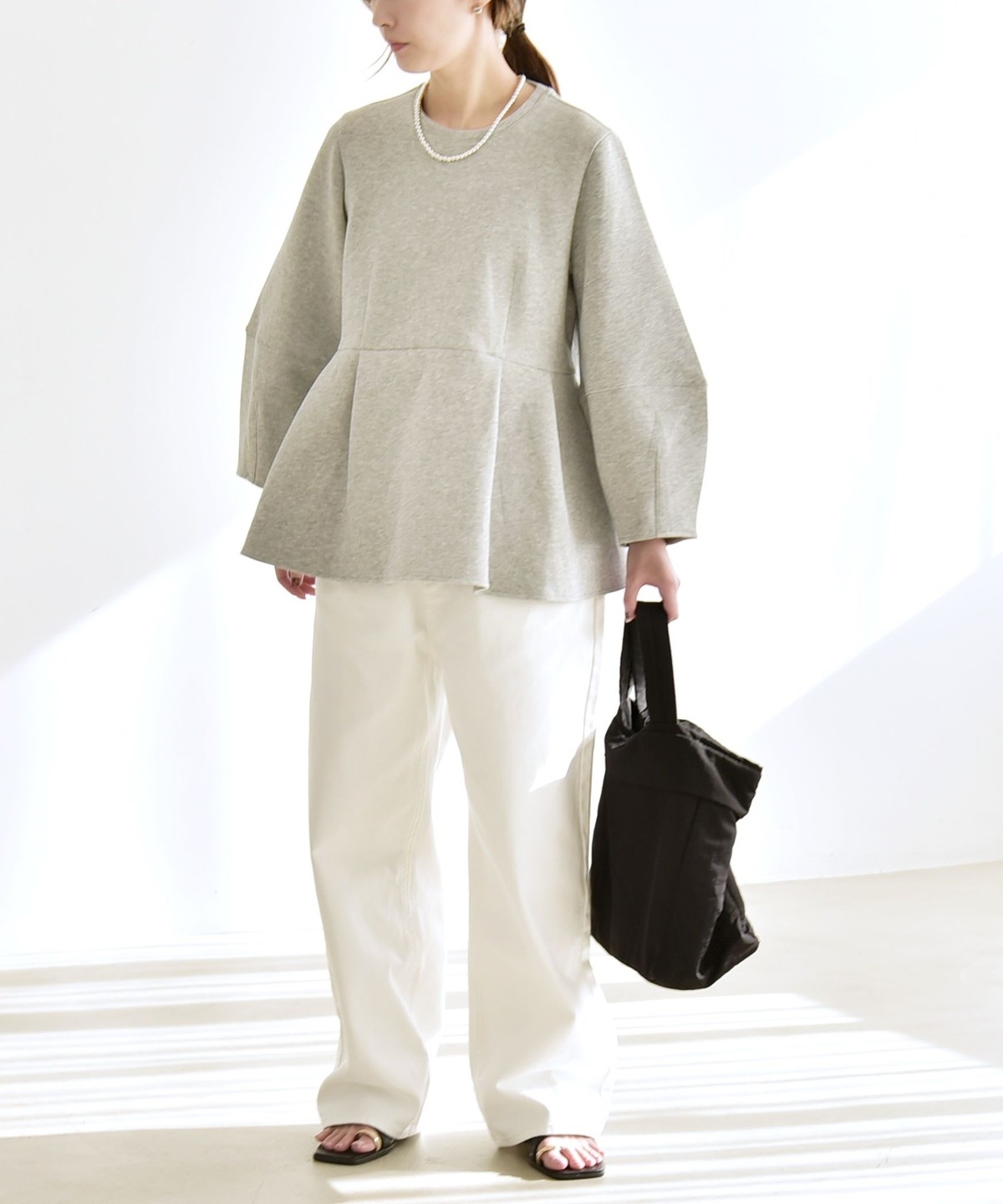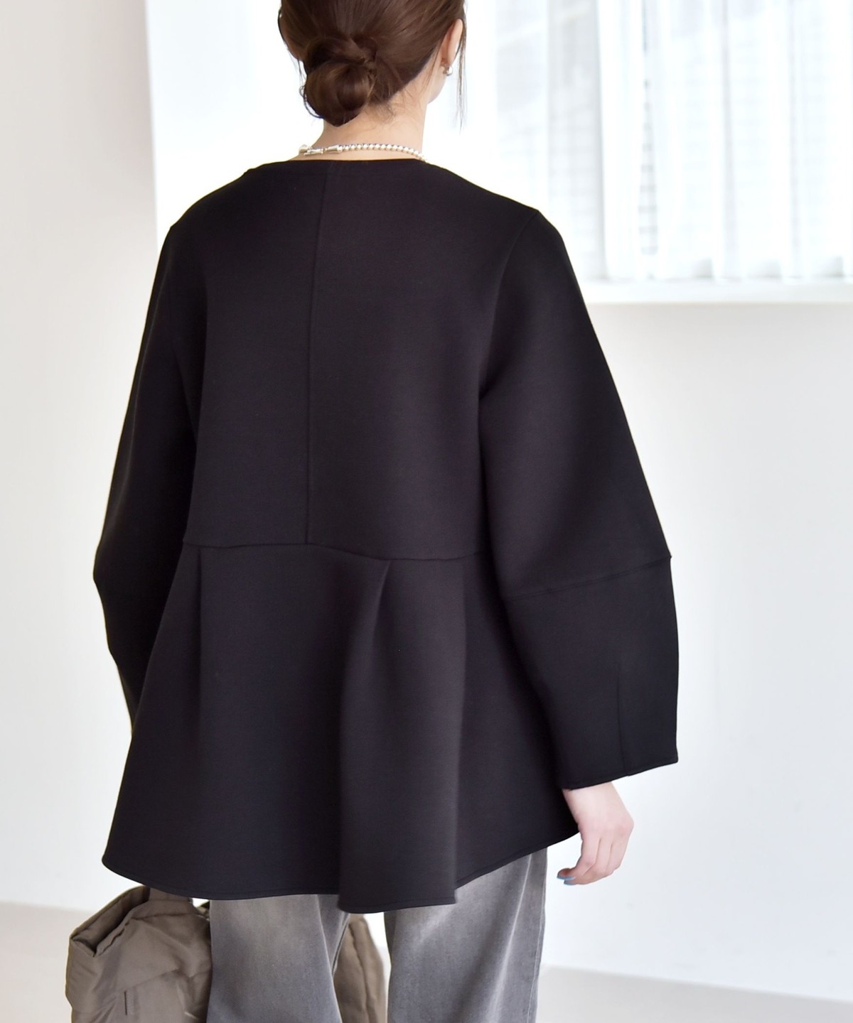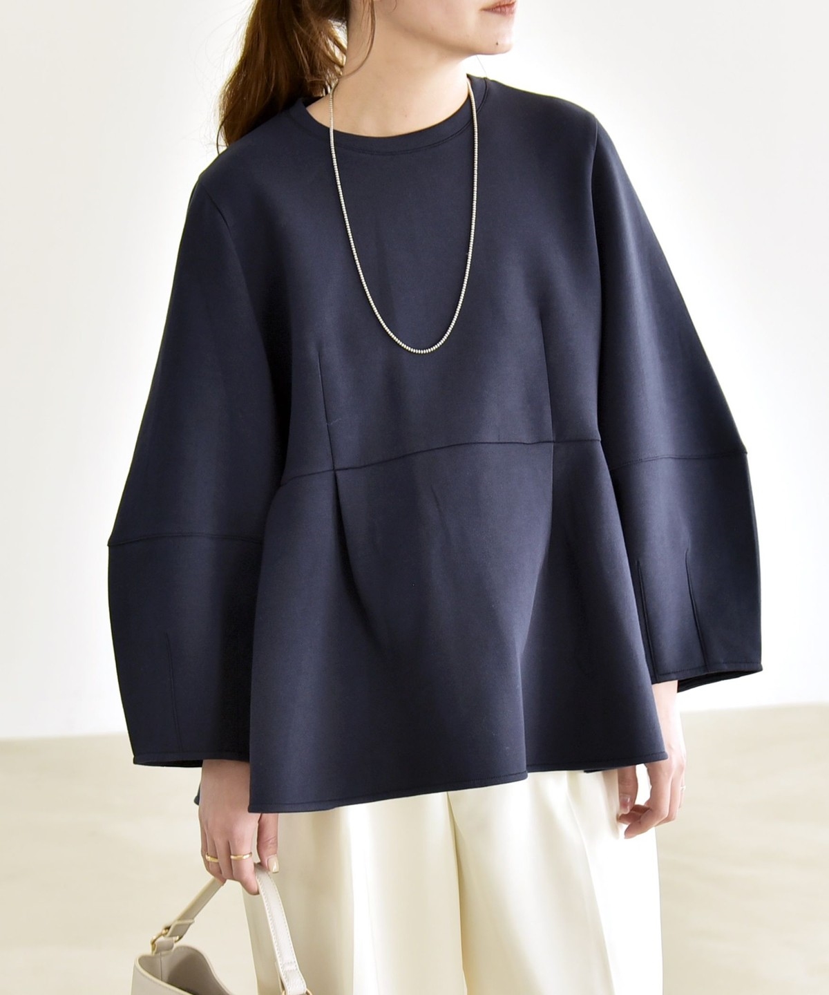 ふんわりと広がるペプラムシルエットがポイントのスウェット。