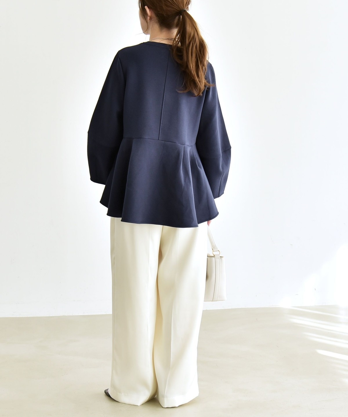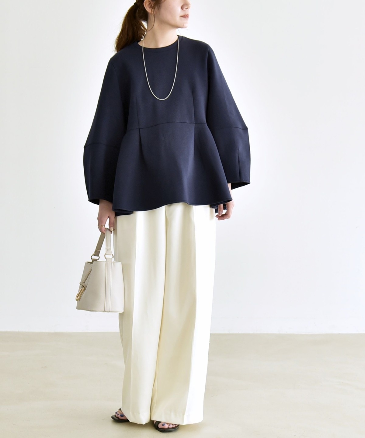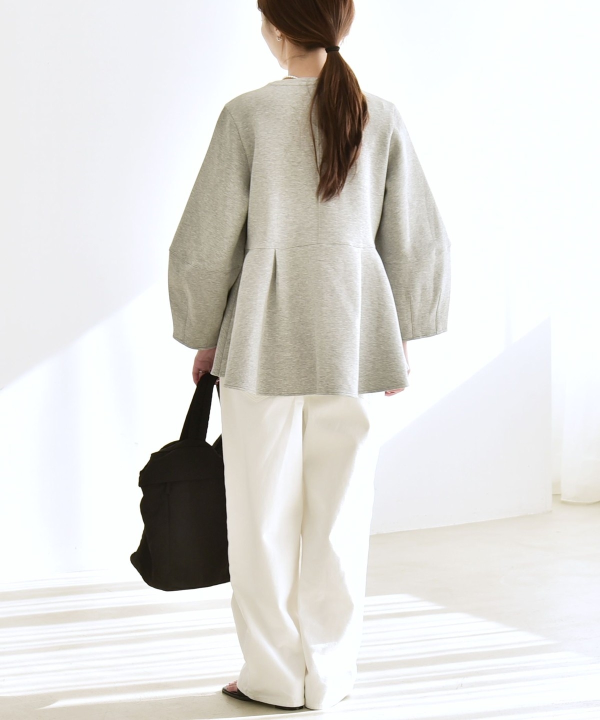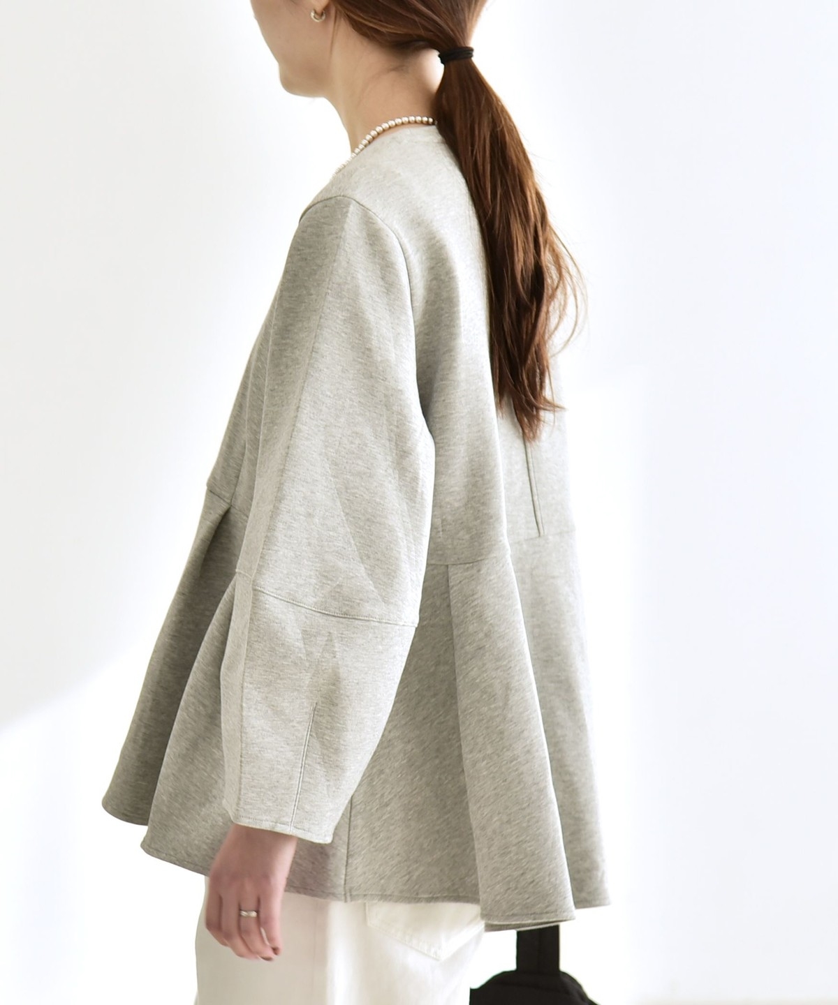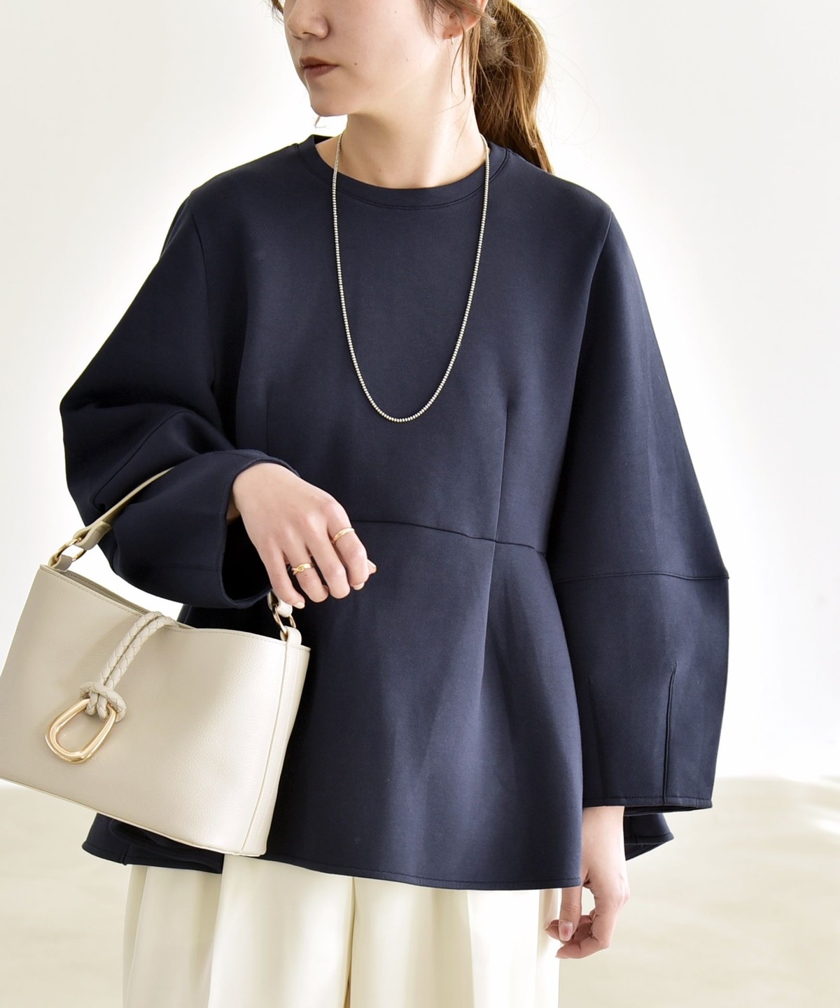 ふんわりと広がるペプラムシルエットがポイントのスウェット。