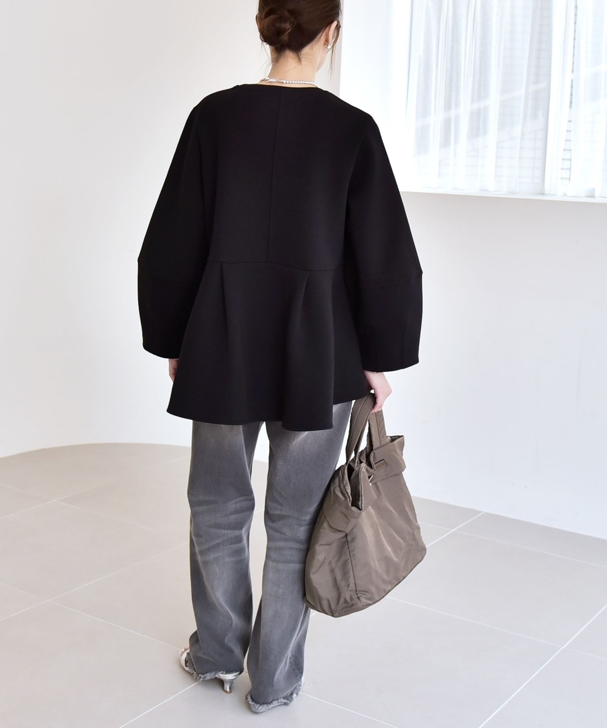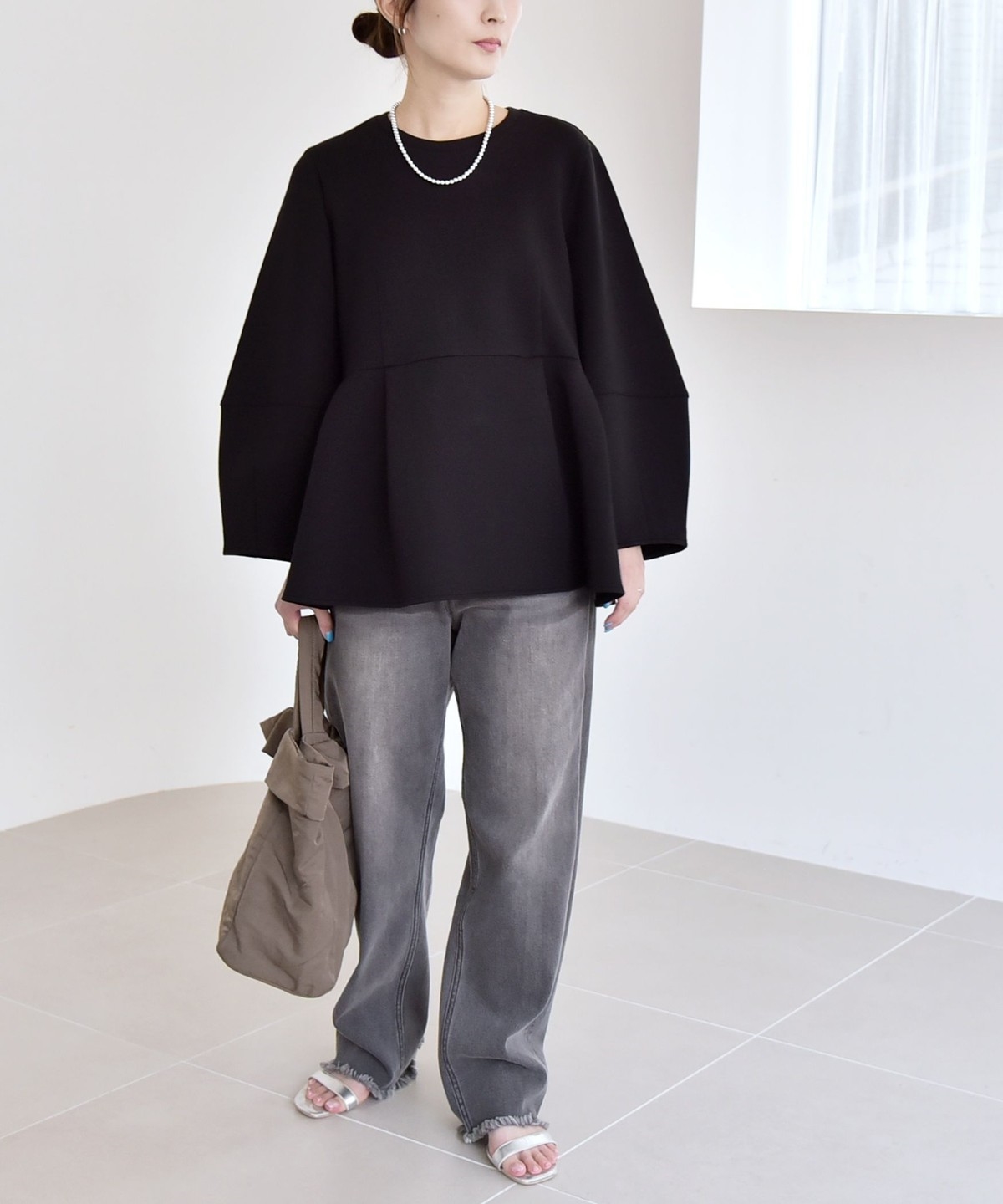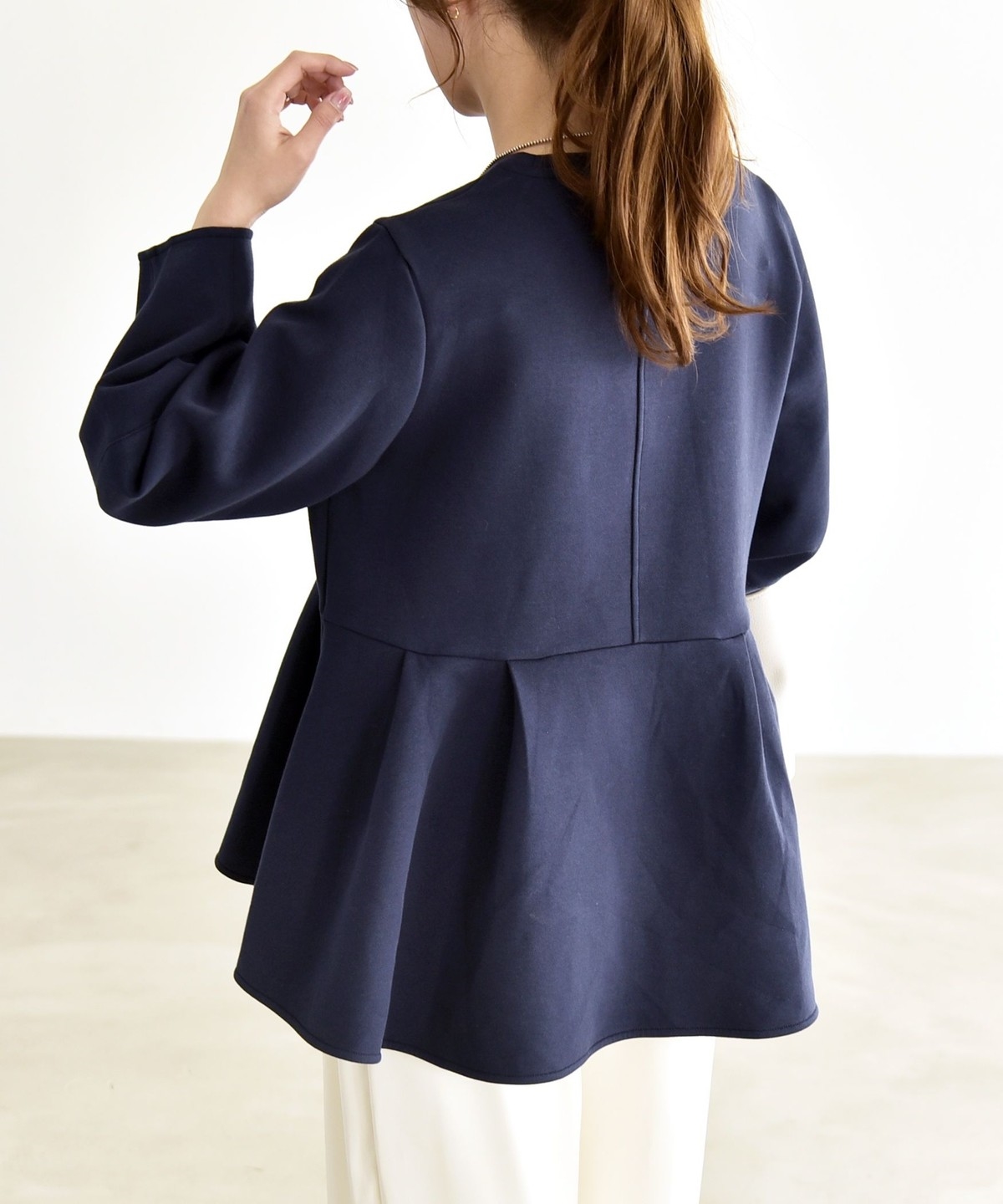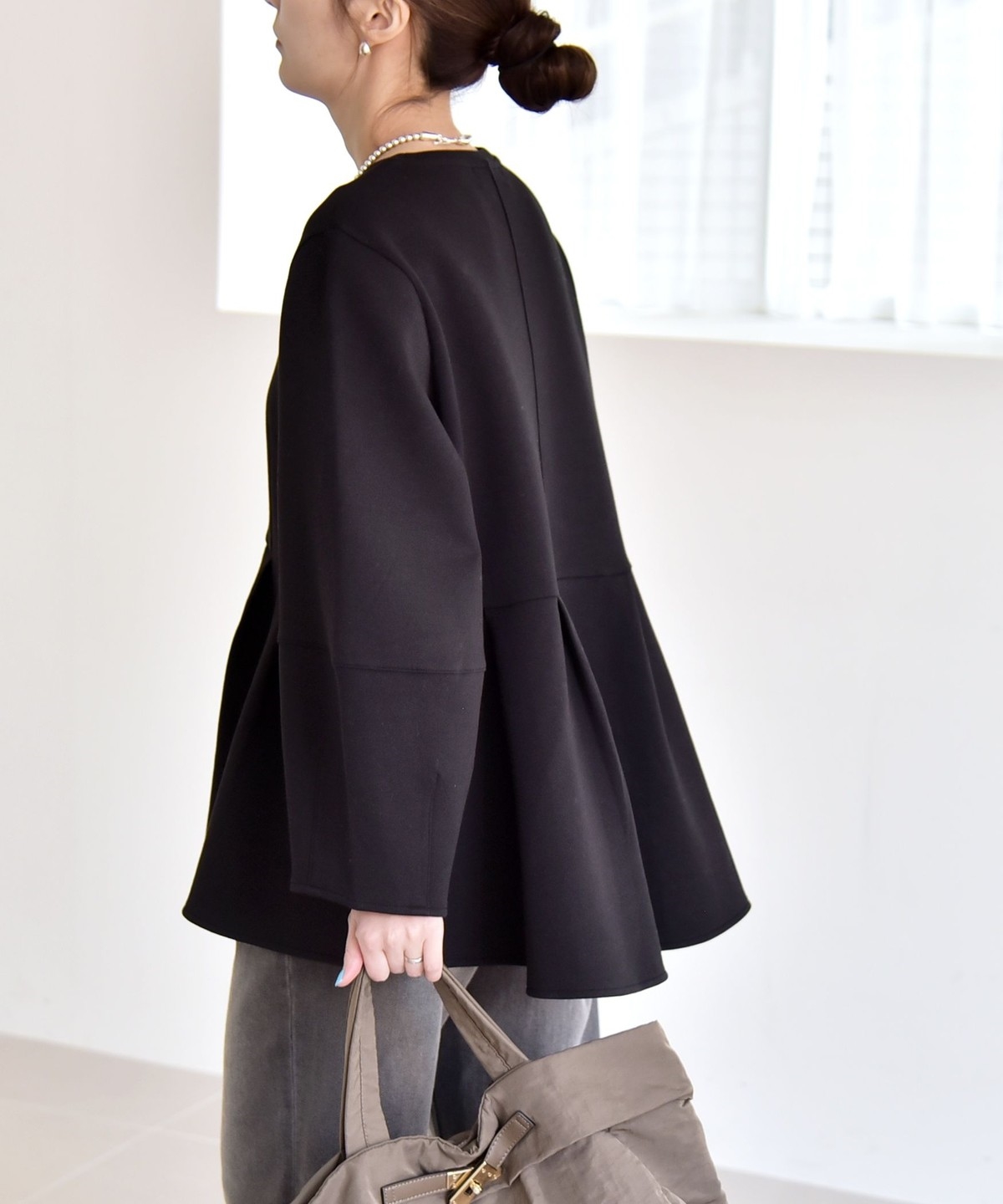 ふんわりと広がるペプラムシルエットがポイントのスウェット。