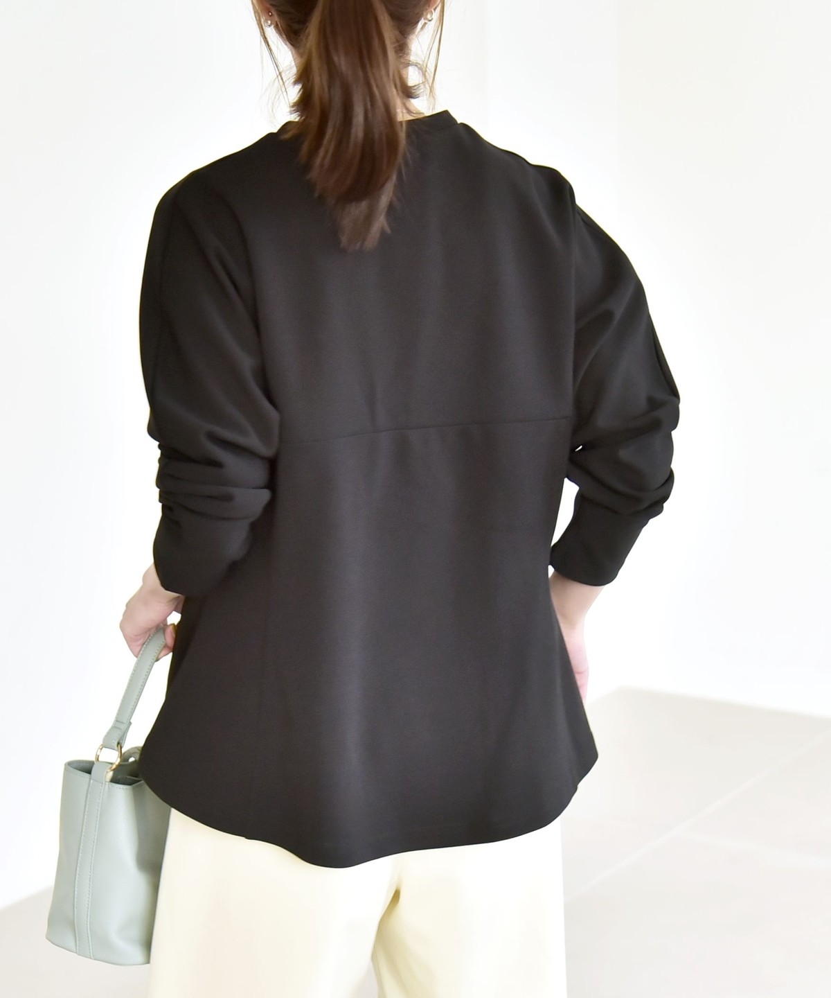 ジャケットやブルゾンのインナーとしても映えてくれるので、オフィスカジュアルにもぴったりです。