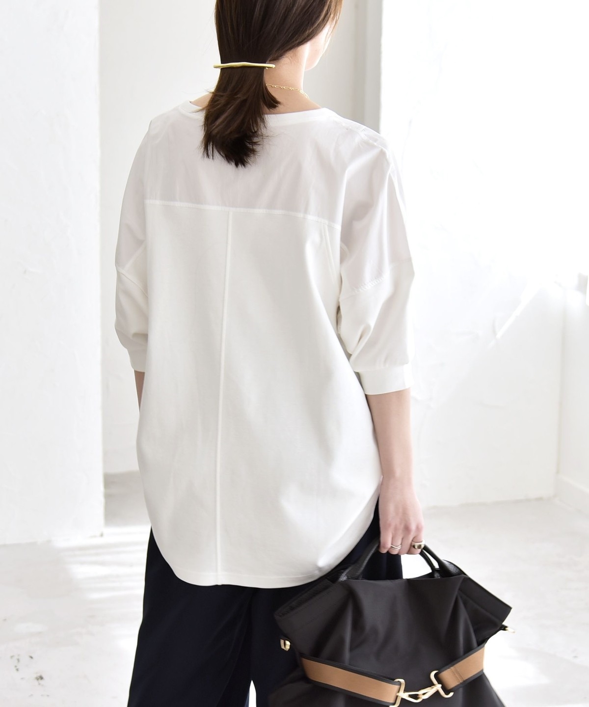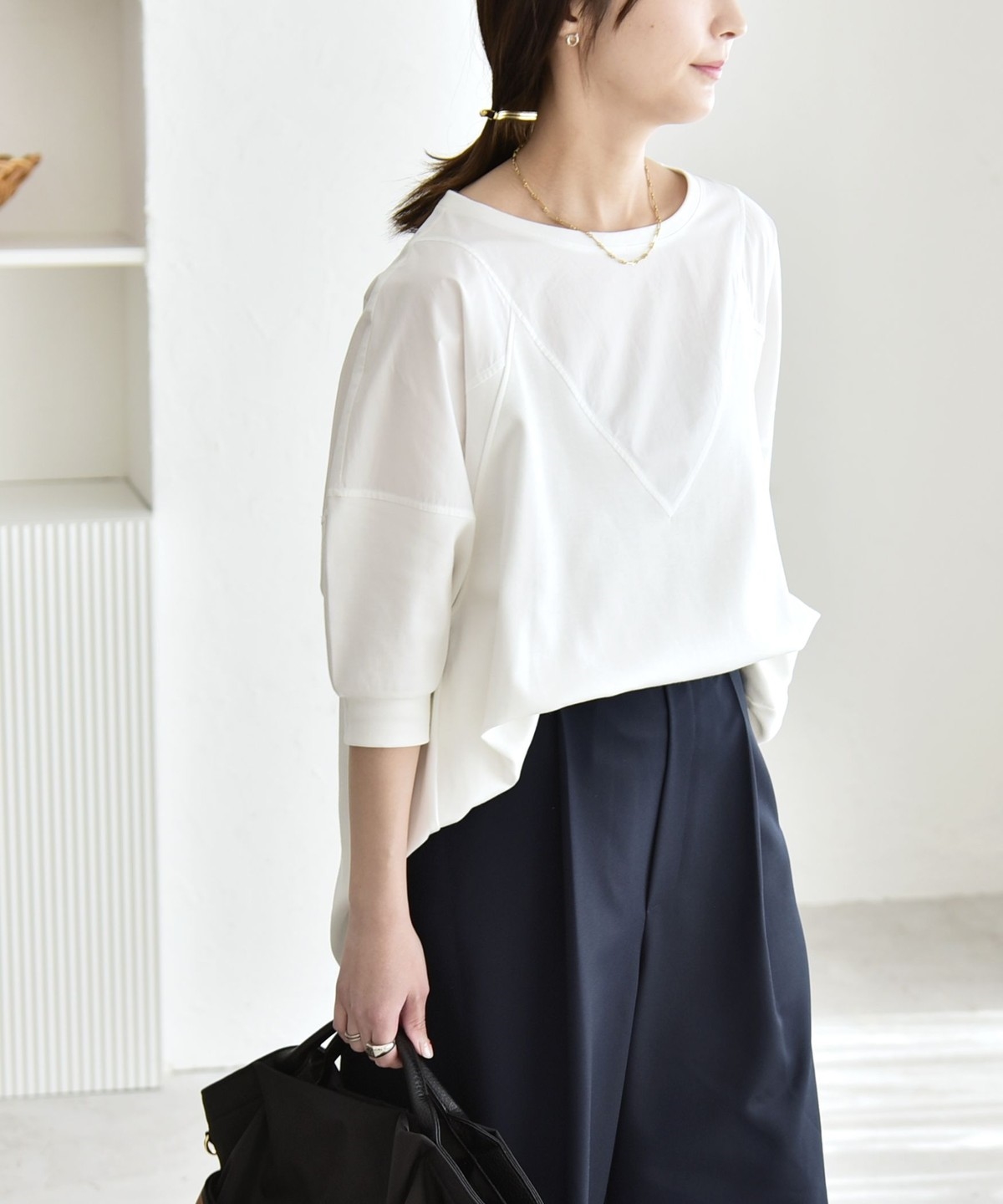 5. 《予約》quaranciel:〈接触冷感/汗染み防止加工/洗濯機可能〉ドッキング Aライン カットソー