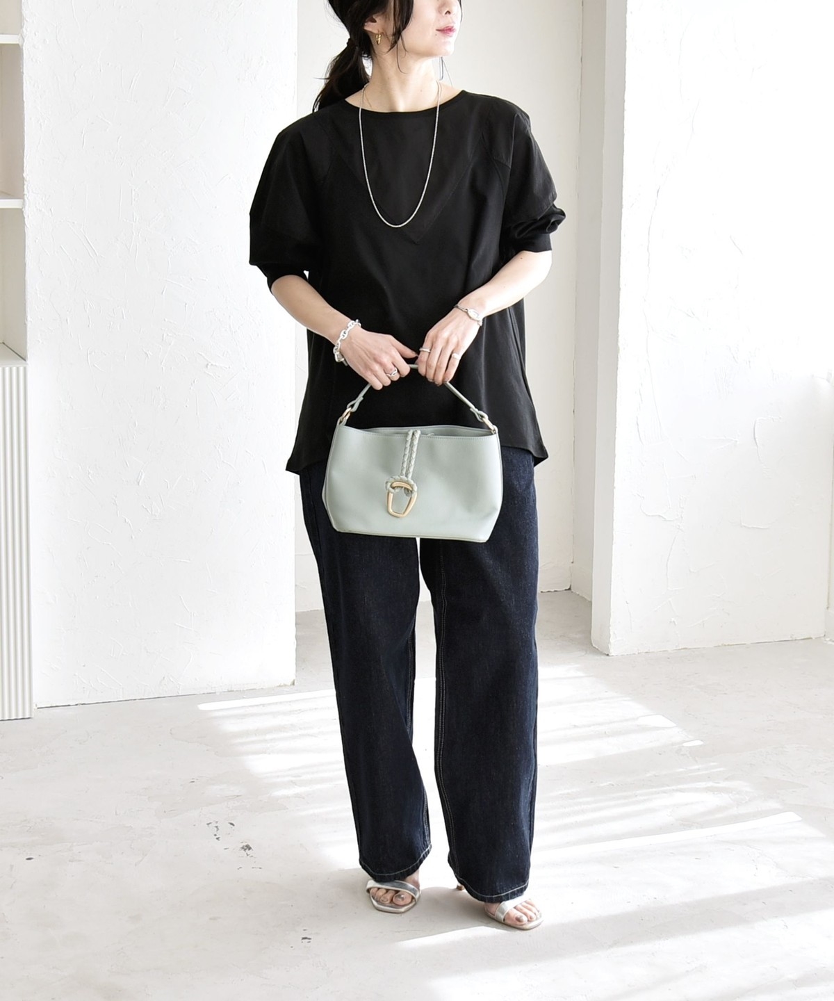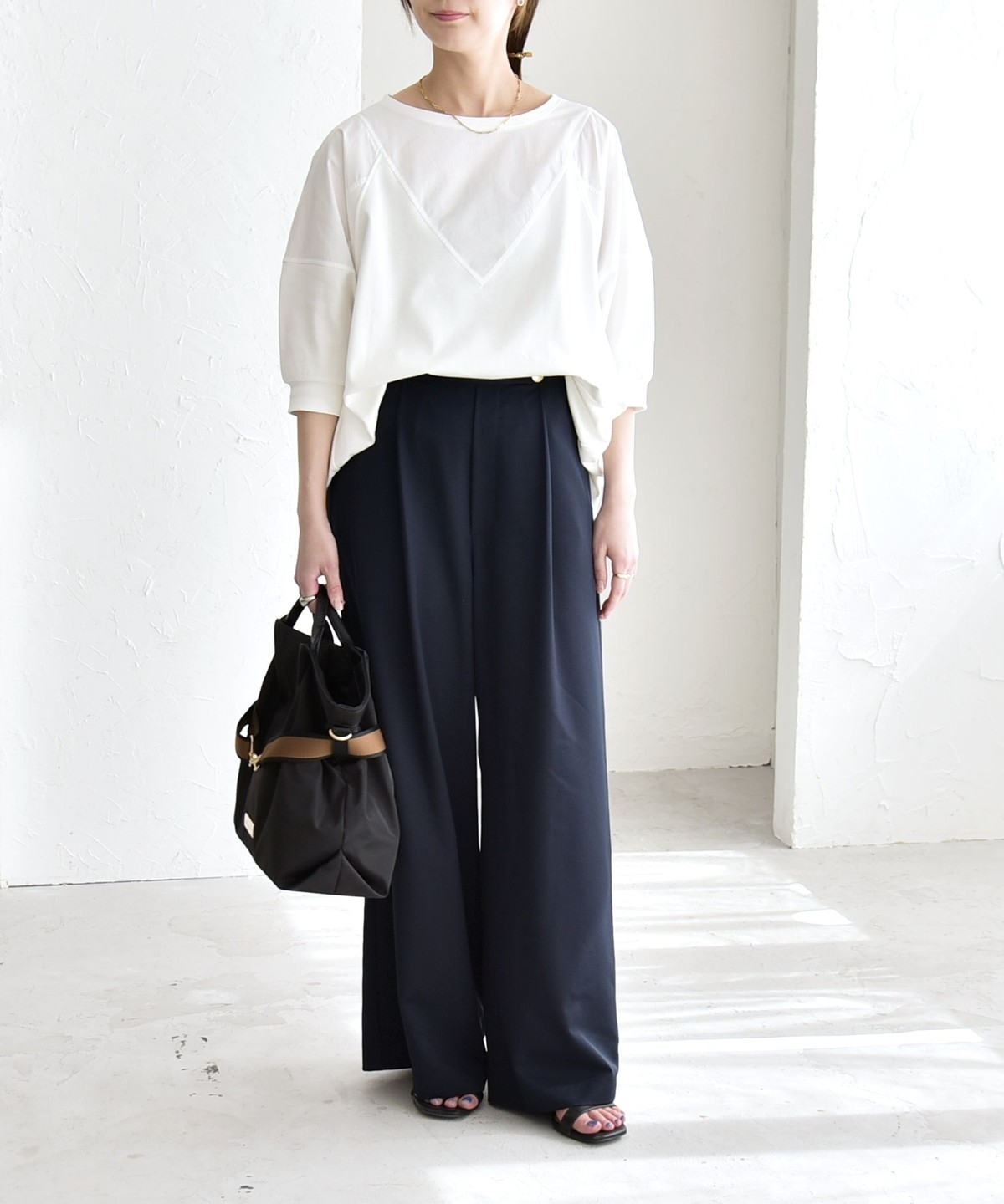 ワイドパンツやデニムと合わせて、程よくリラックス感のある大人カジュアルなスタイルに。