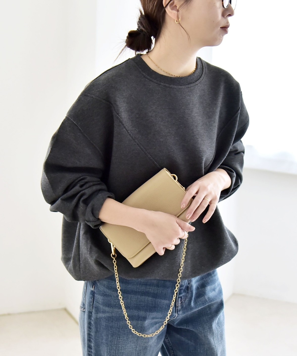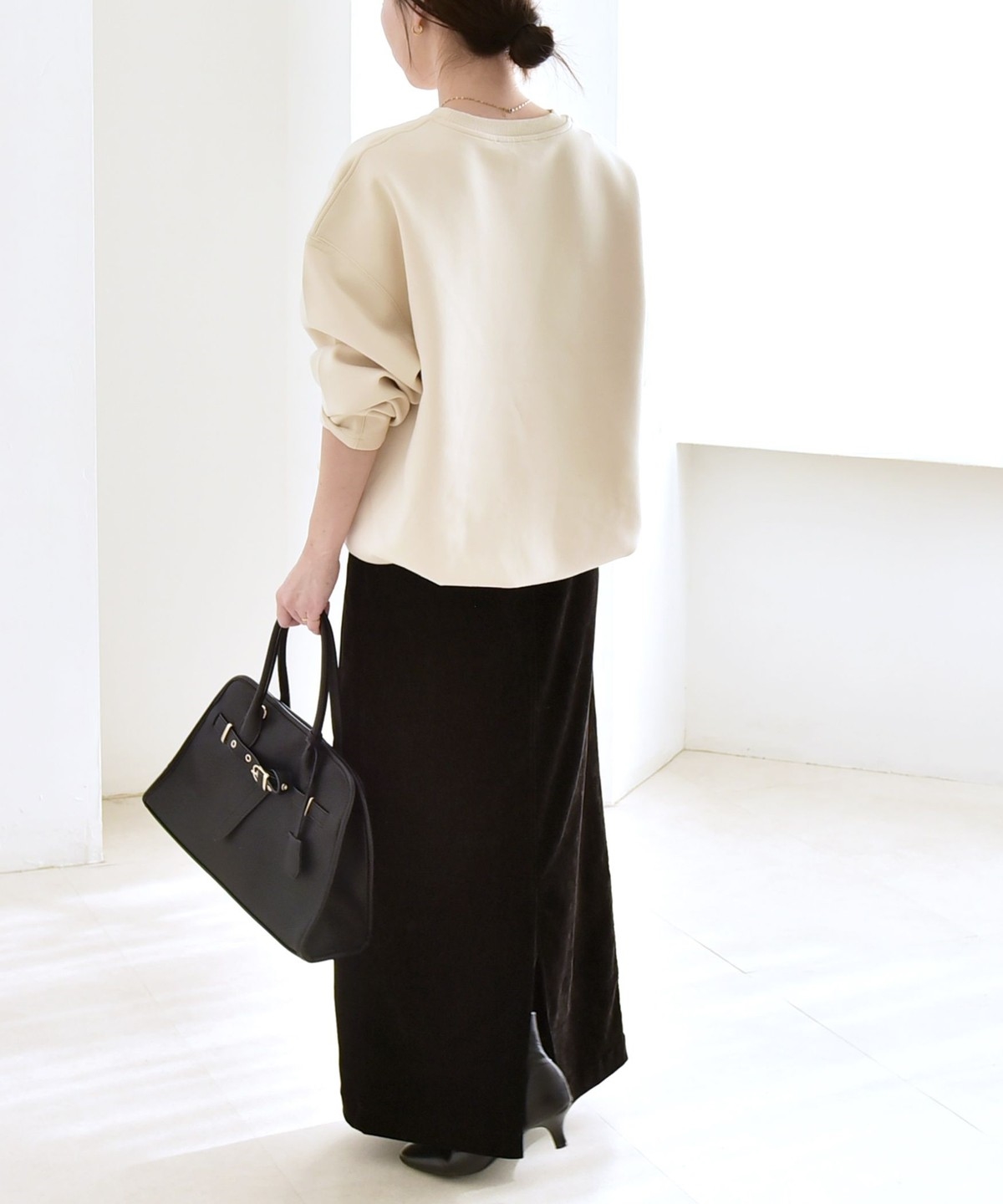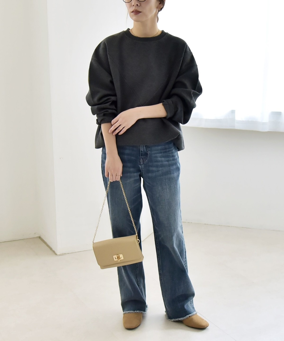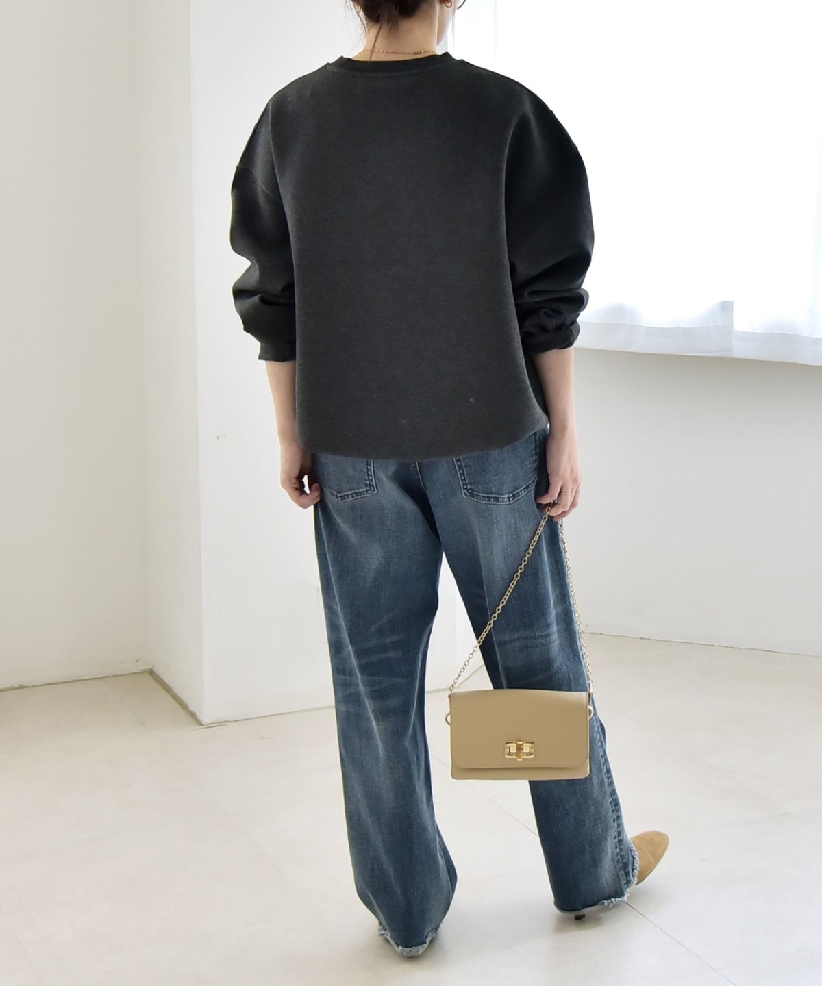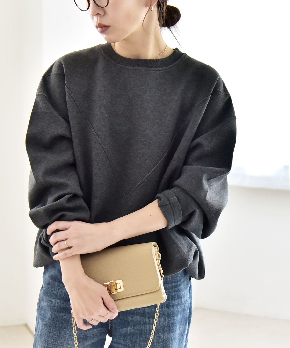 タックインしなくてもふんわりと可愛いコクーンシルエットになり、ボトムとも好バランス。