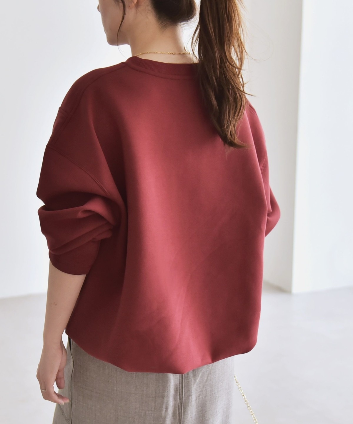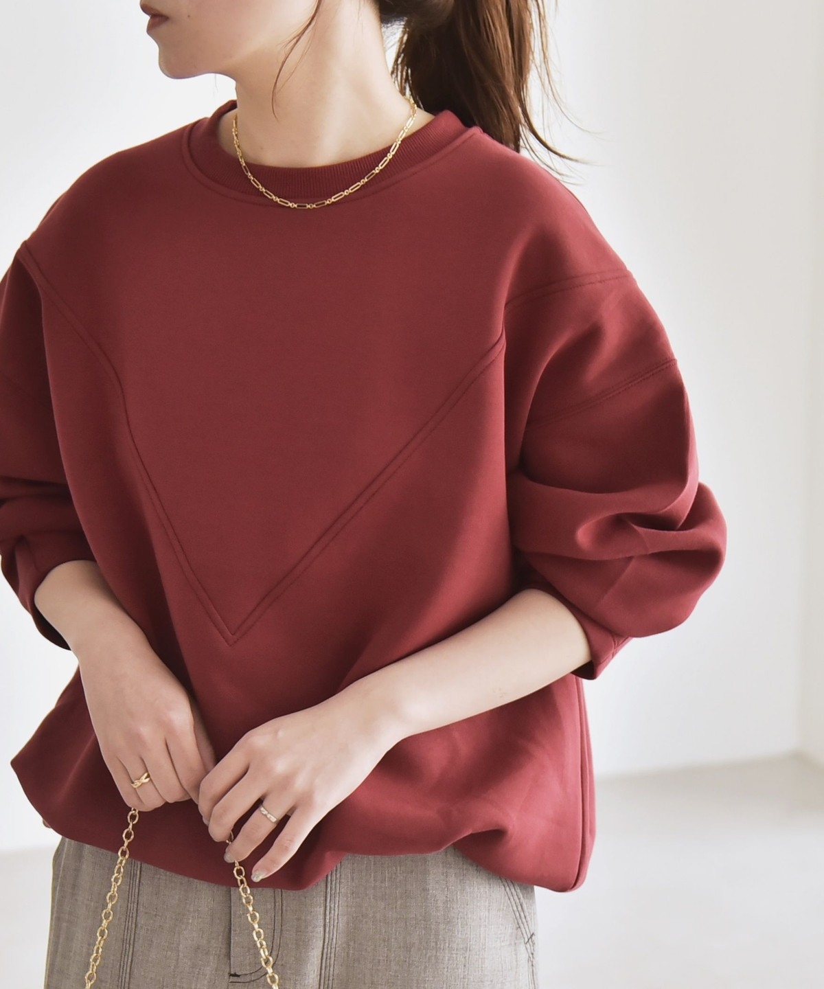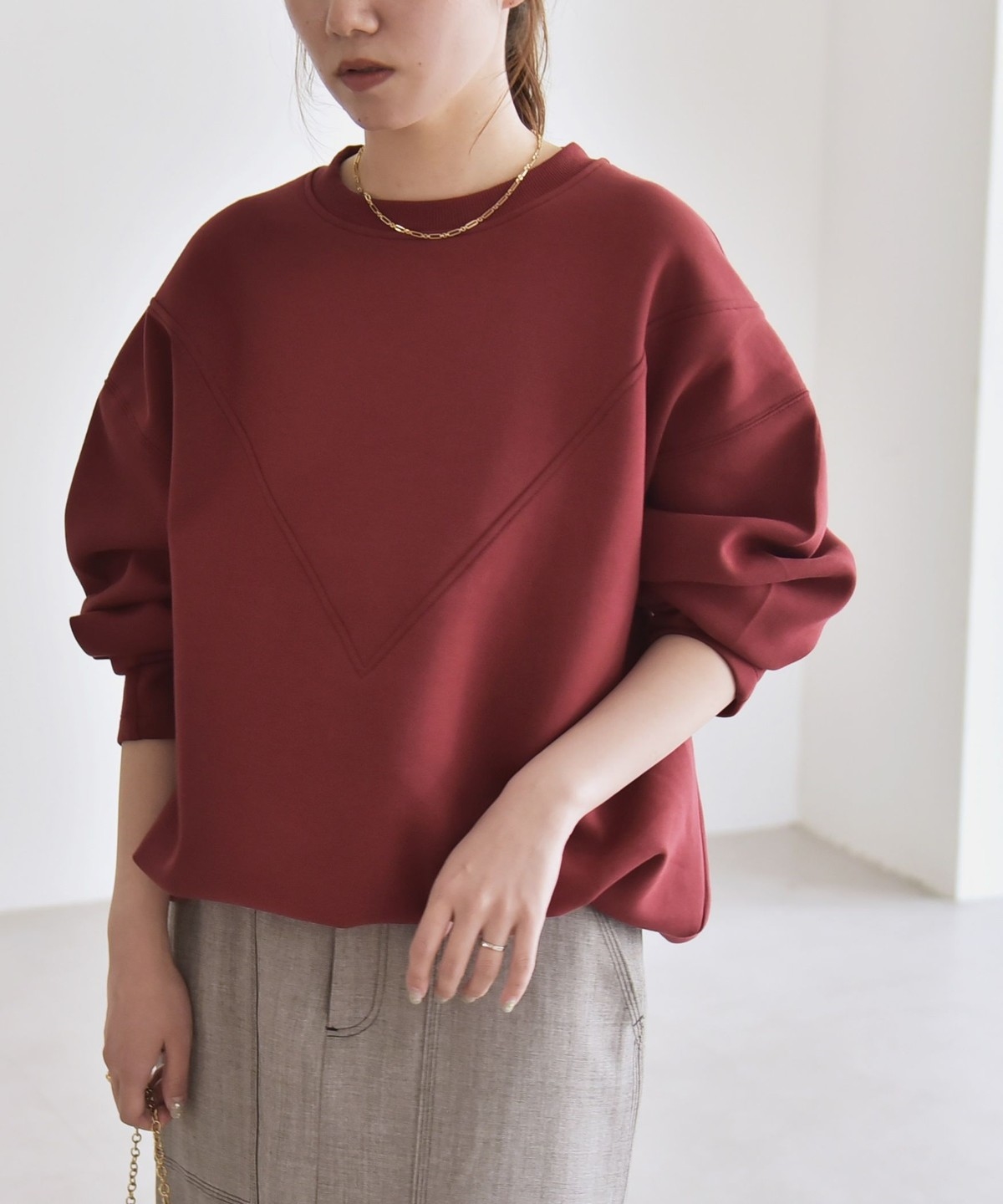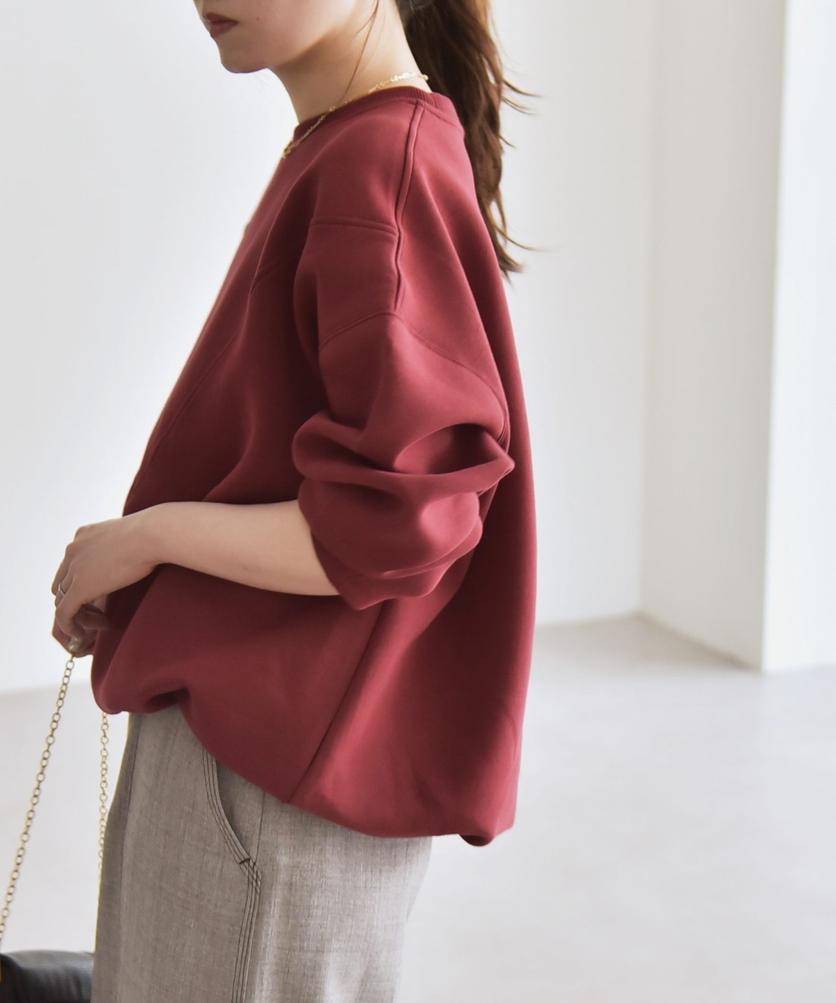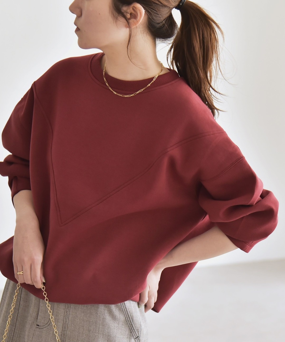 5. 《一部追加予約》quaranciel:〈洗濯機可能〉ポンチ Vヨークバルーン スウェット プルオーバー ワイン