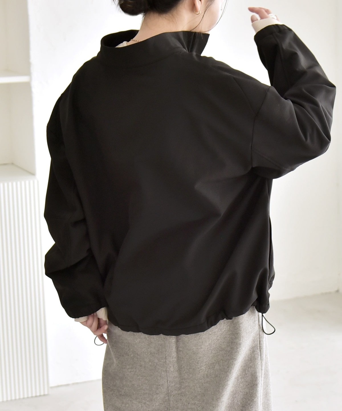 ハーフジップとスタンドカラーがスポーティーなニュアンスを加えています。