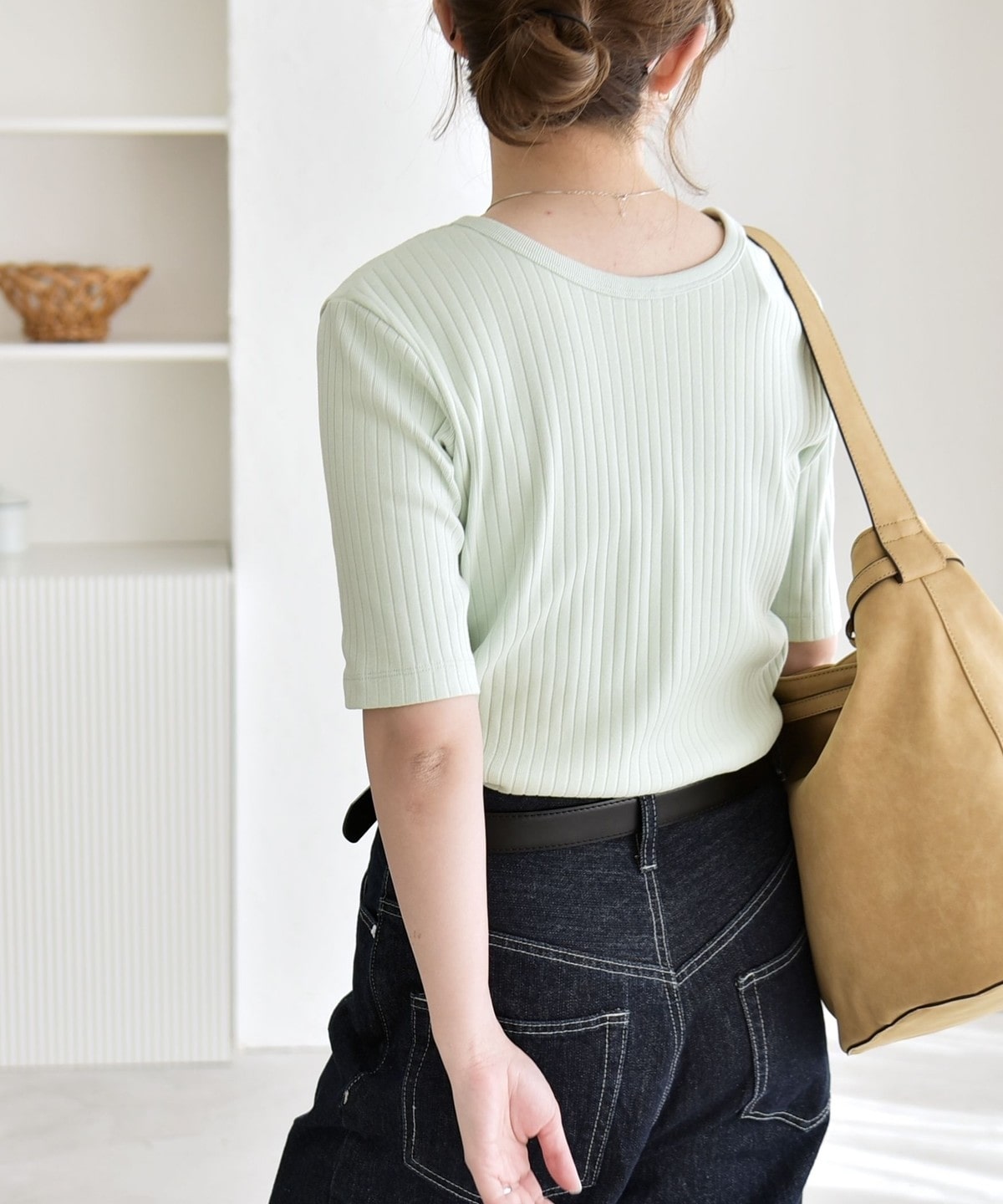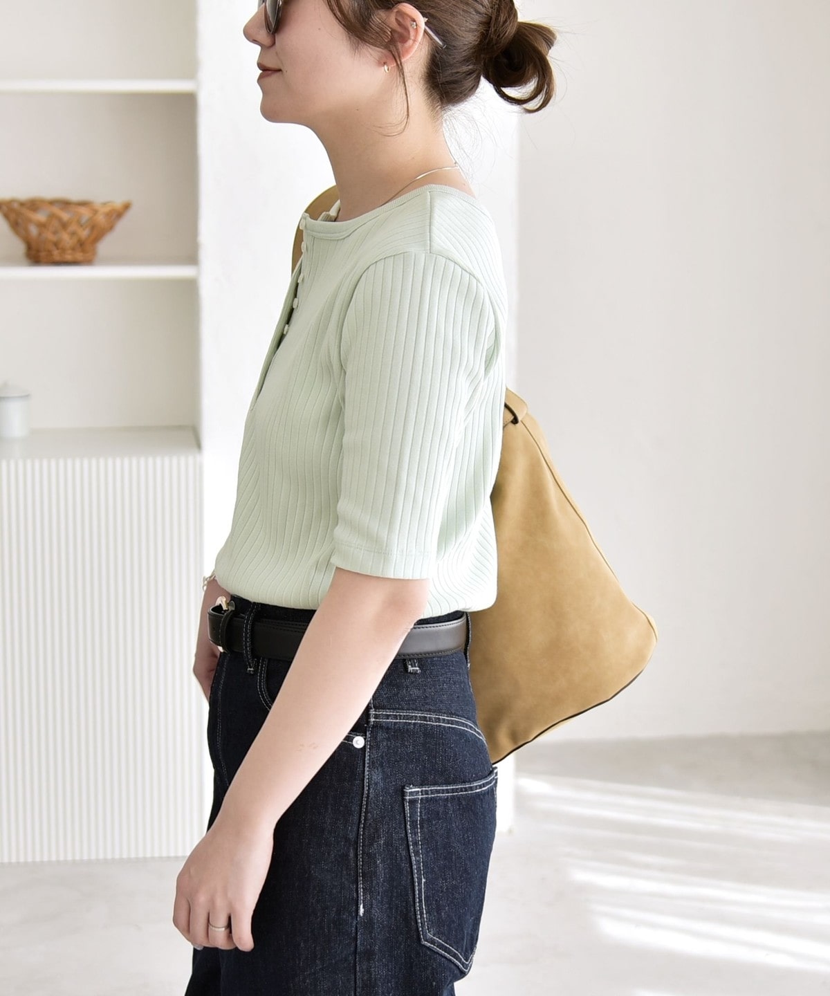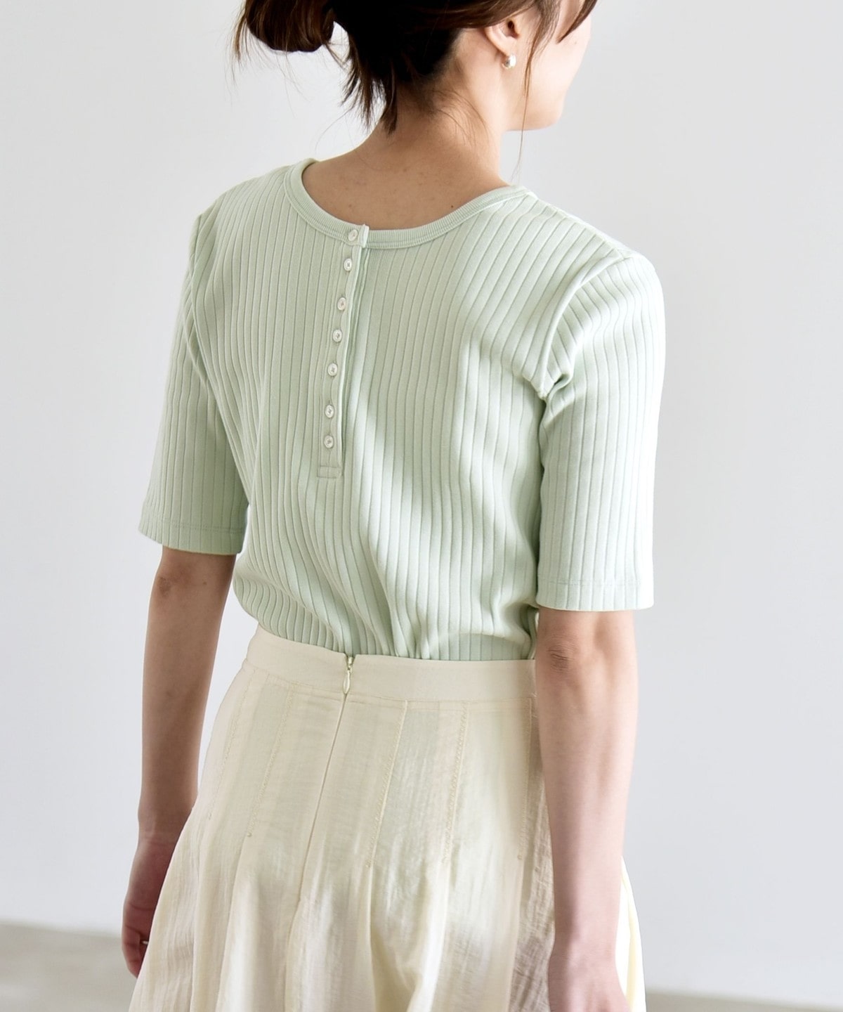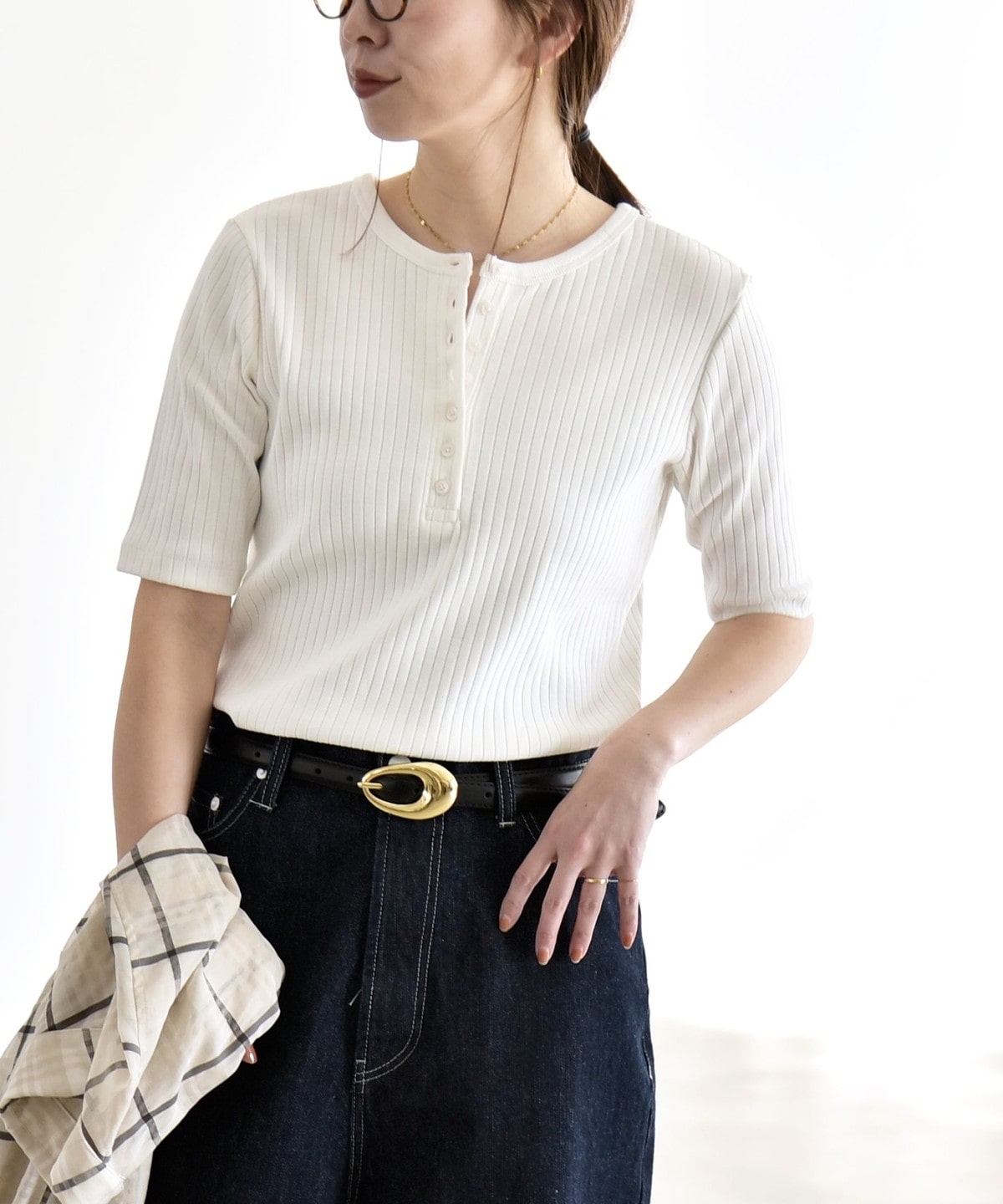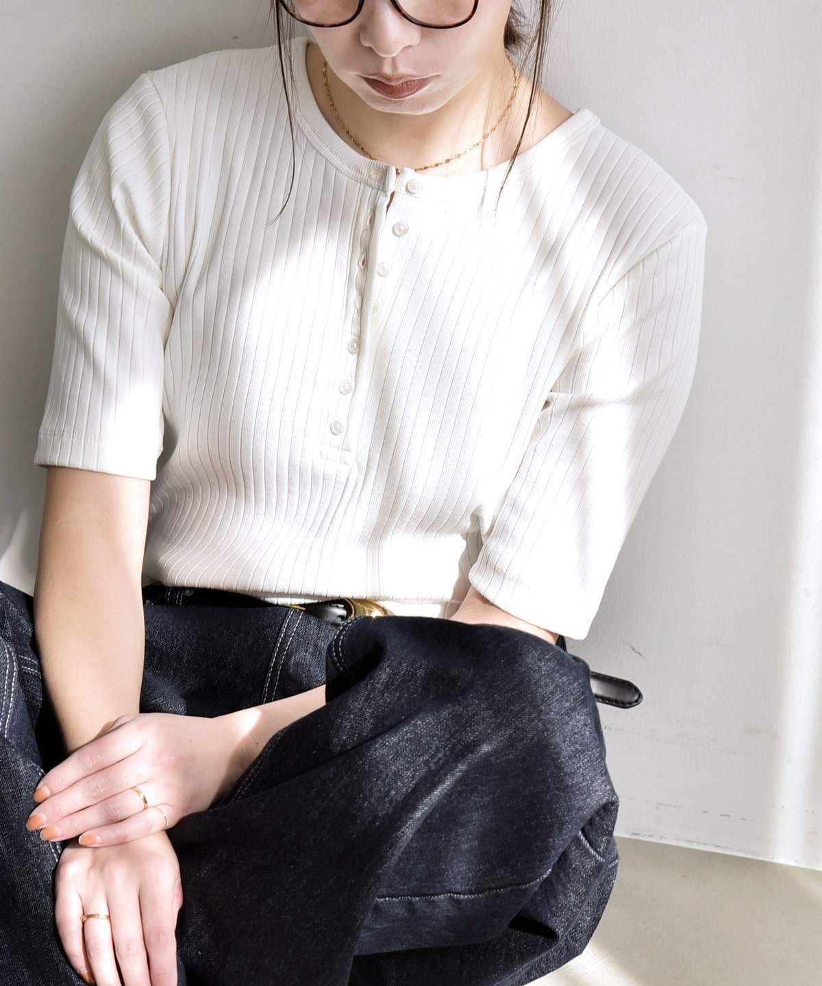 21. quaranciel:〈洗濯機可能〉テレコ リブ クルー ヘンリー 2way ハーフスリーブ TEE