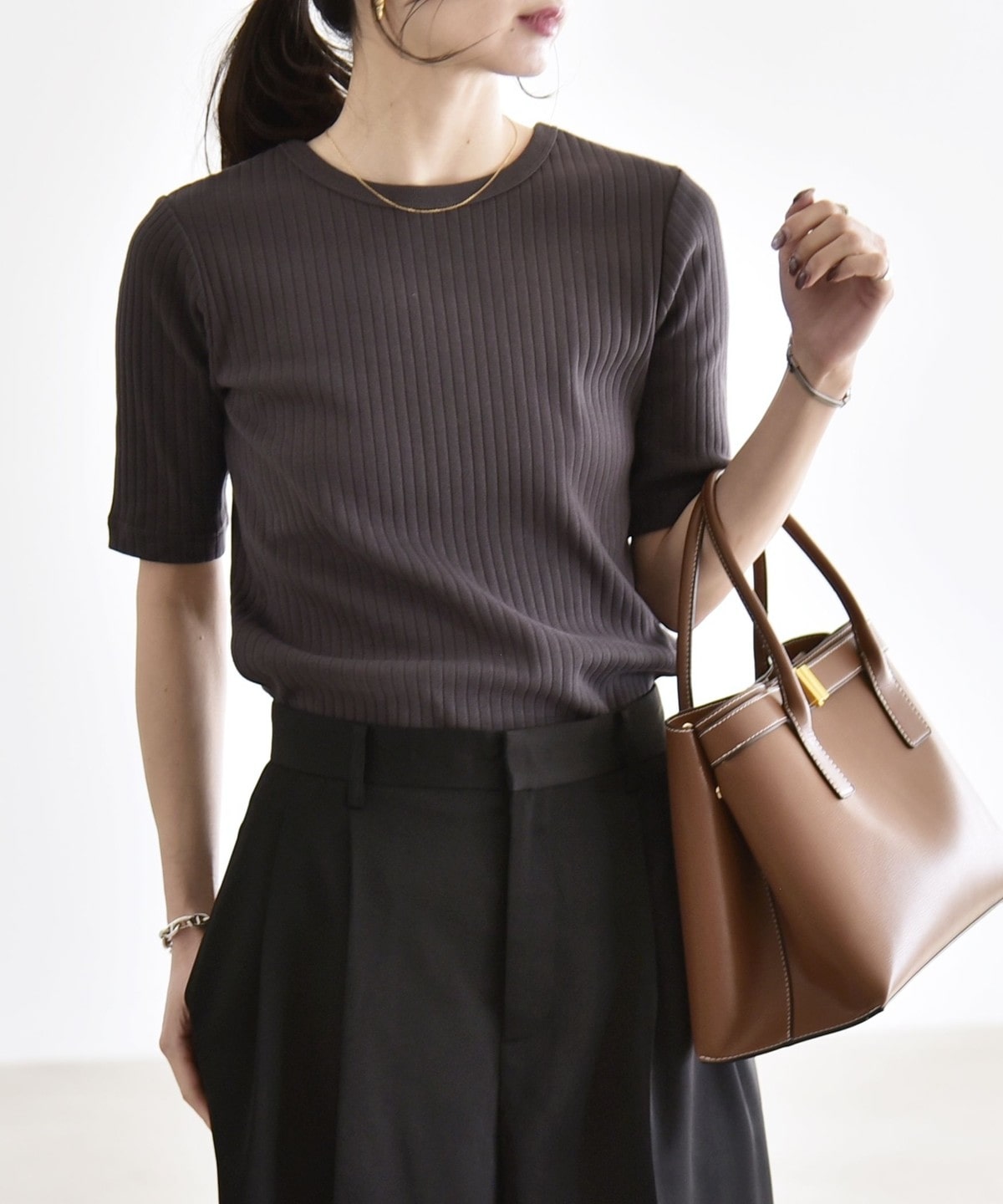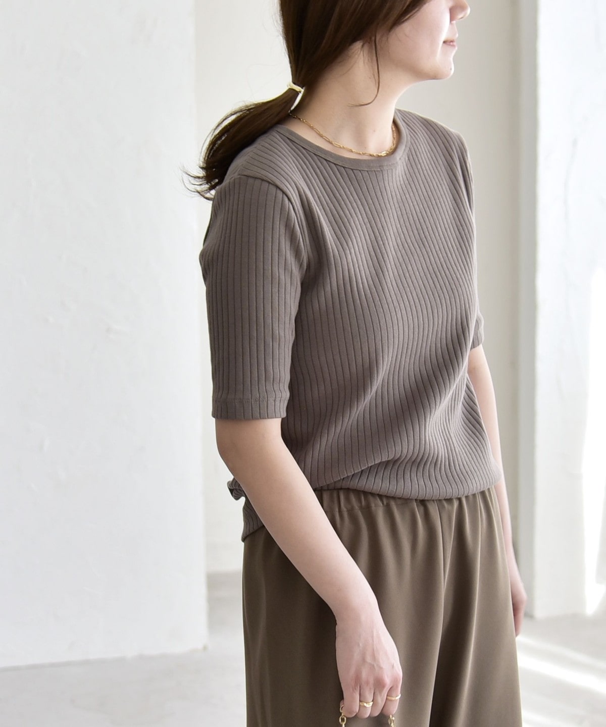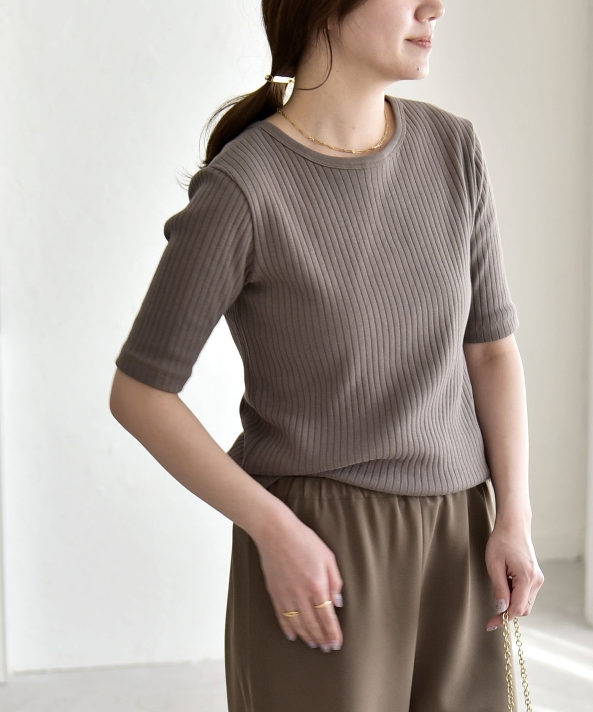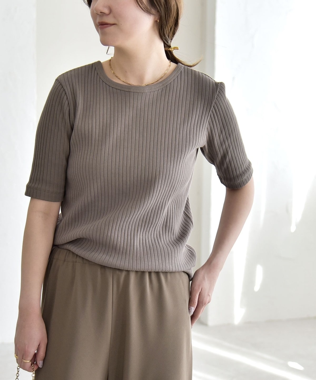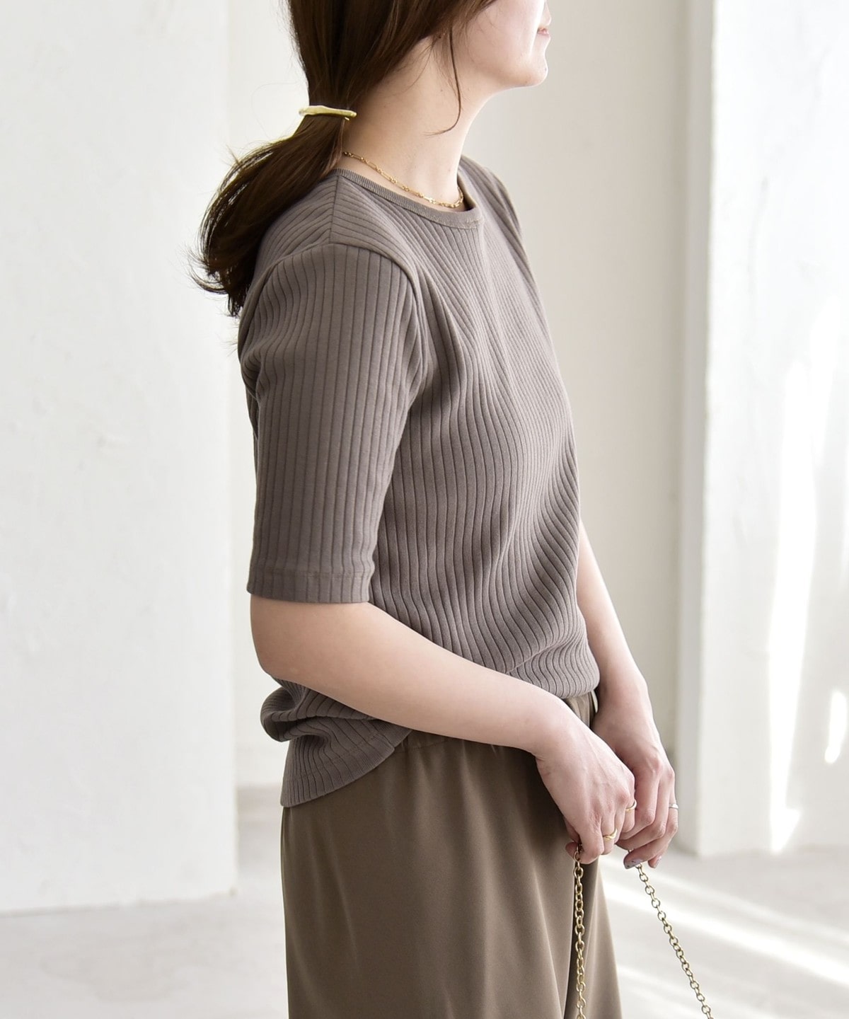 21. quaranciel:〈洗濯機可能〉テレコ リブ クルー ヘンリー 2way ハーフスリーブ TEE
