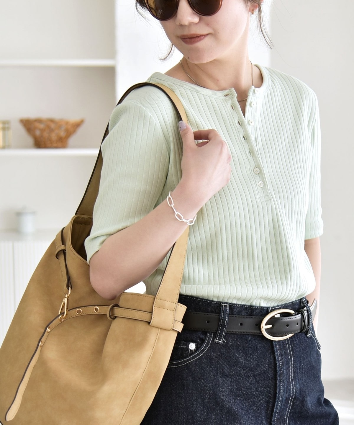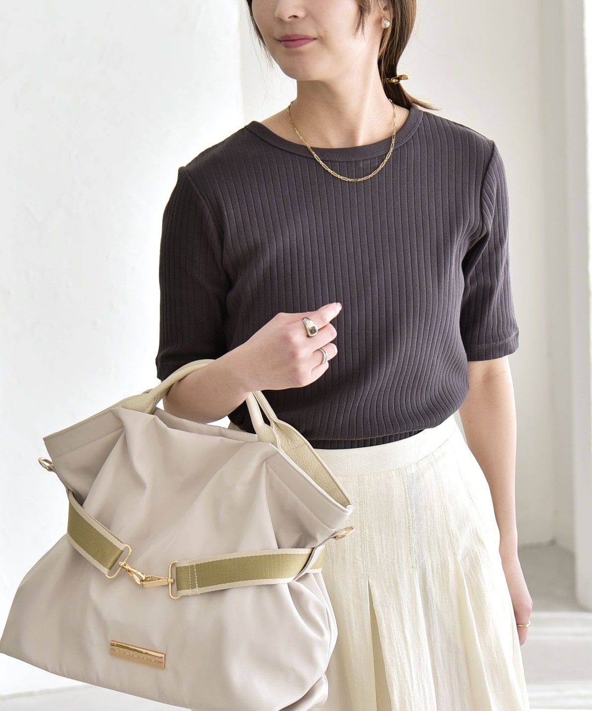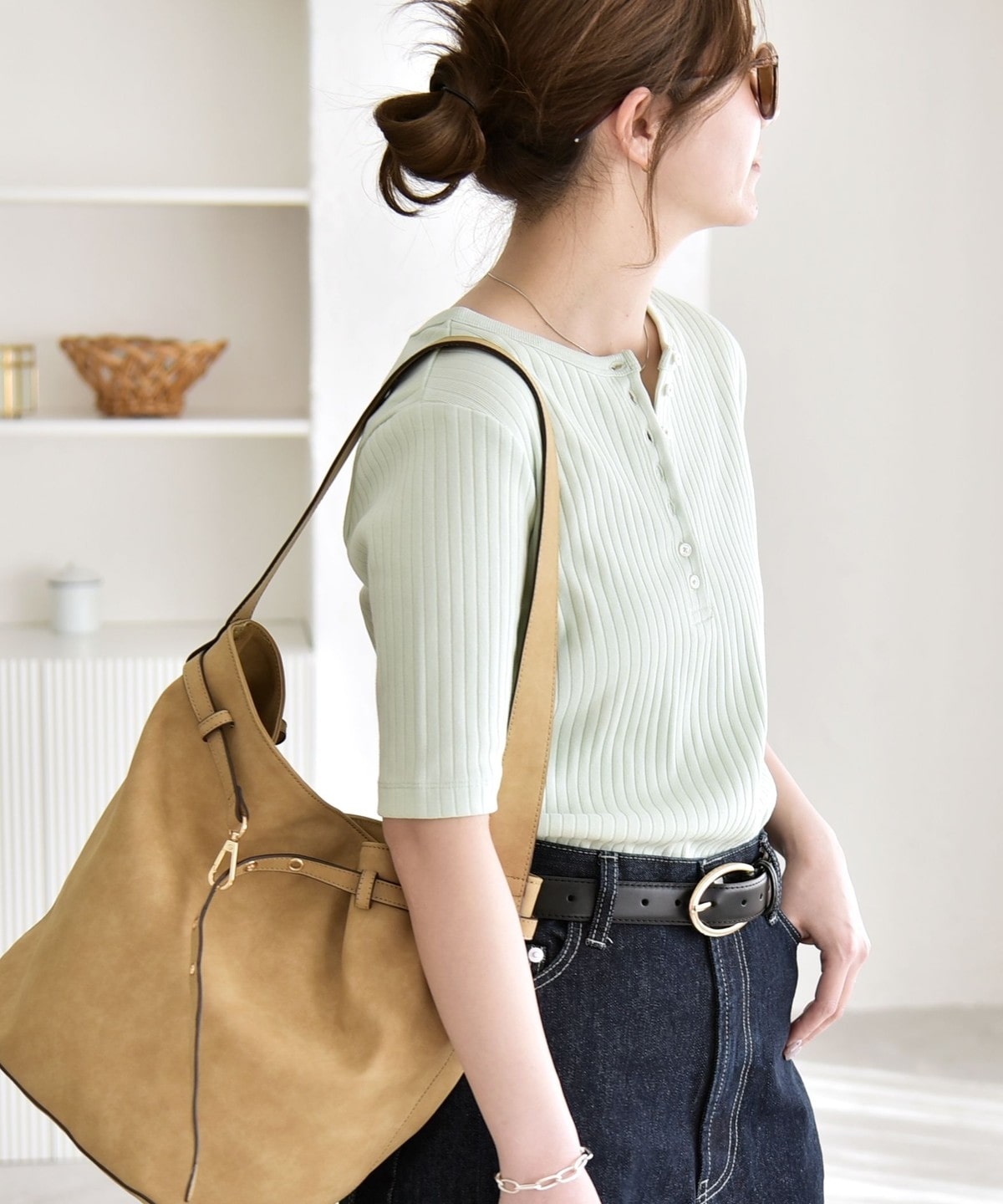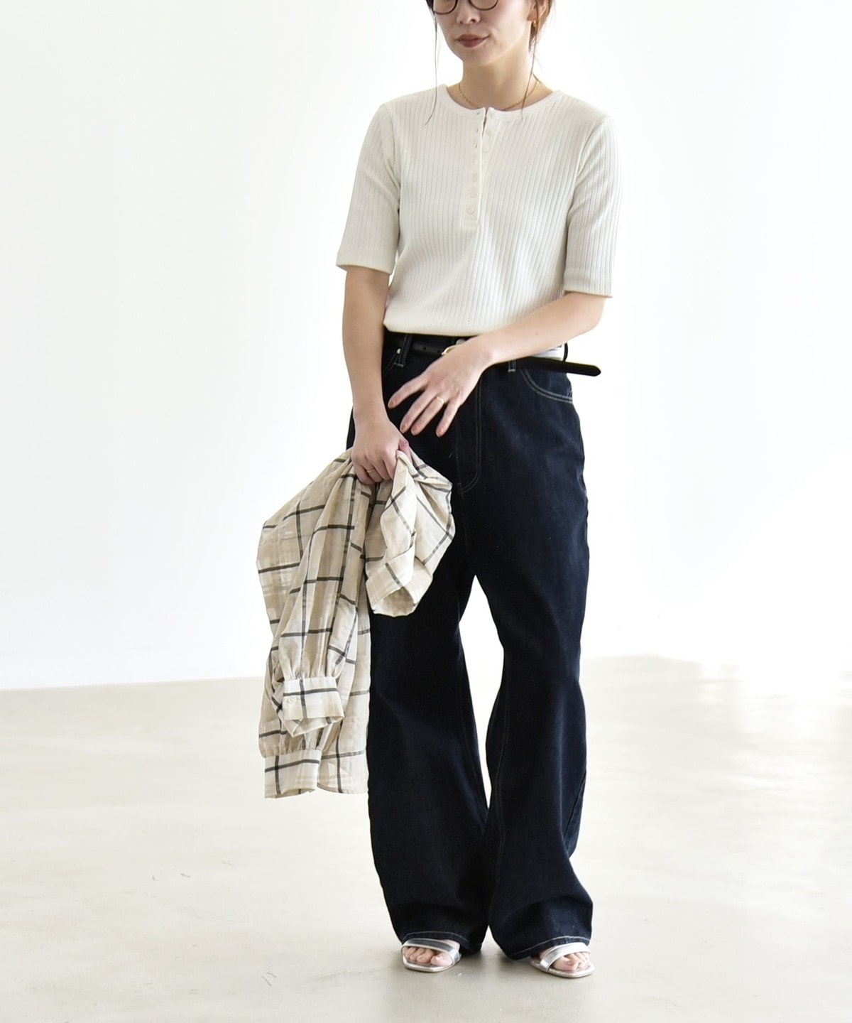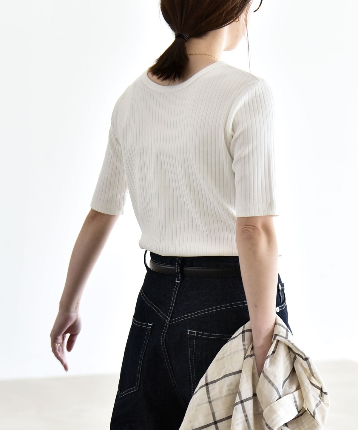 21. quaranciel:〈洗濯機可能〉テレコ リブ クルー ヘンリー 2way ハーフスリーブ TEE