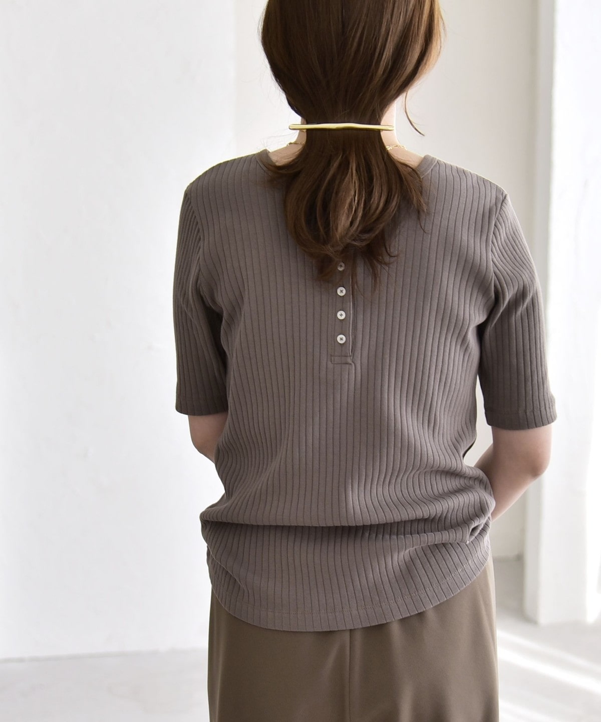 19. quaranciel:〈洗濯機可能〉テレコ リブ クルー ヘンリー 2way ハーフスリーブ TEE