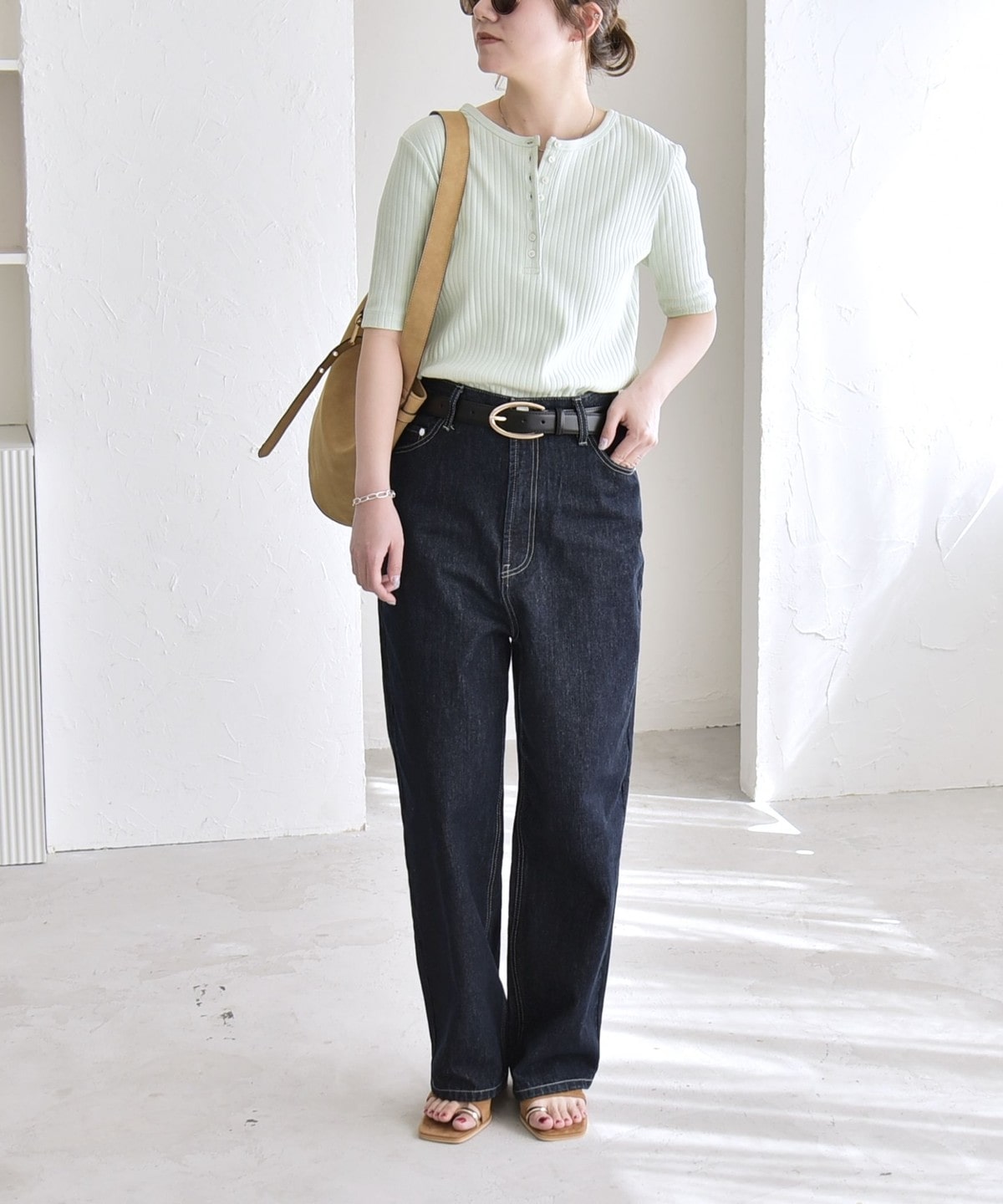 9. quaranciel:〈洗濯機可能〉テレコ リブ クルー ヘンリー 2way ハーフスリーブ TEE