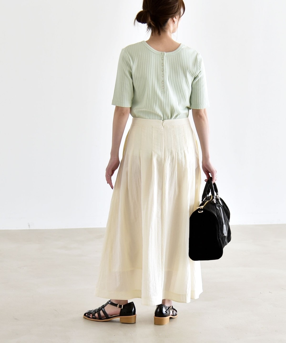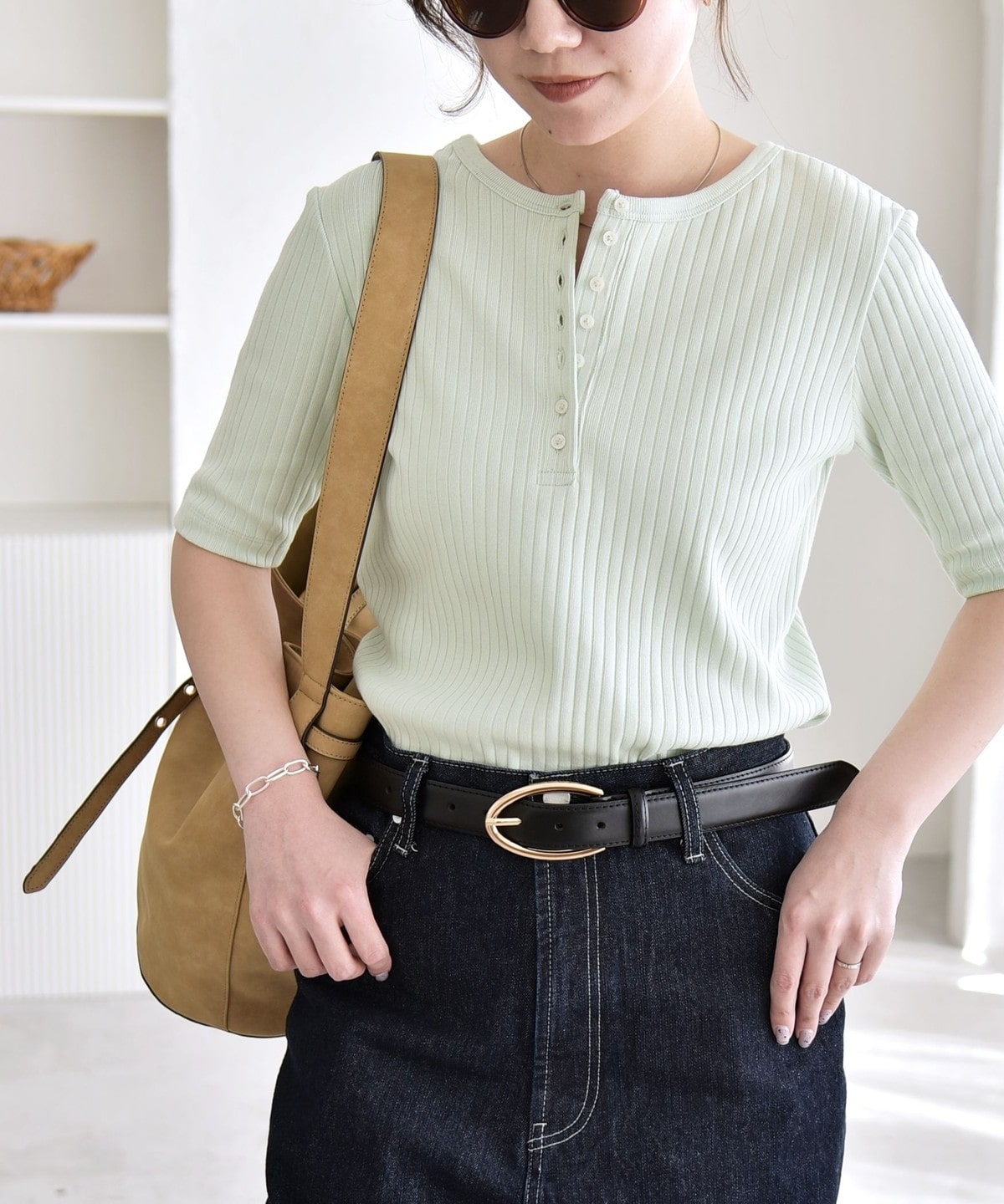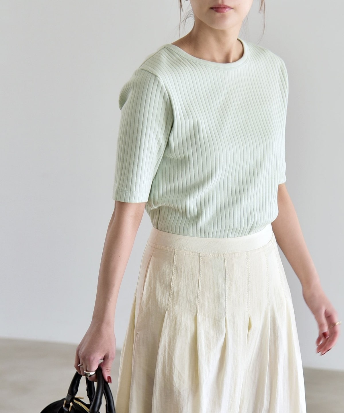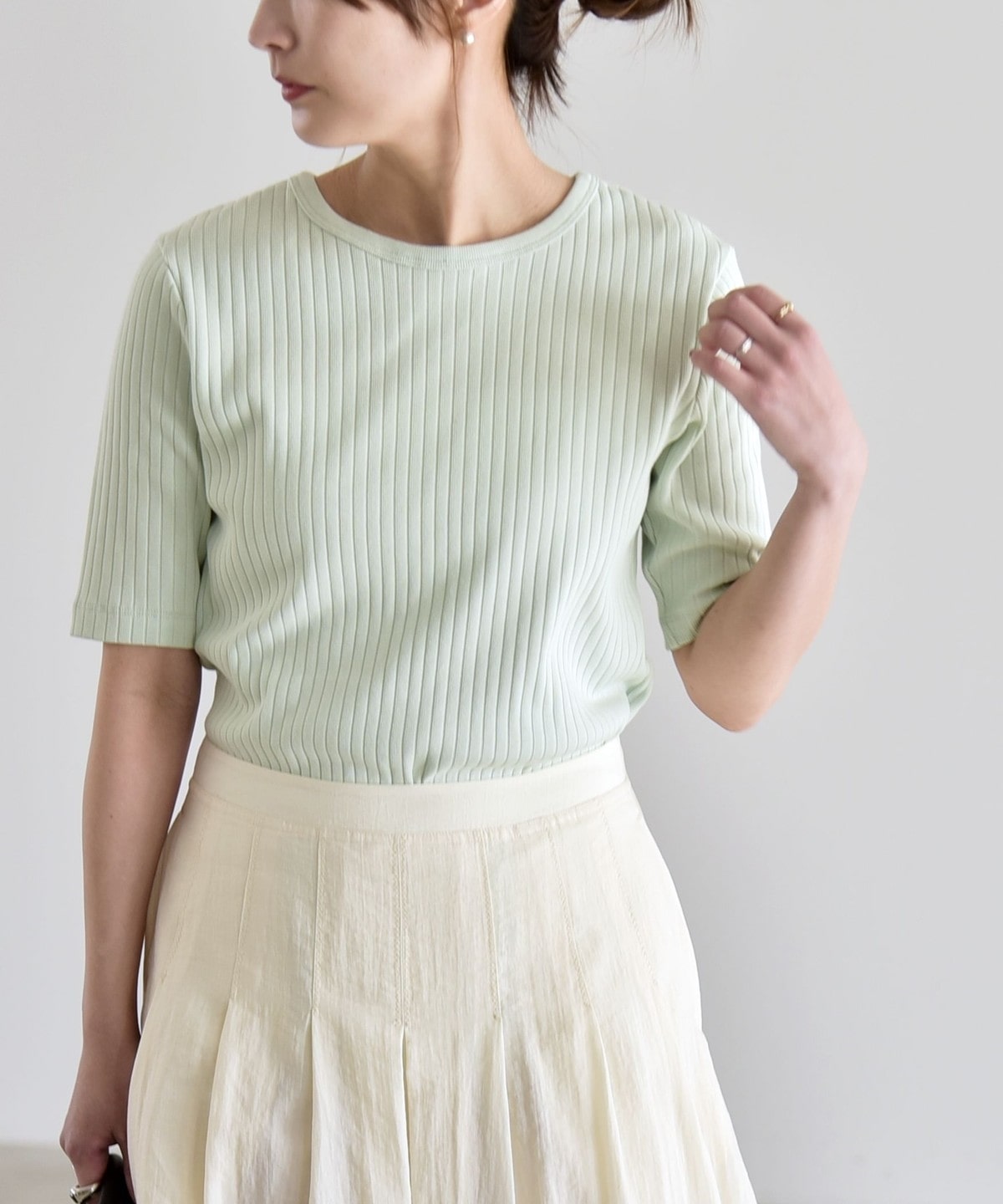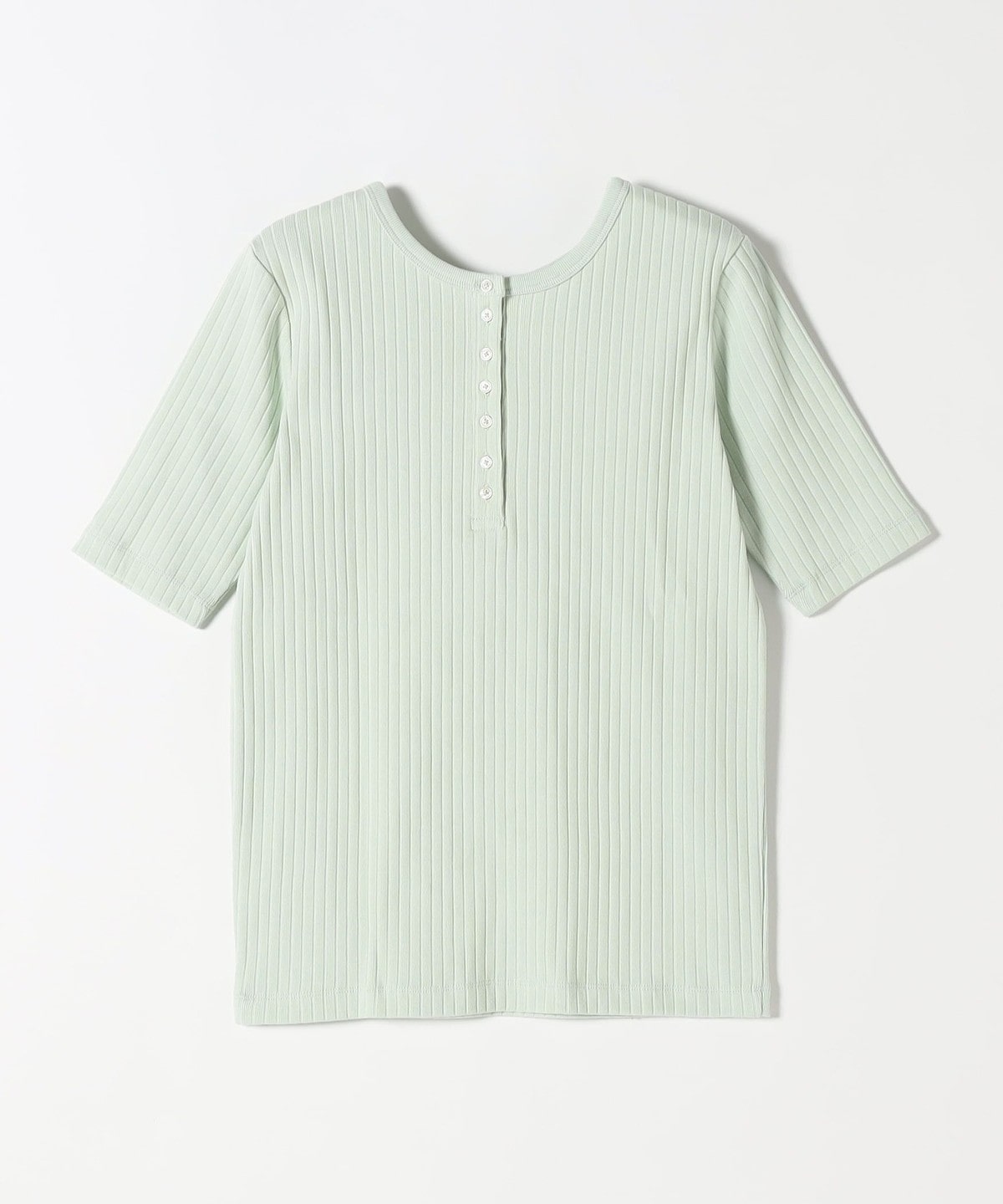 1. quaranciel:〈洗濯機可能〉テレコ リブ クルー ヘンリー 2way ハーフスリーブ TEE ライトグリーン