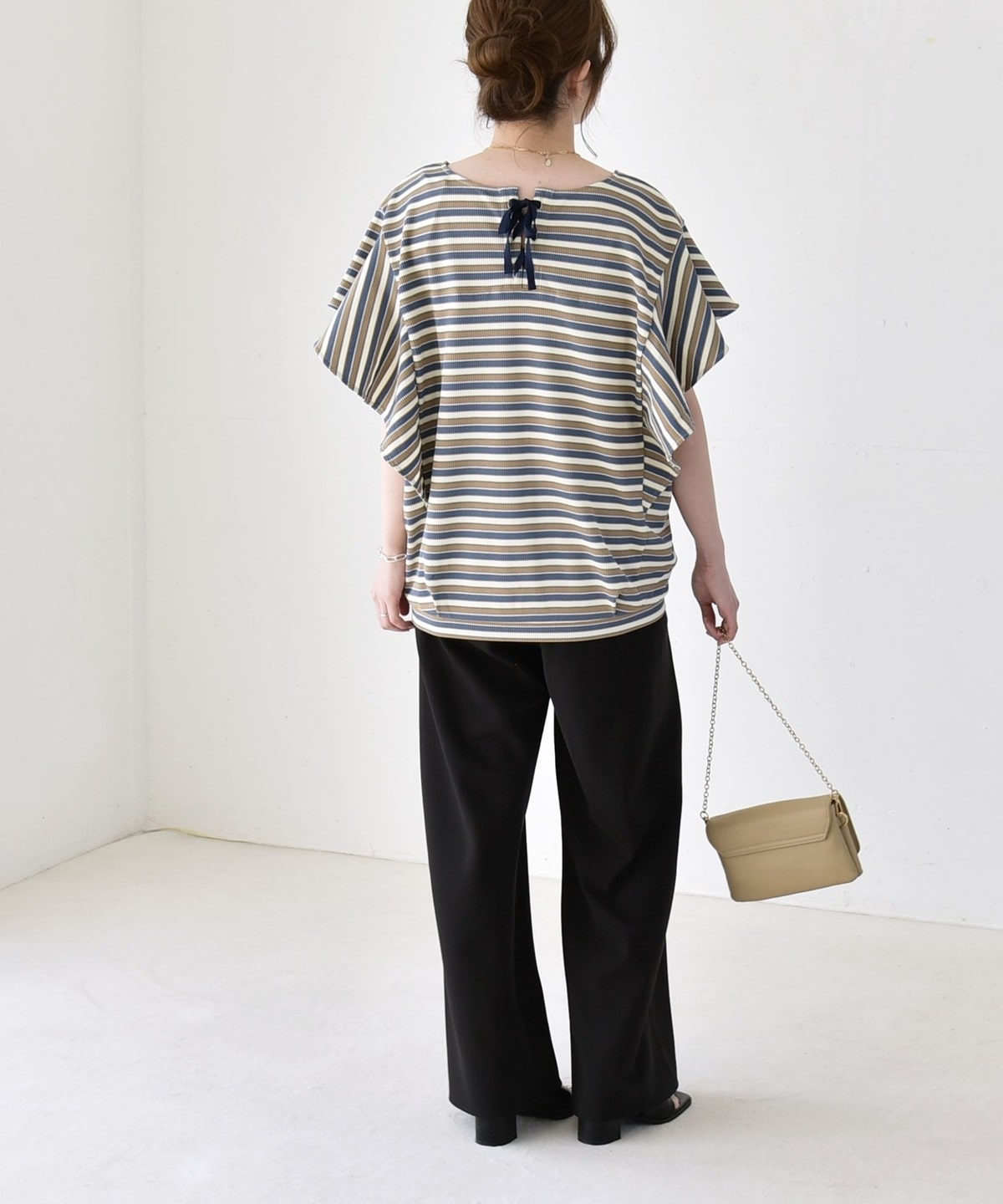 バックスタイルはリボンのレースアップを施し、後ろ姿も可愛い大人フェミニンな一枚です。