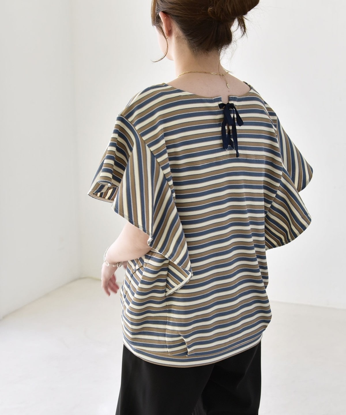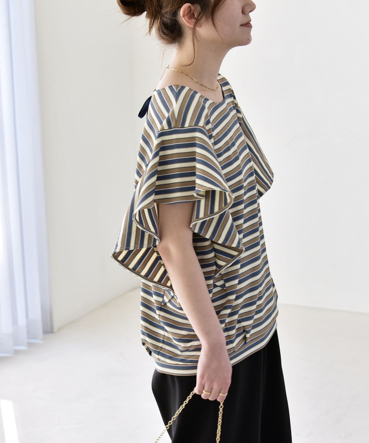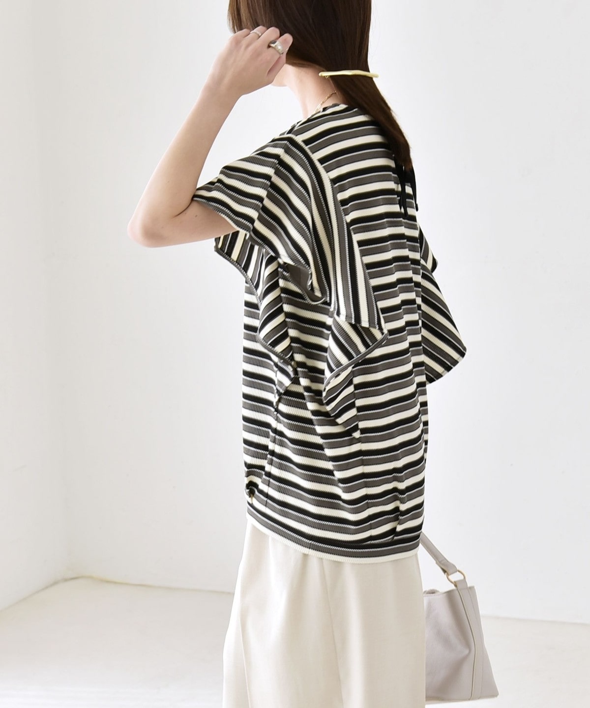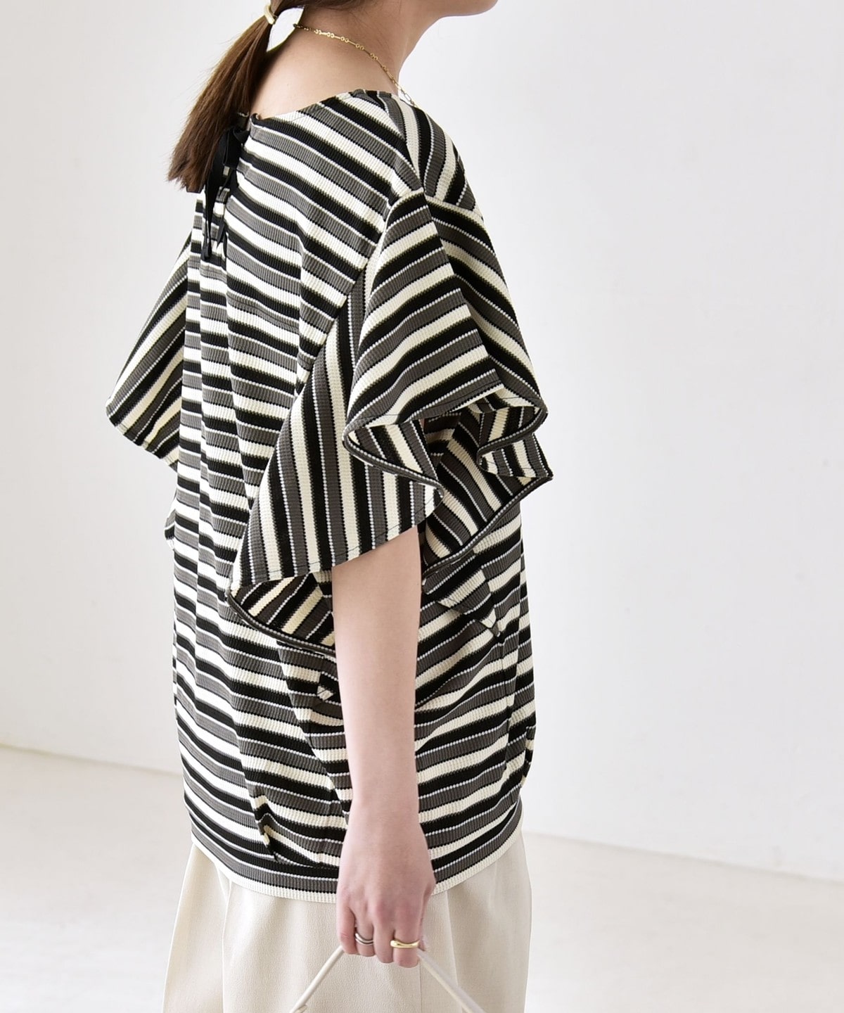 3. 《予約》quaranciel:〈洗濯機可能〉マルチボーダー ラッフル コクーン プルオーバー