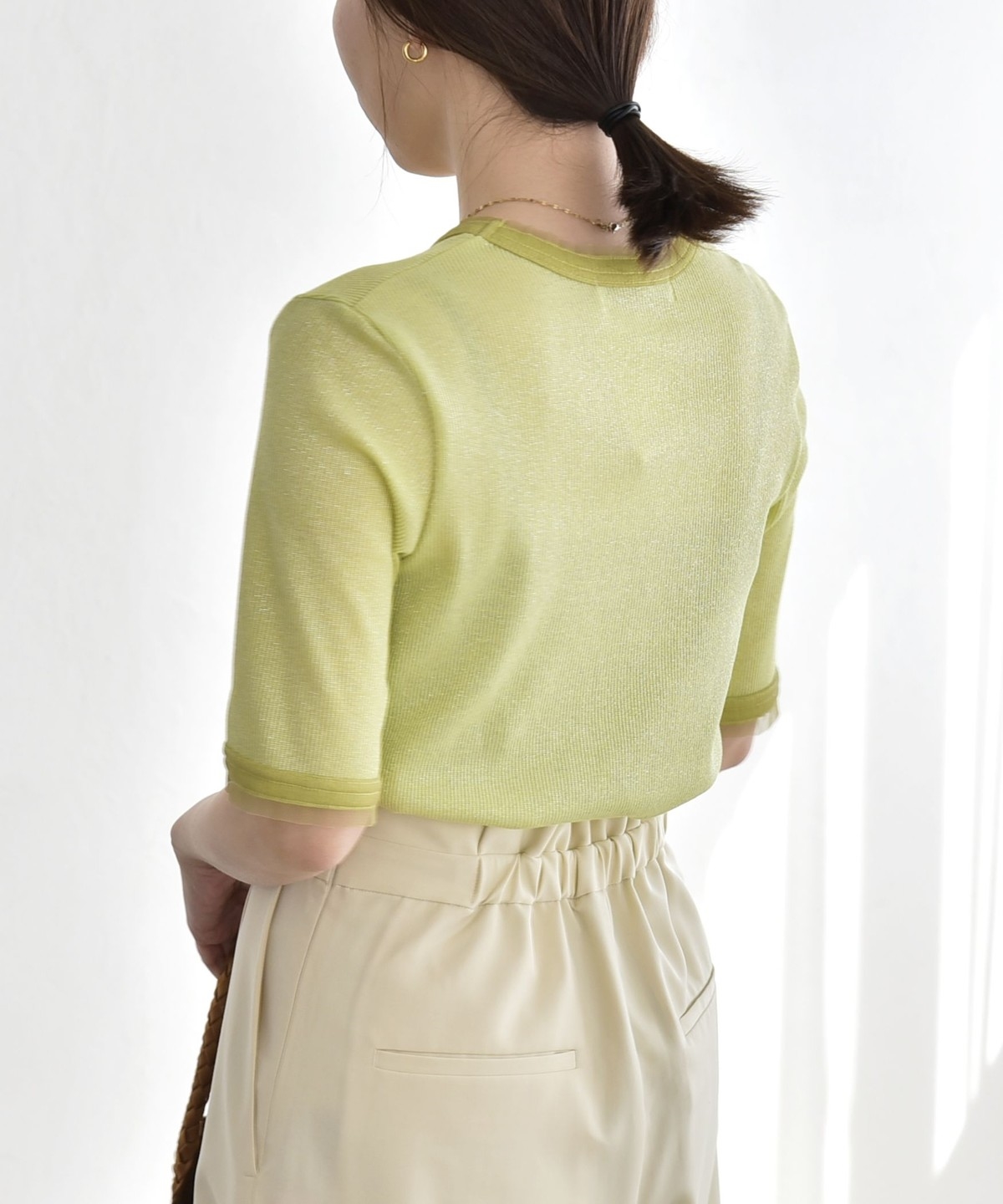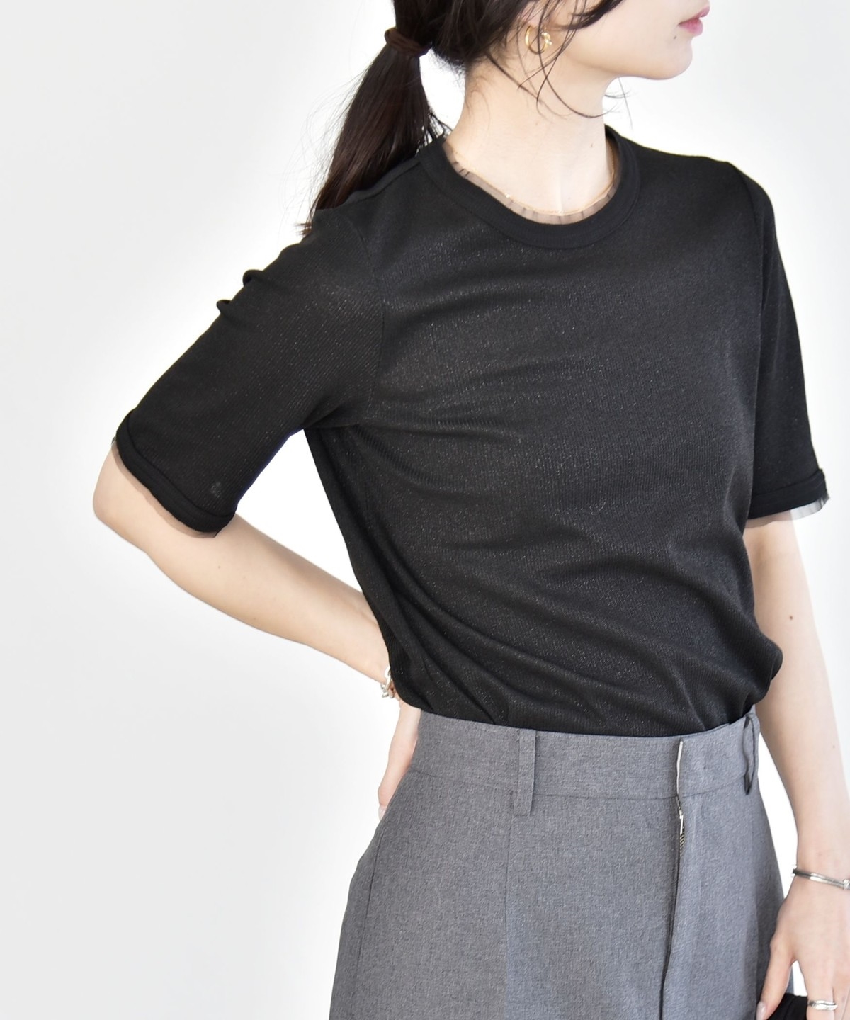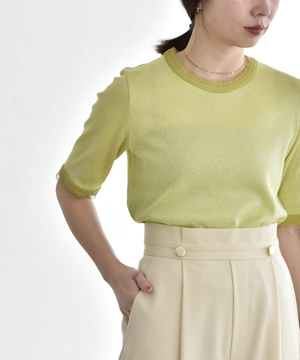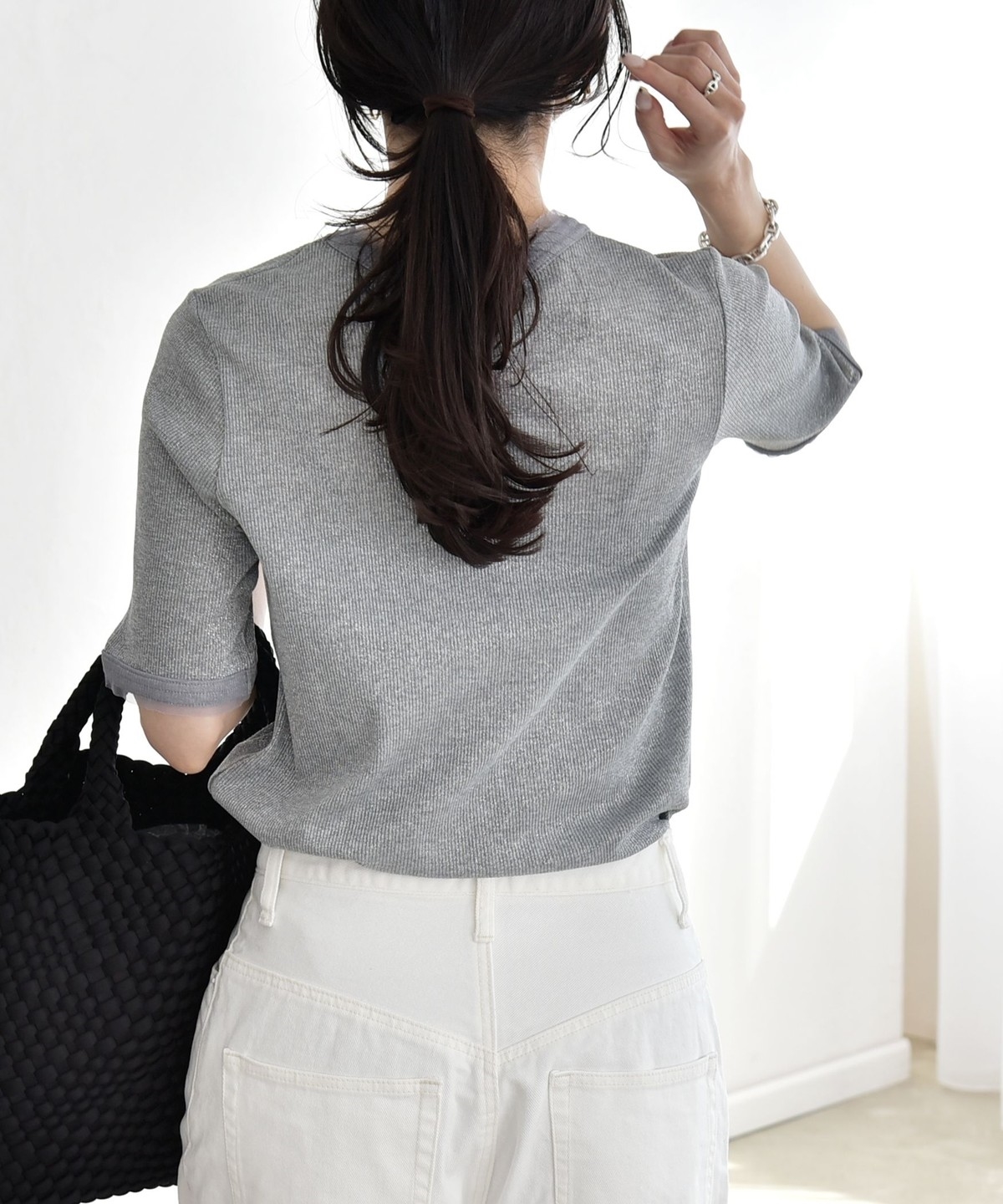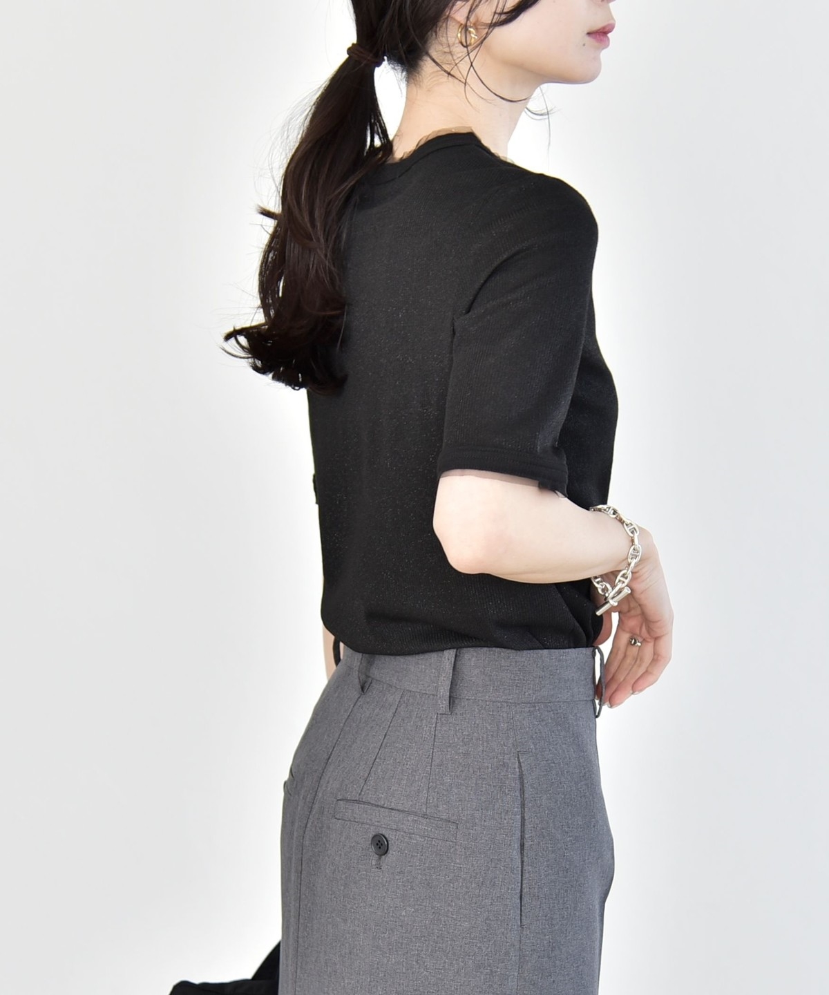 《予約》quaranciel:〈手洗い可能〉ラメ リブ ハーフスリーブ クルーネック TEE