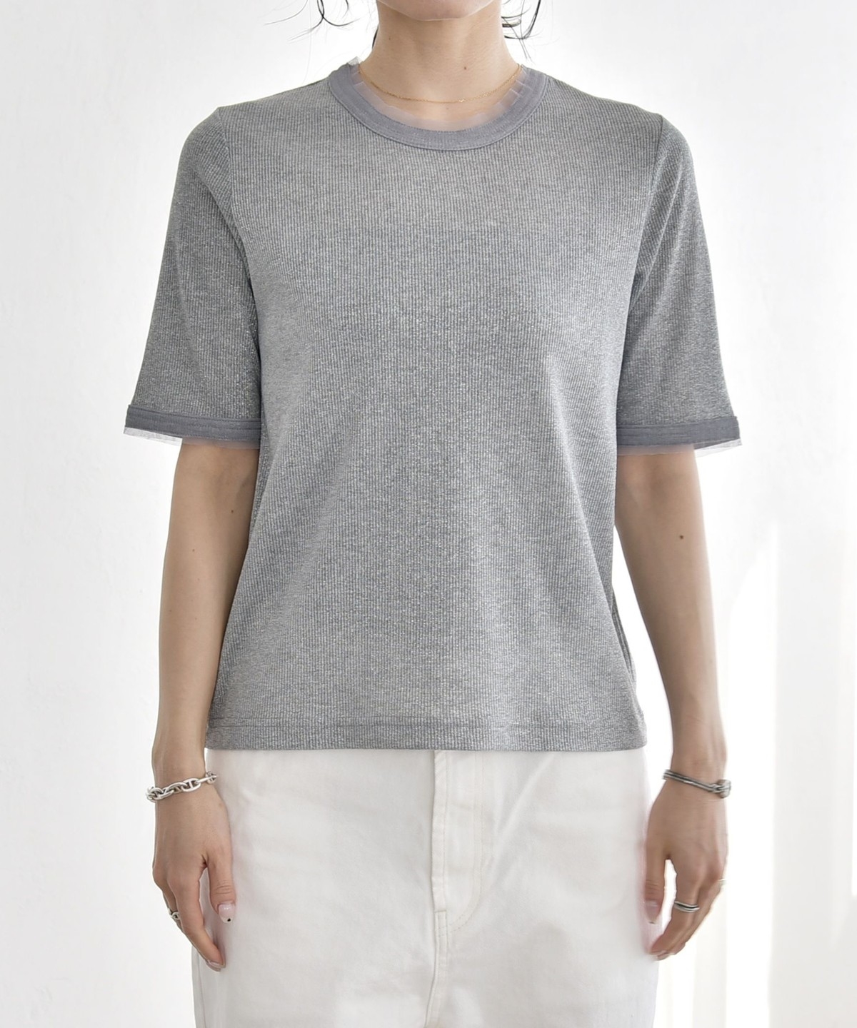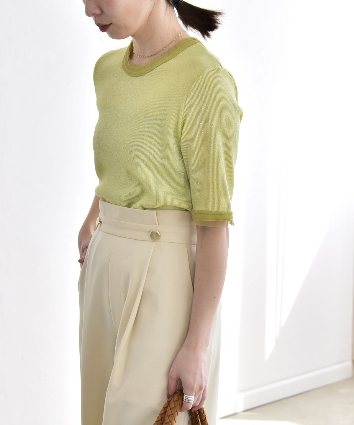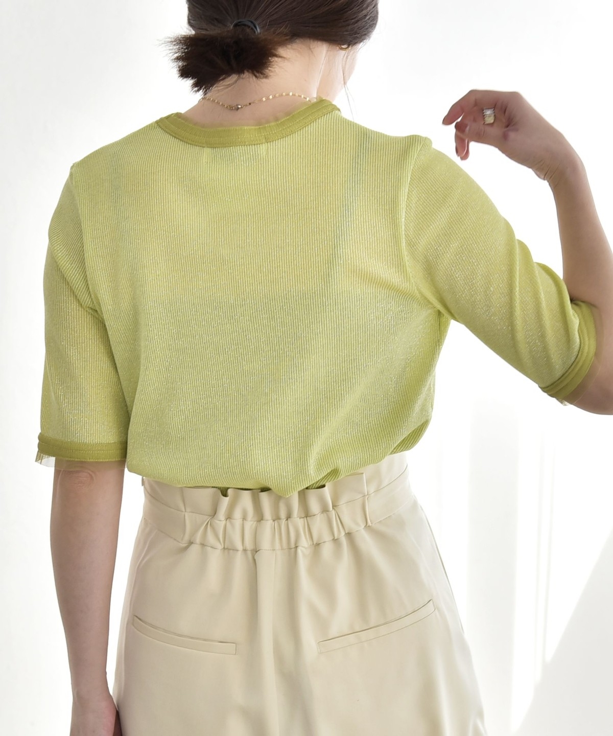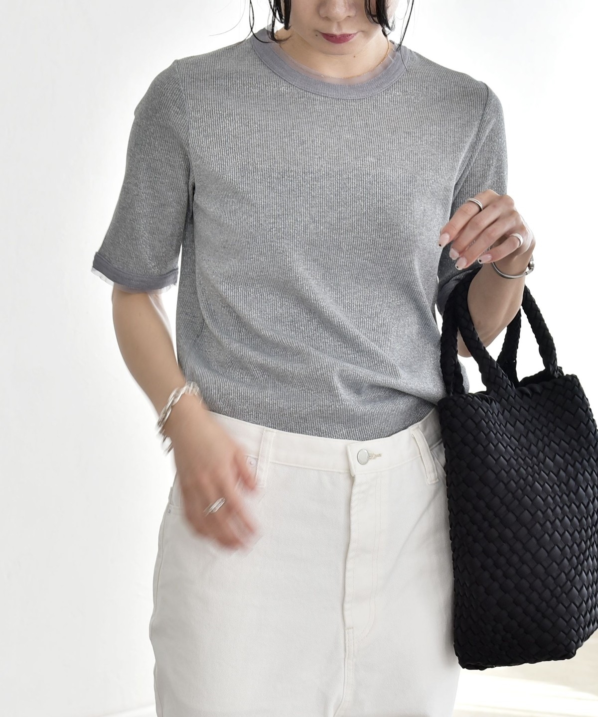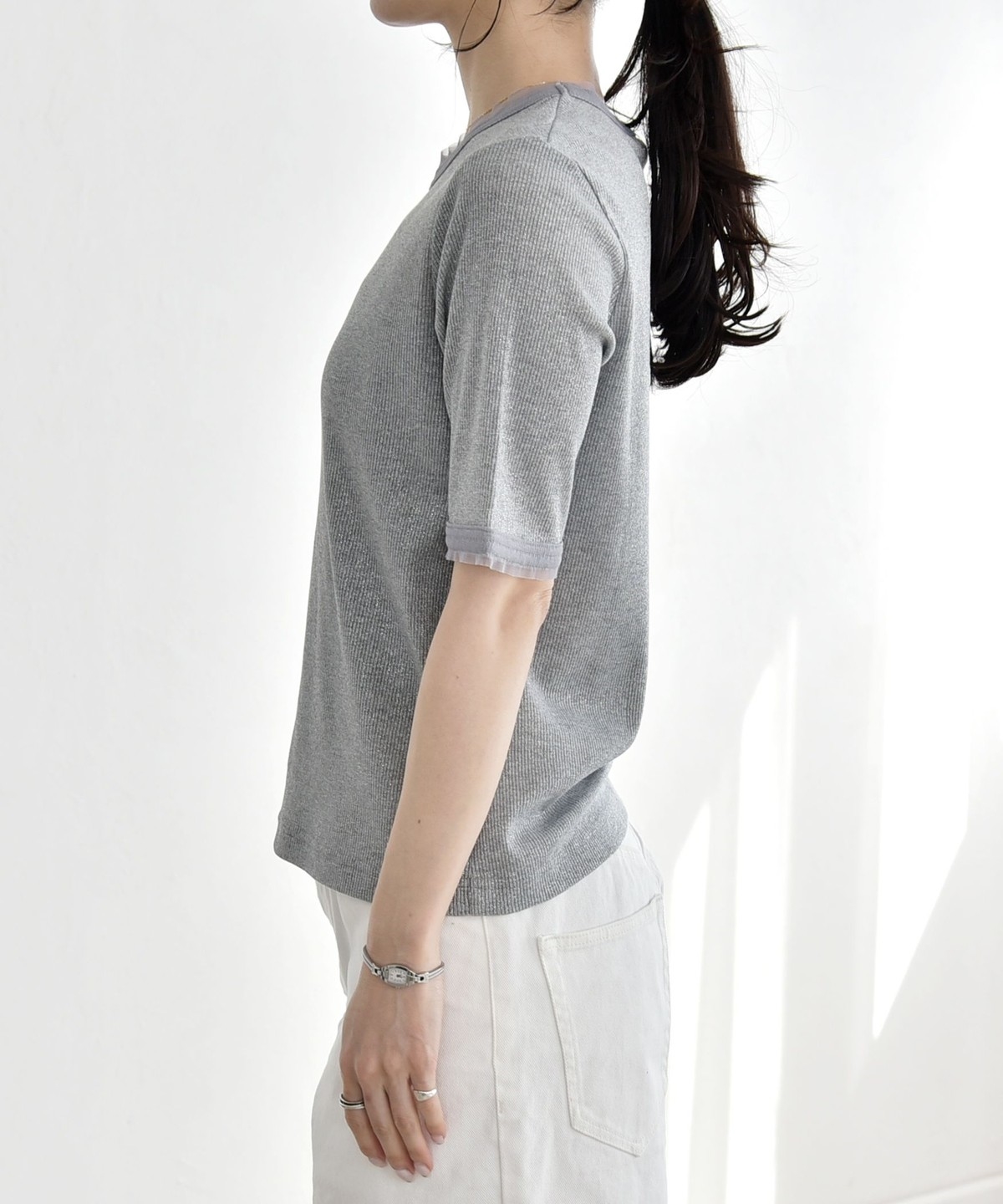 《予約》quaranciel:〈手洗い可能〉ラメ リブ ハーフスリーブ クルーネック TEE