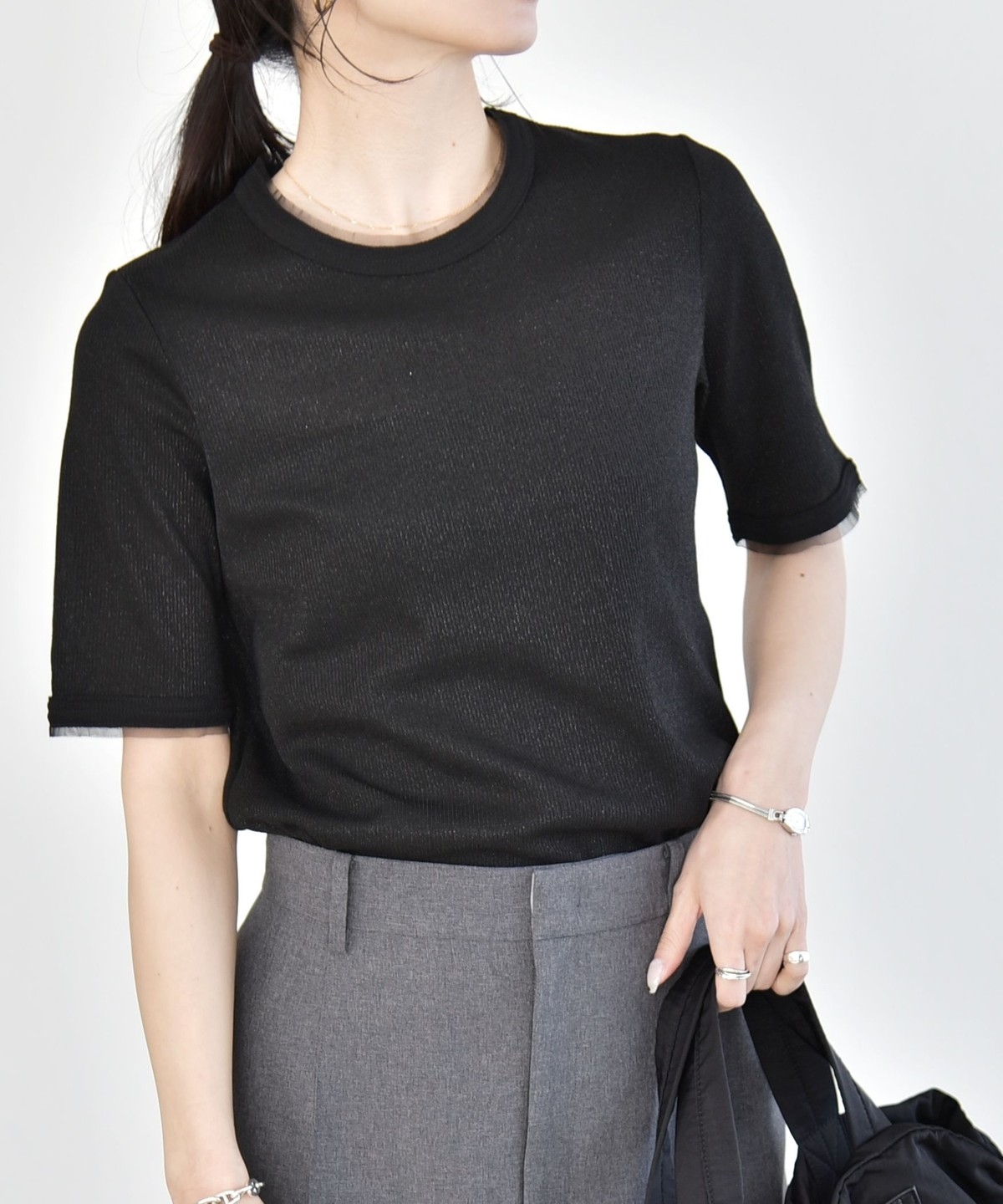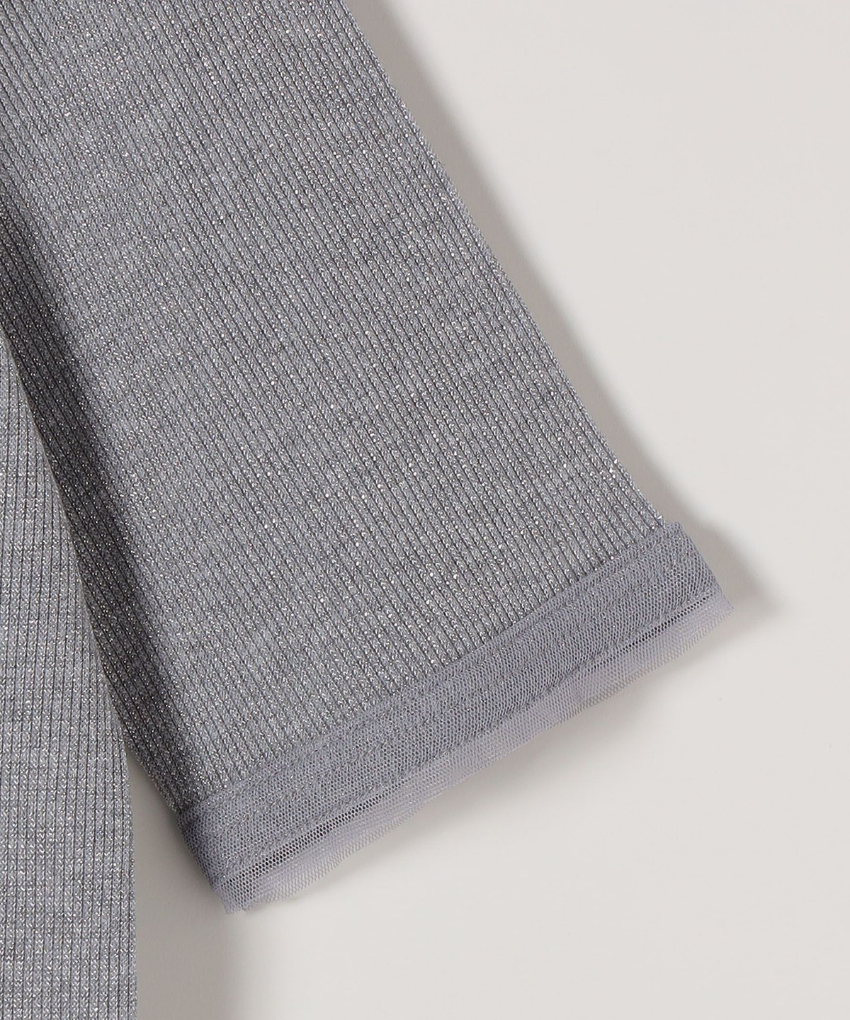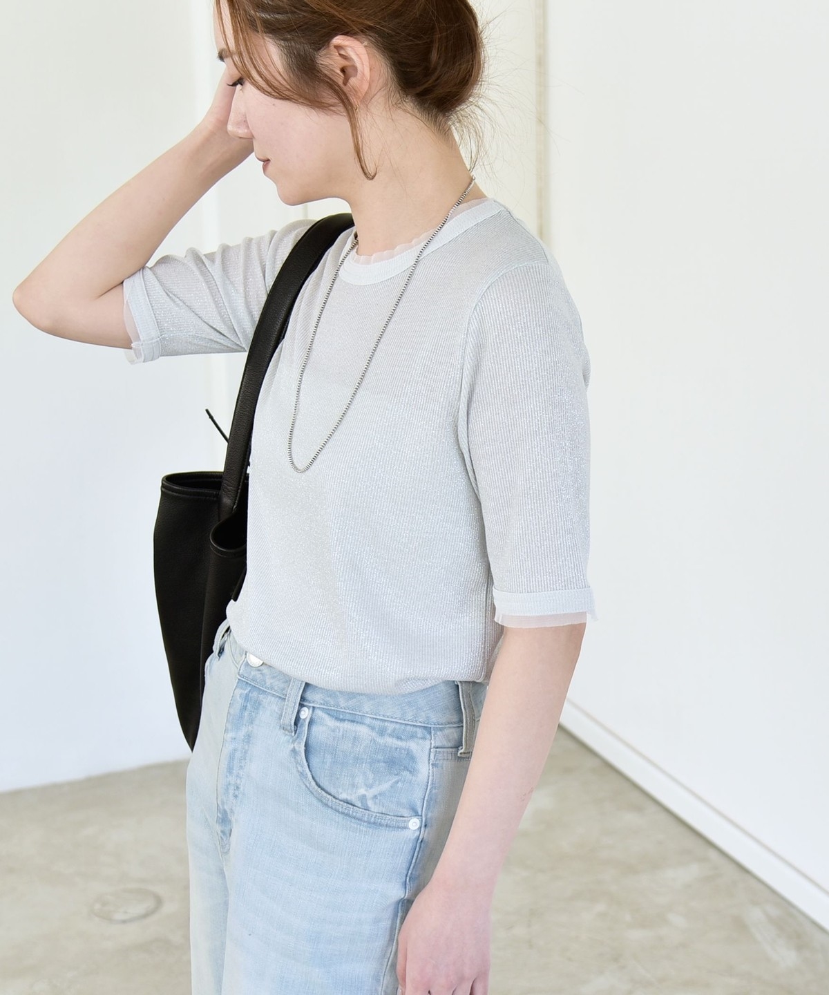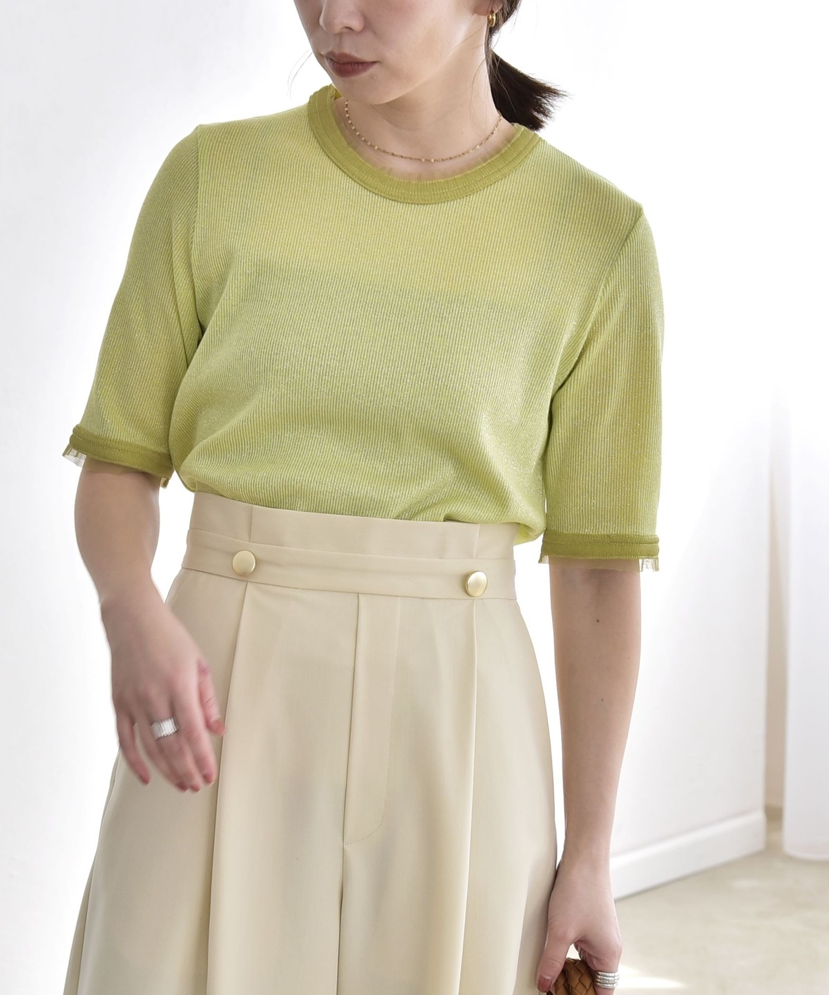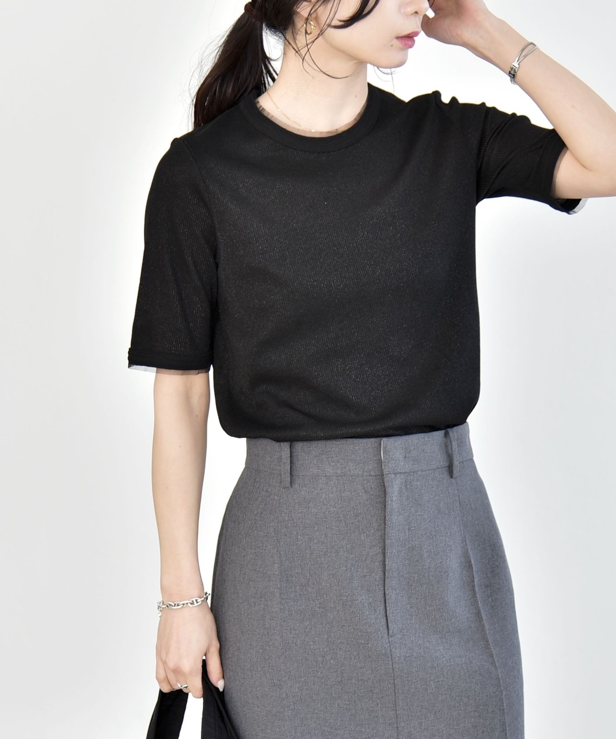 《予約》quaranciel:〈手洗い可能〉ラメ リブ ハーフスリーブ クルーネック TEE