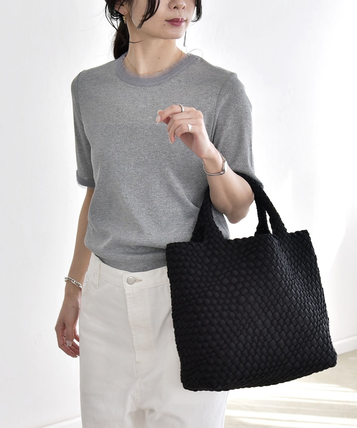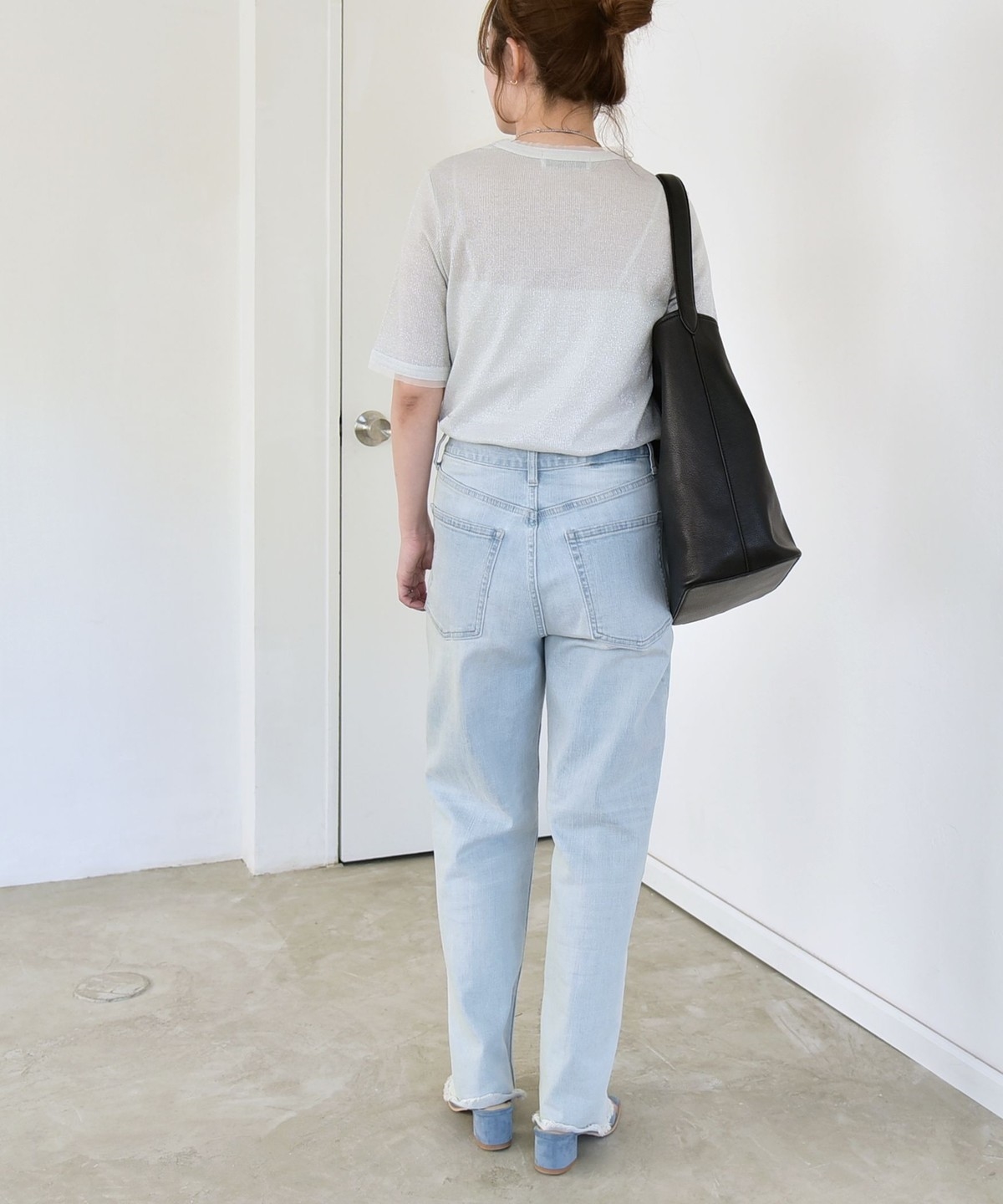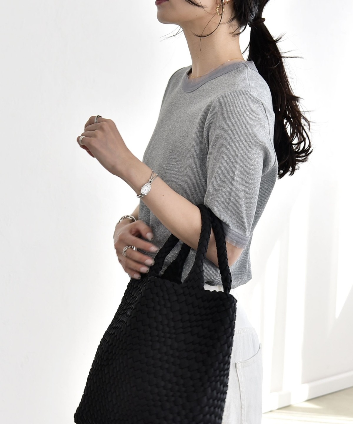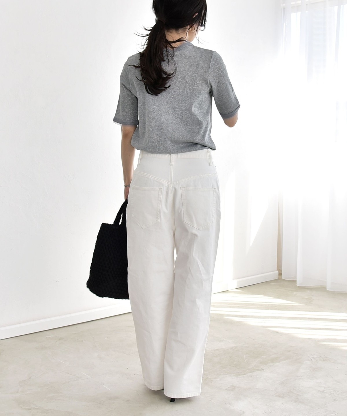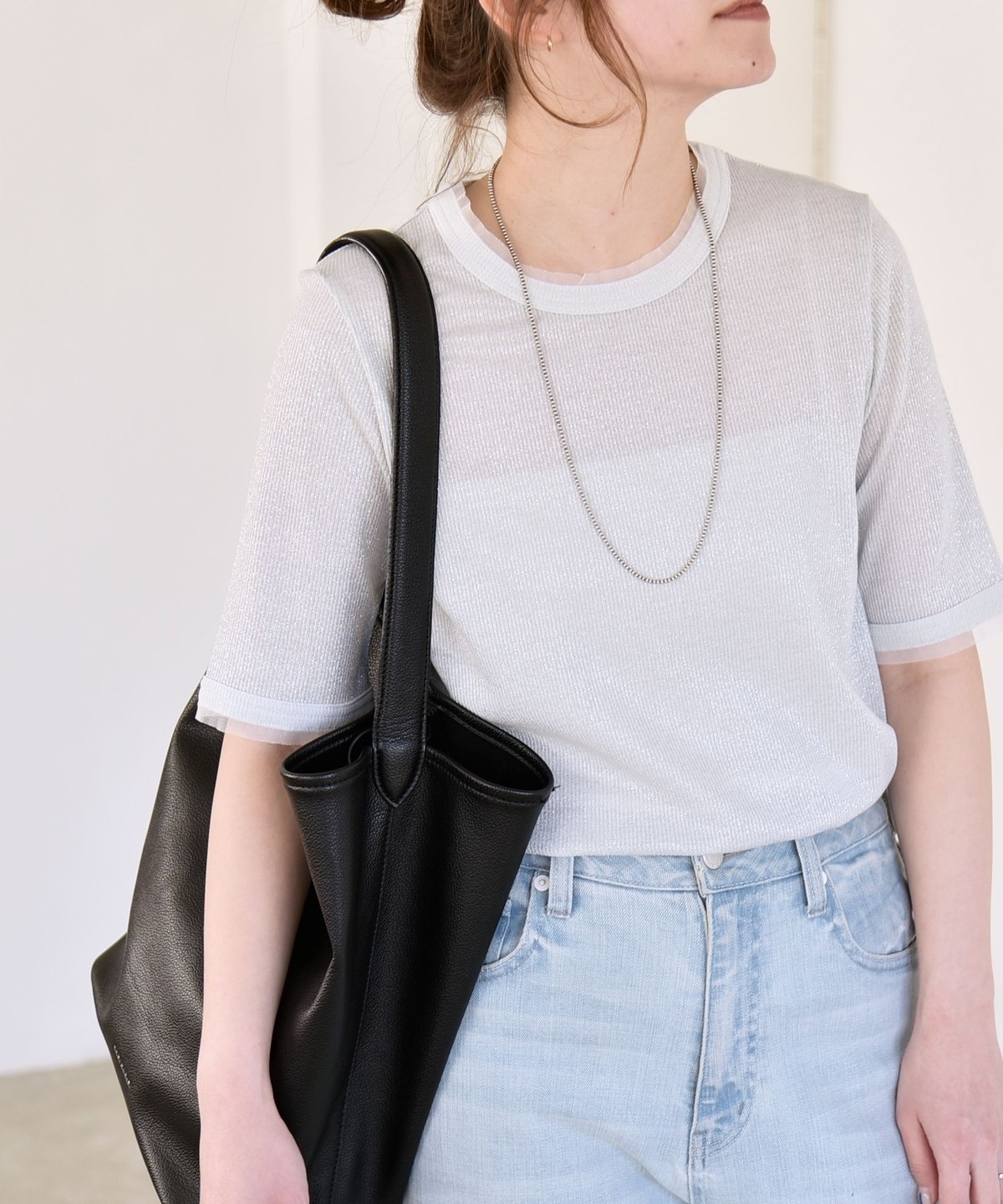 《予約》quaranciel:〈手洗い可能〉ラメ リブ ハーフスリーブ クルーネック TEE