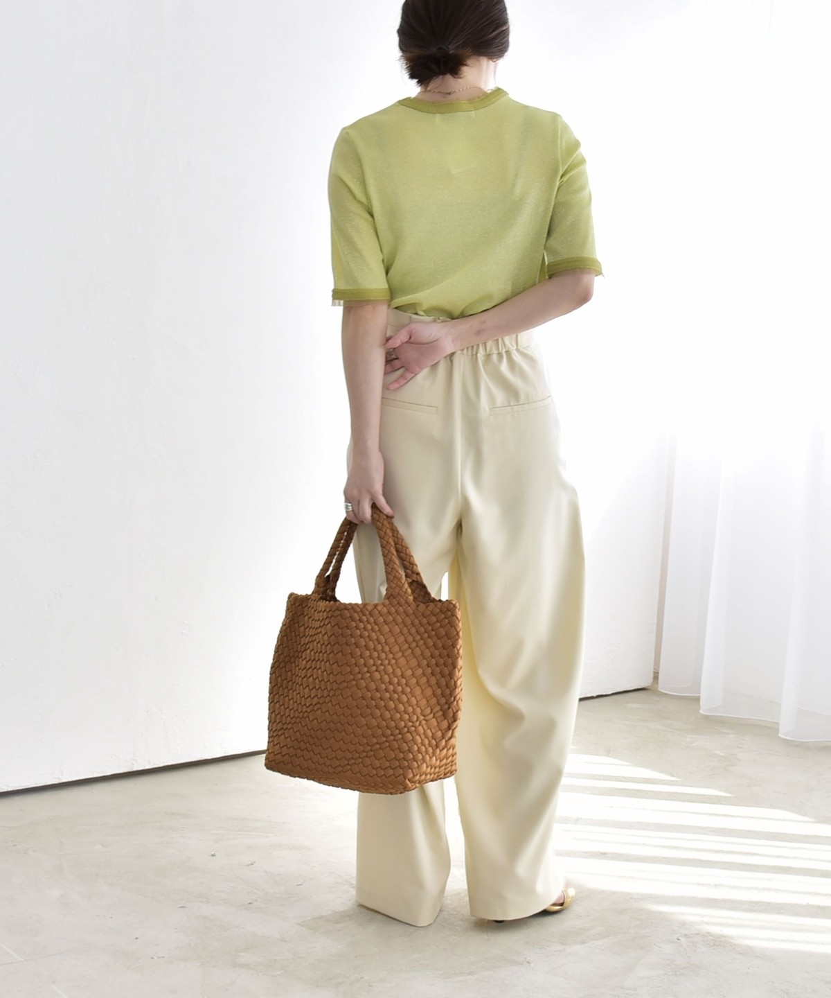 コンパクトめなシルエットなので、ワイドパンツなどボリュームのあるボトムとの相性◎