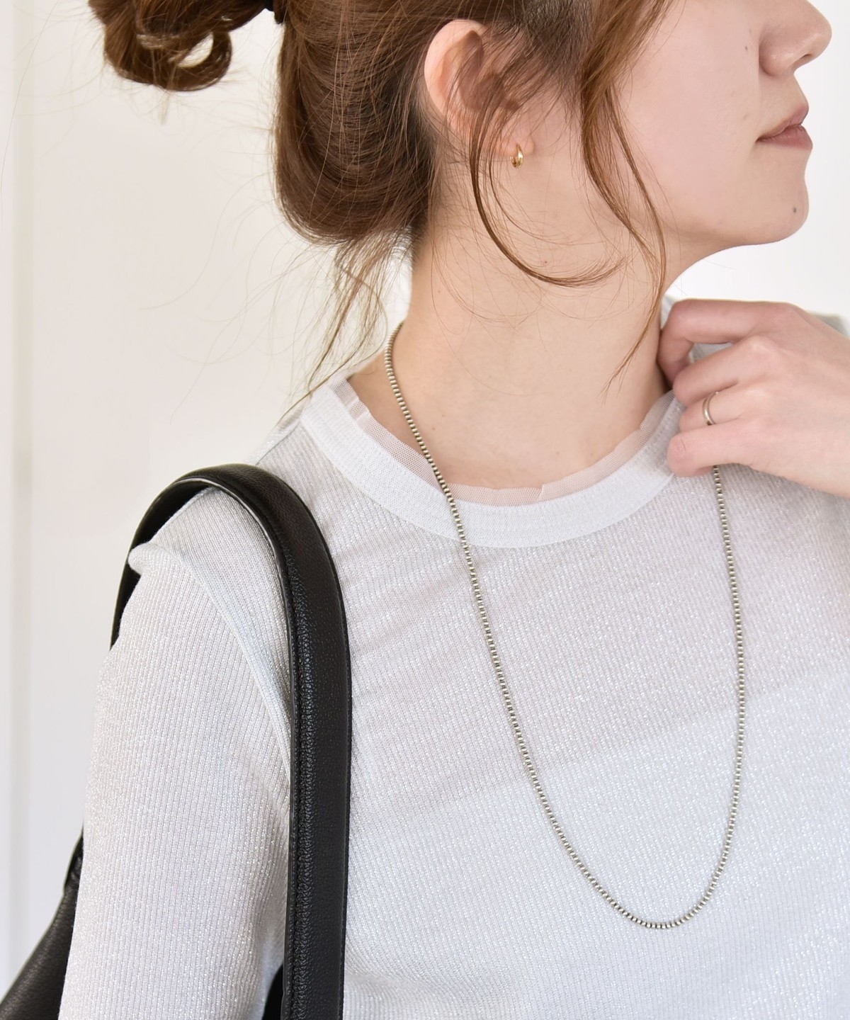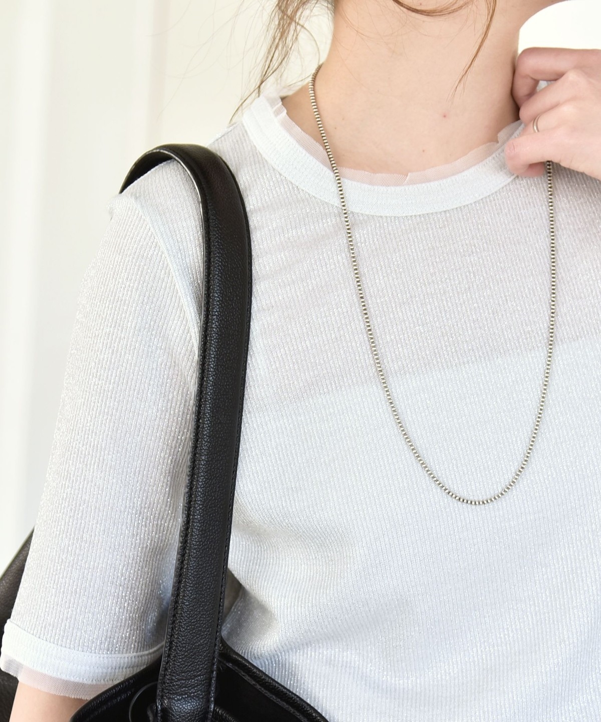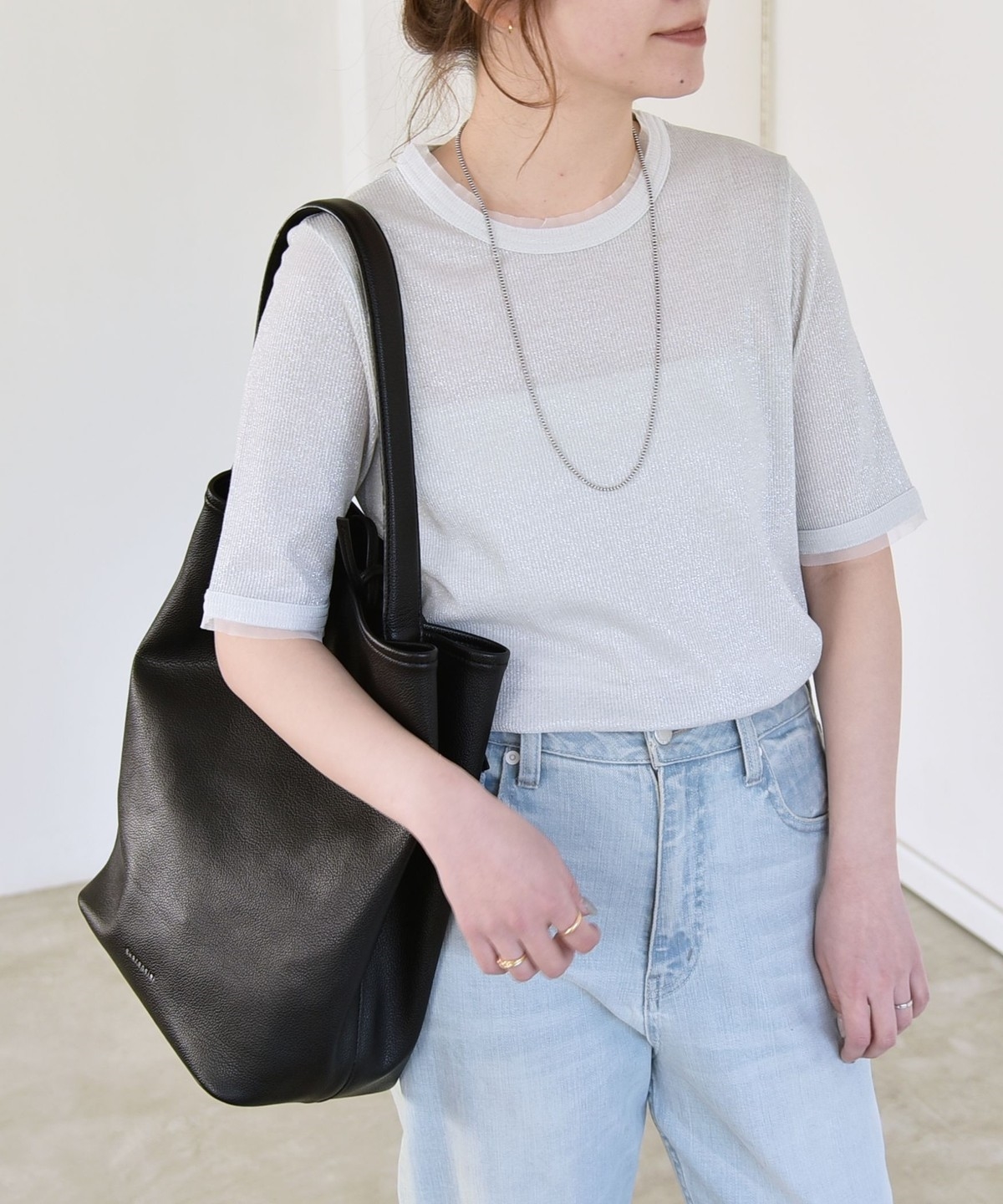 ラメ×チュールの存在感があるのでデニムなどいつものボトムと合わせるだけで品良く決まります。