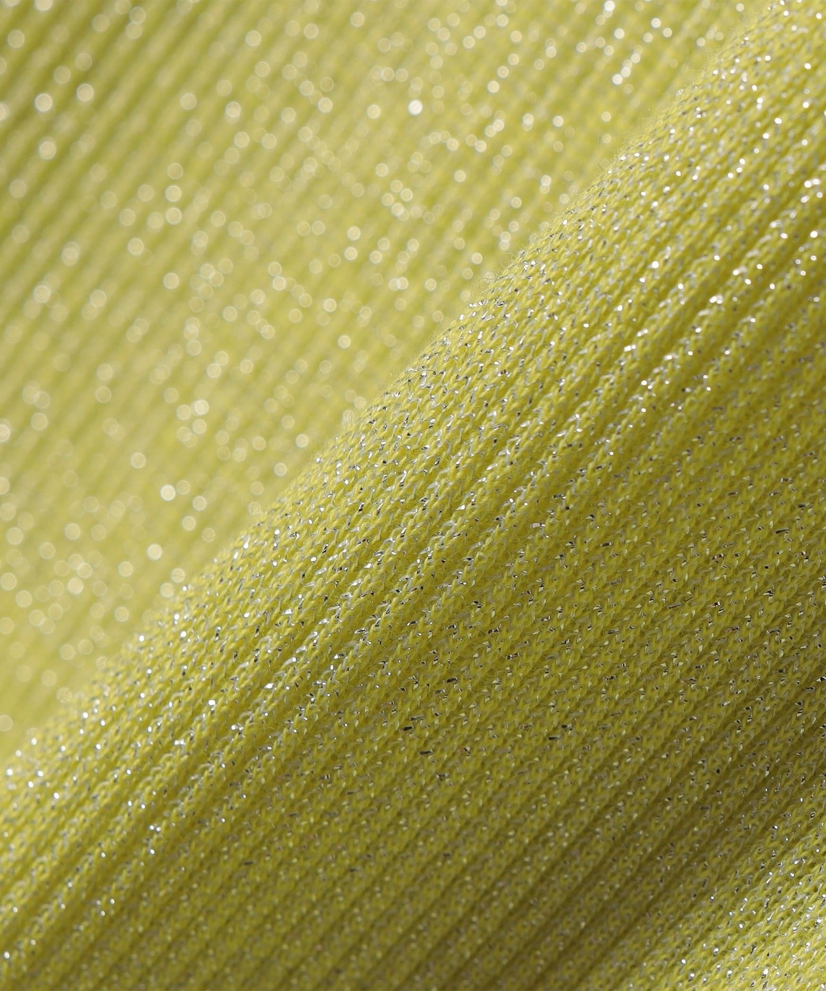 きらっと光るラメ糸が目を惹く、ハーフスリーブのリブトップスが登場。