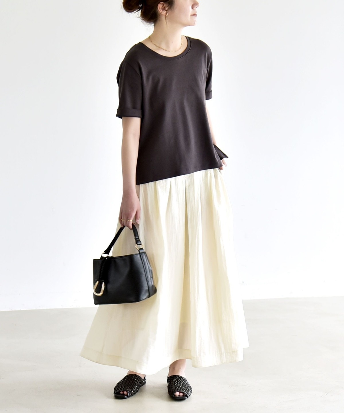 サイドにスリットを入れ軽やかさもあり、アウトスタイルでもバランス良く着こなせます。