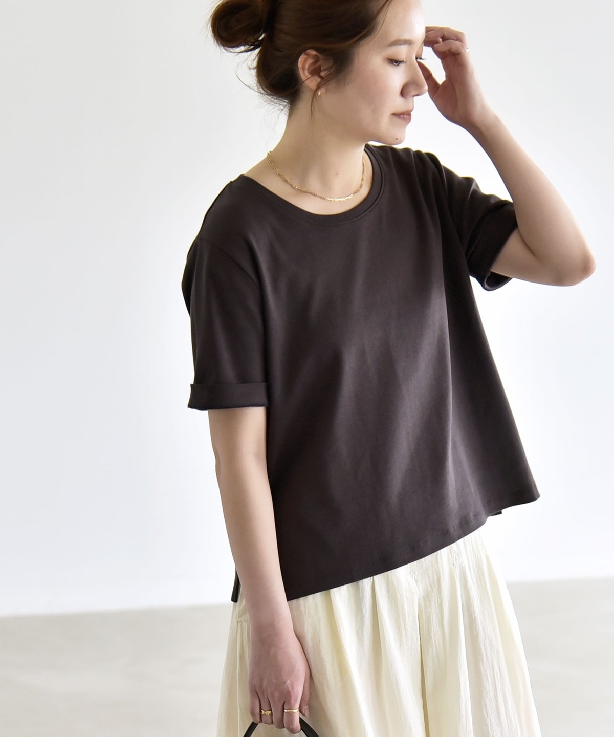 スッキリとしたショート丈シルエットのベーシックなクルーネックTシャツ。