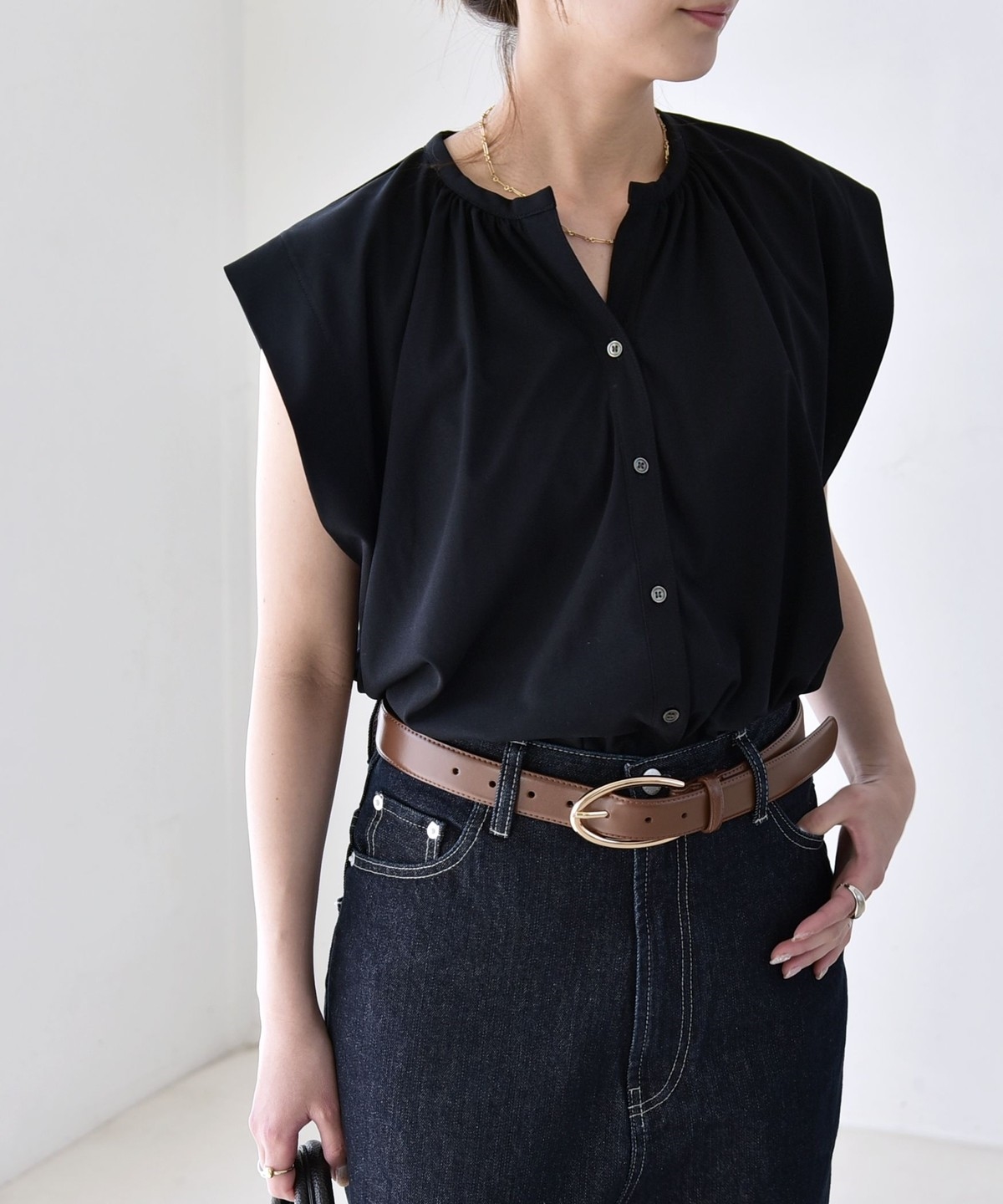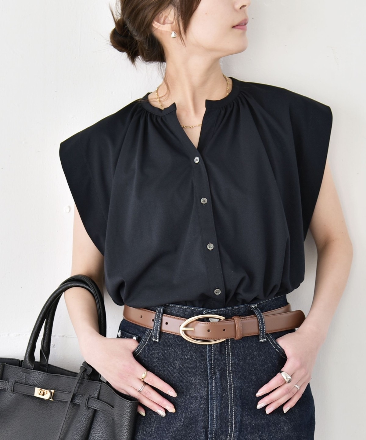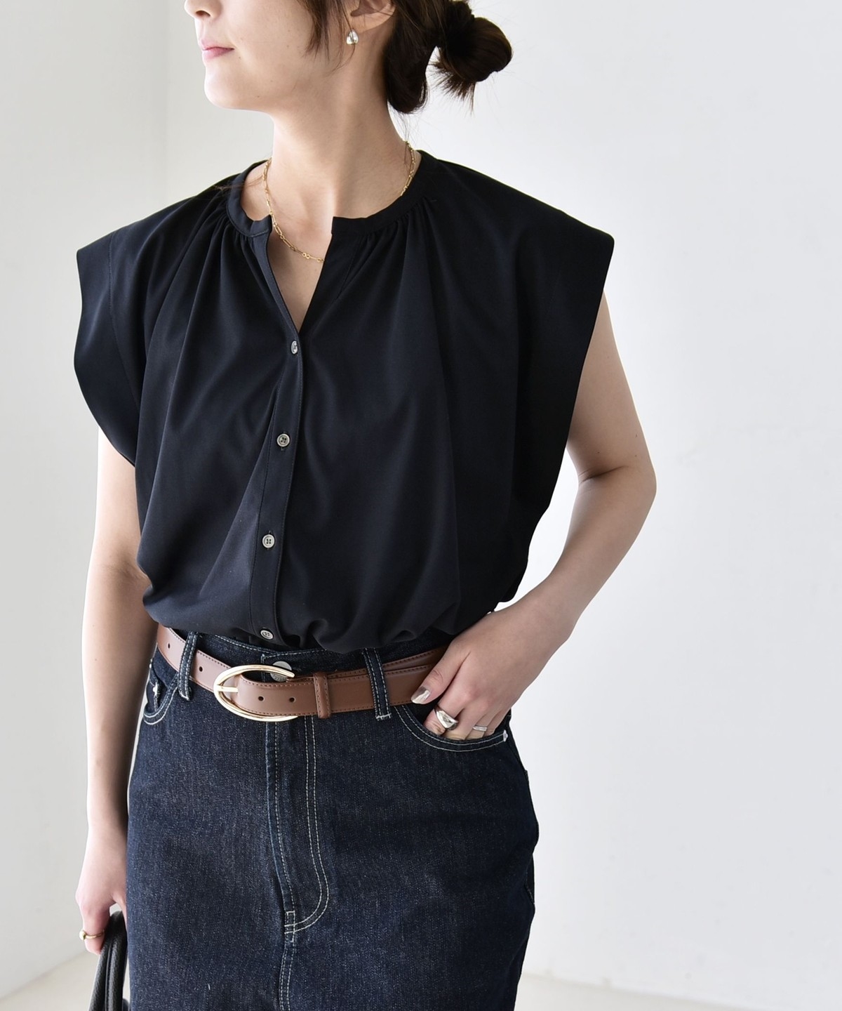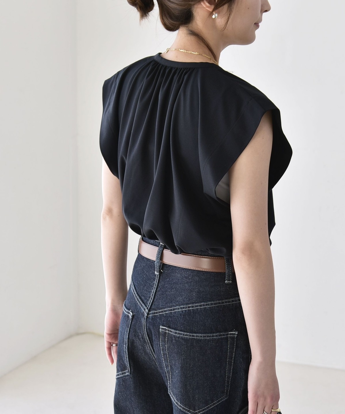 オンオフで使える、多機能ギャザーシャツ