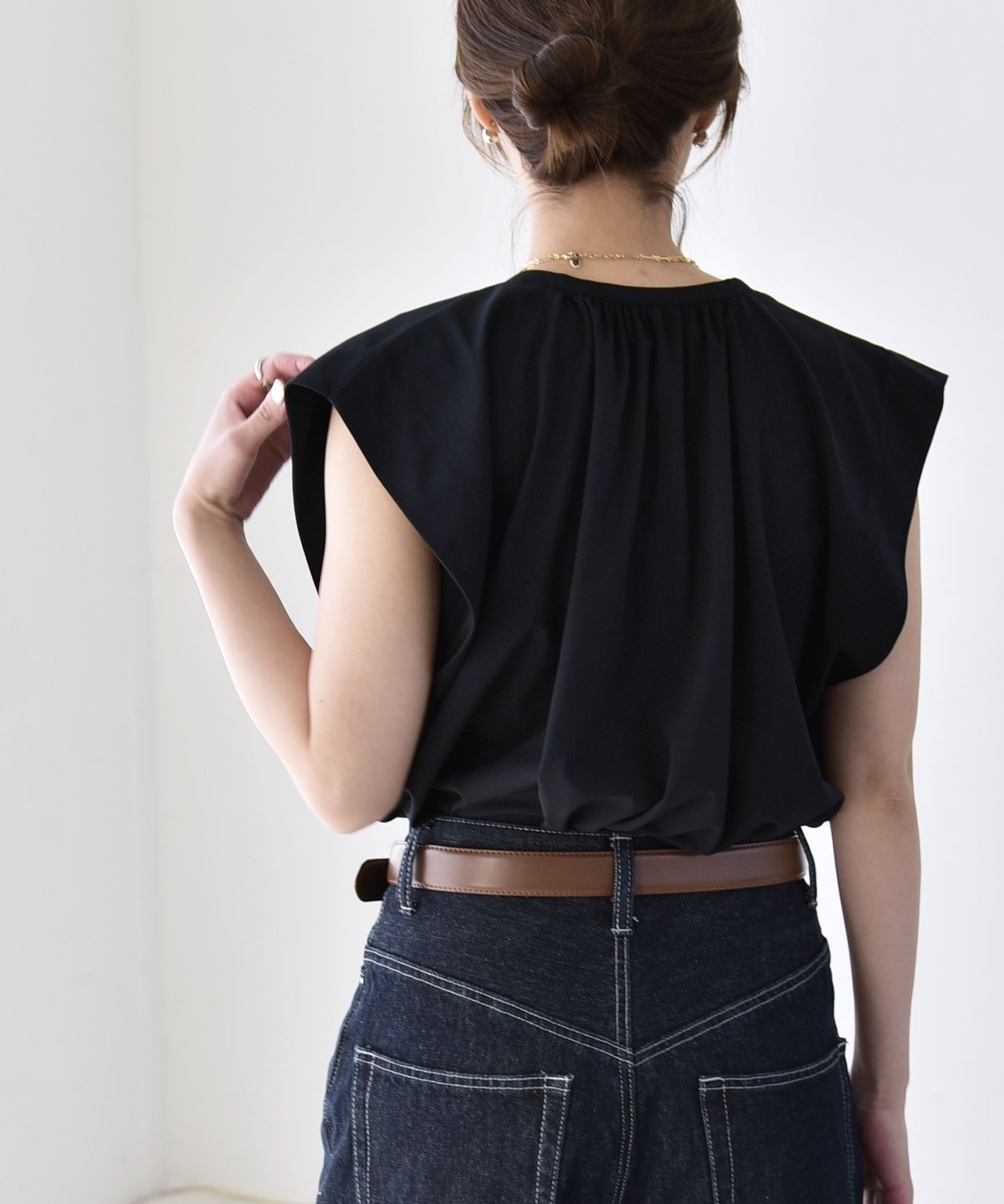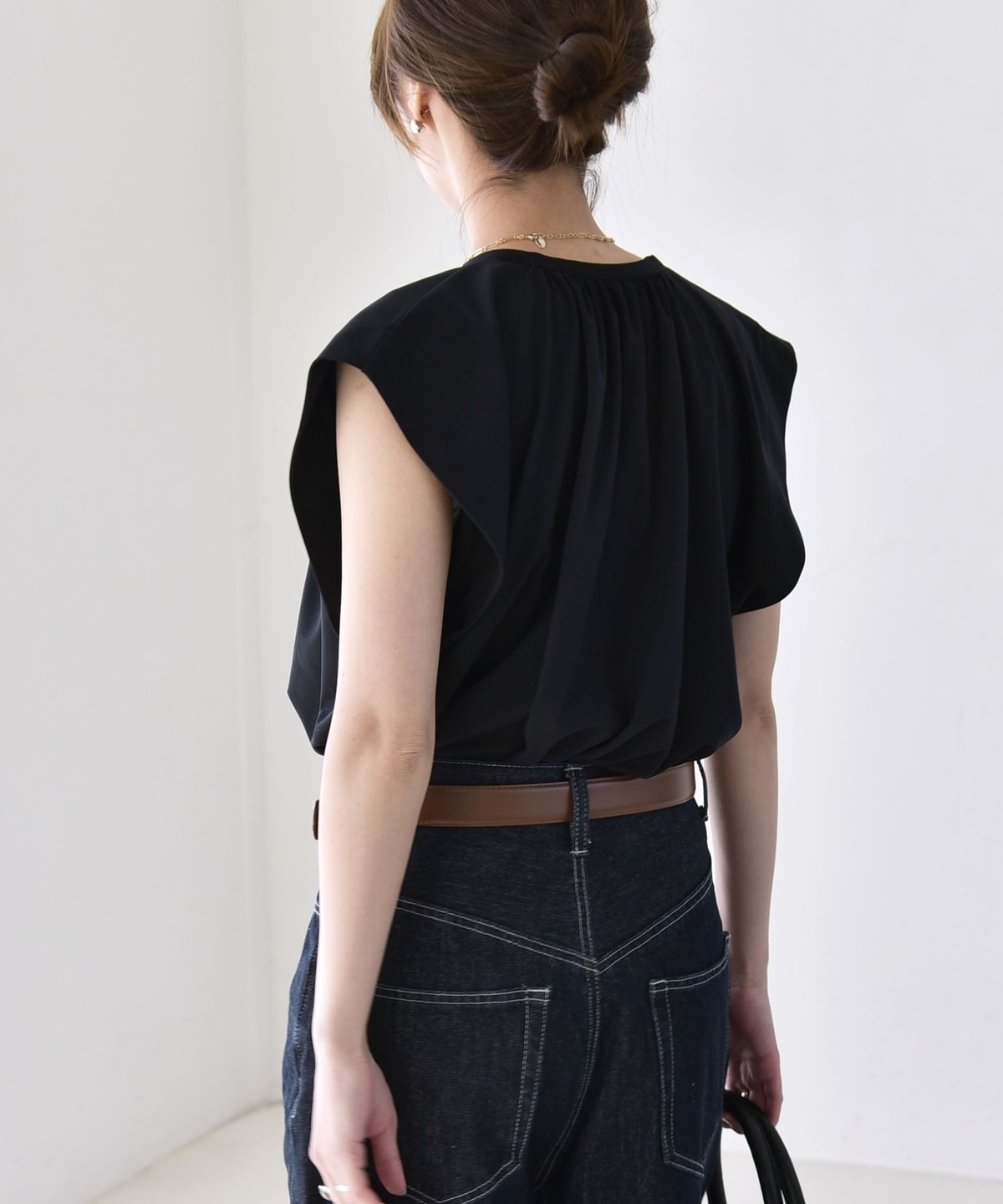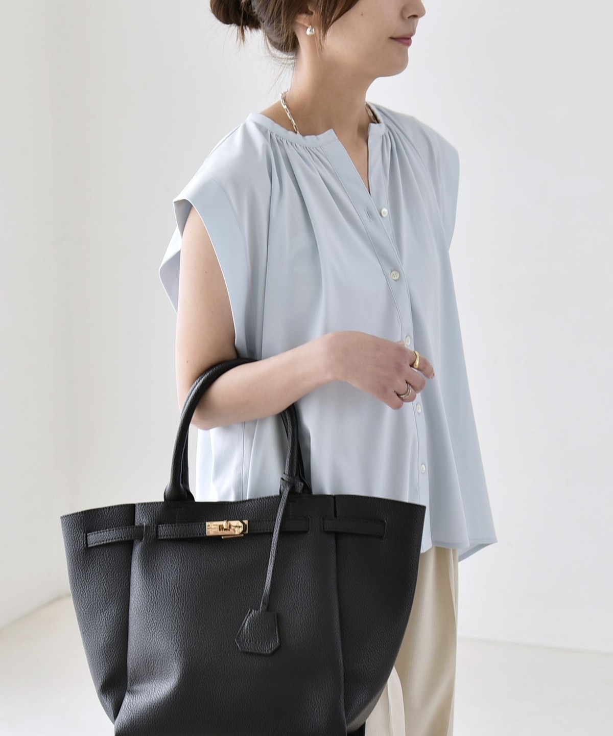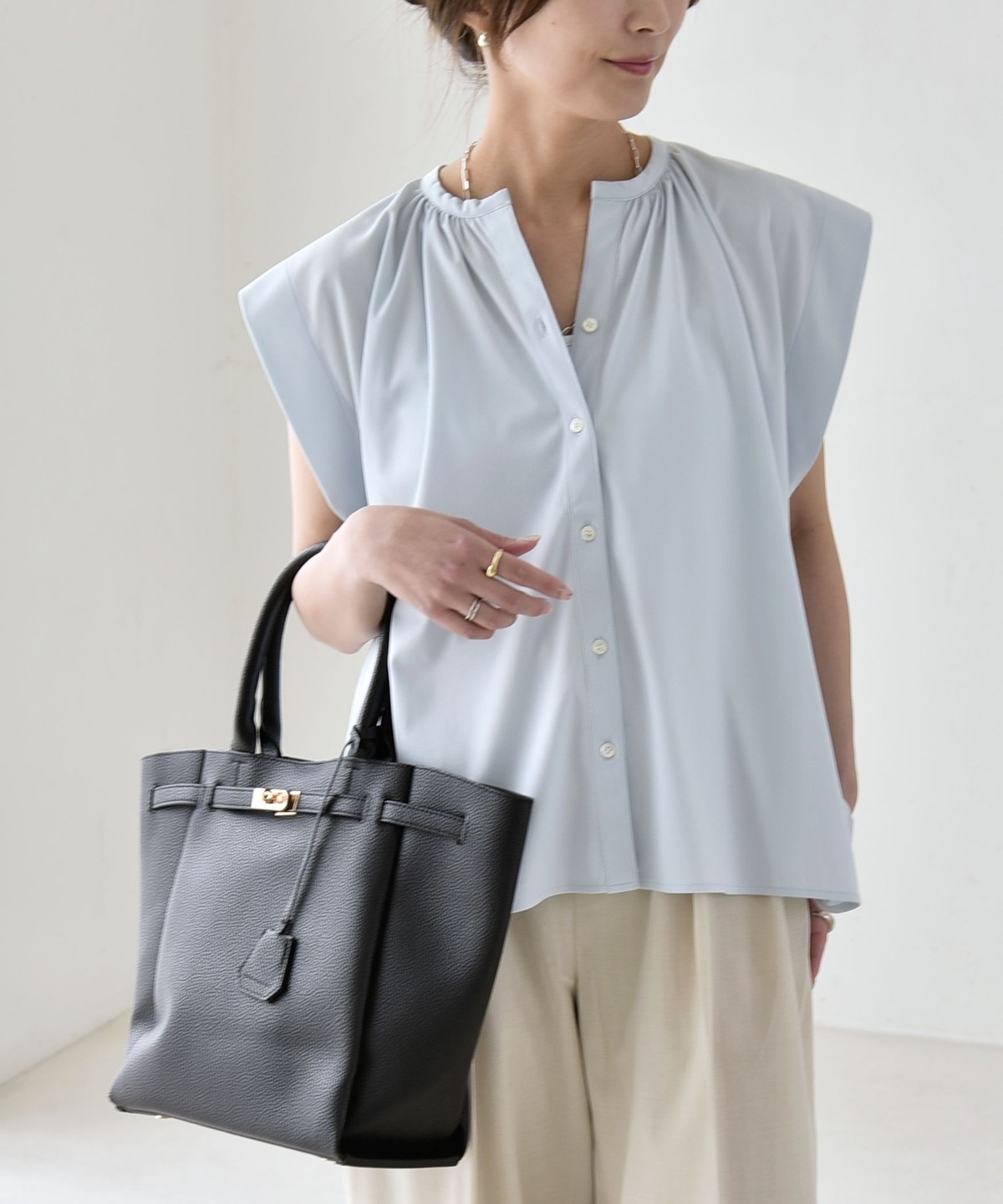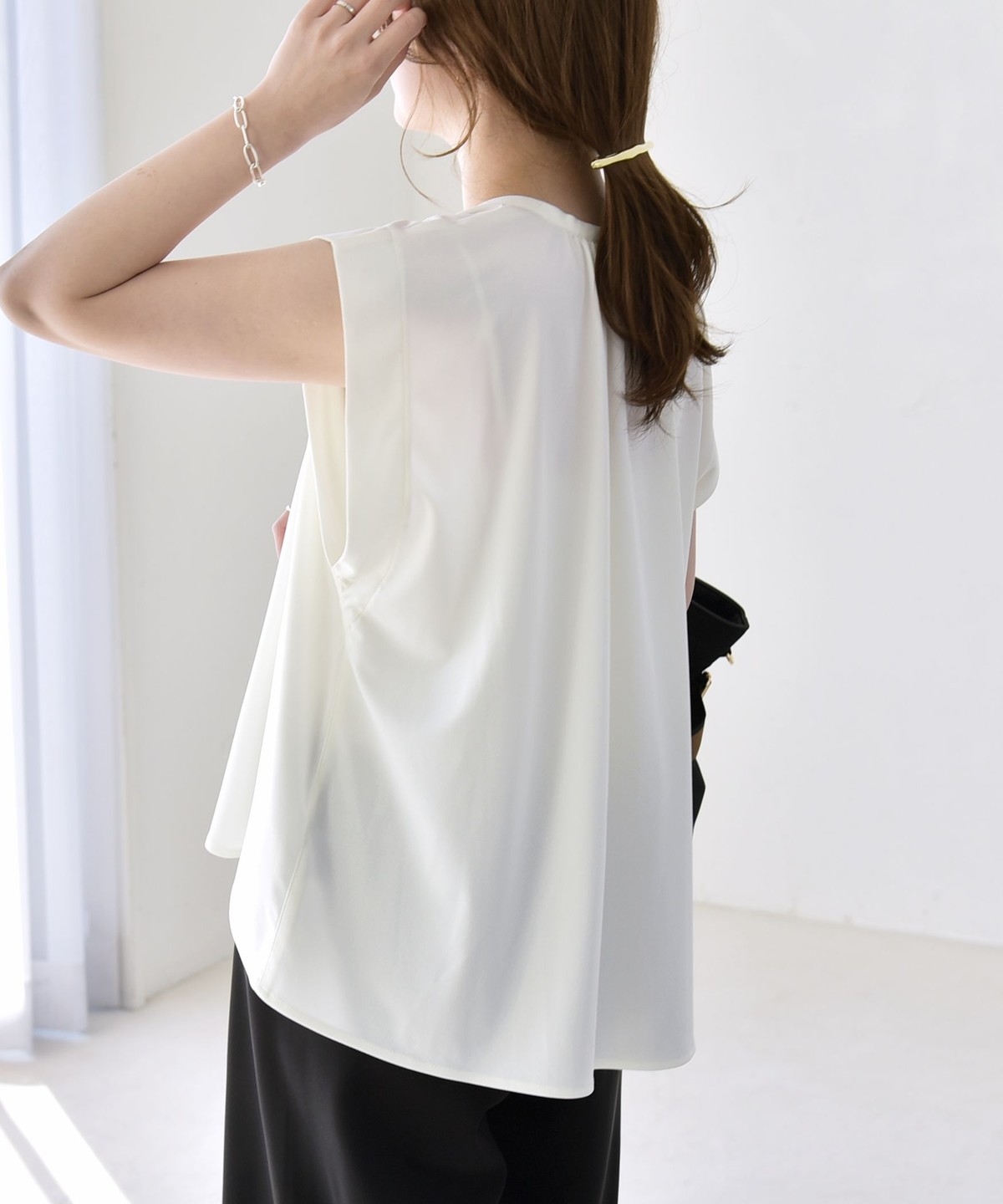 オンオフで使える、多機能ギャザーシャツ