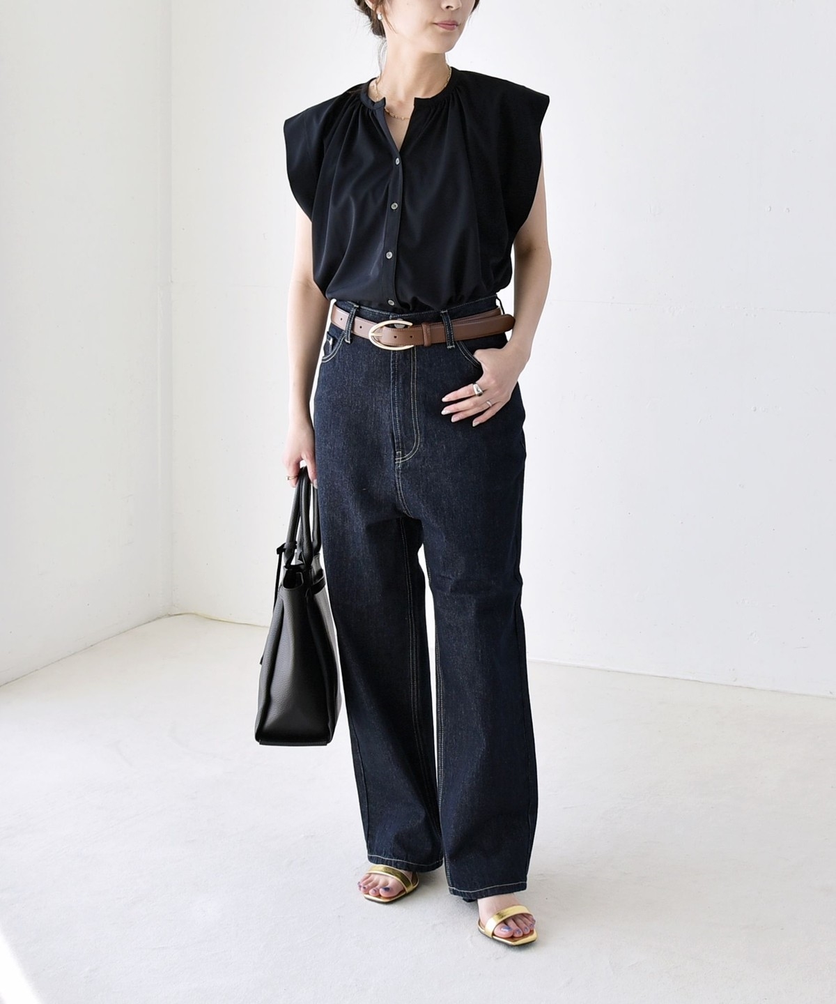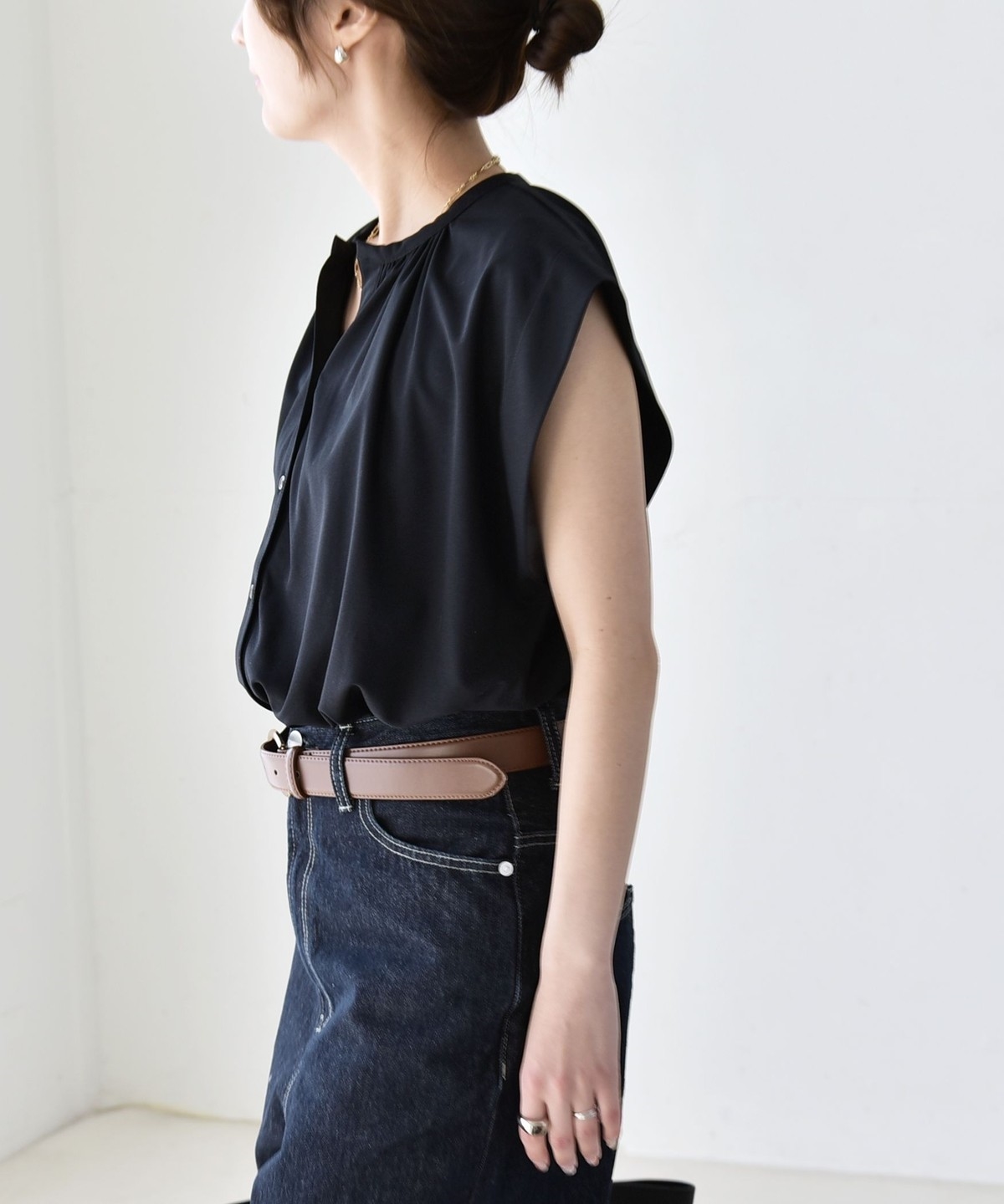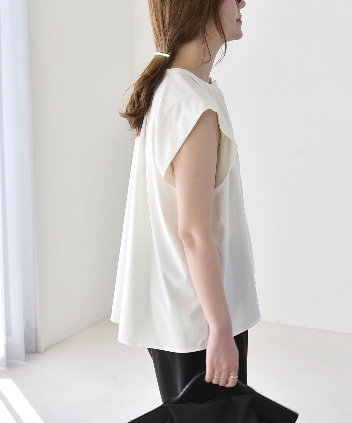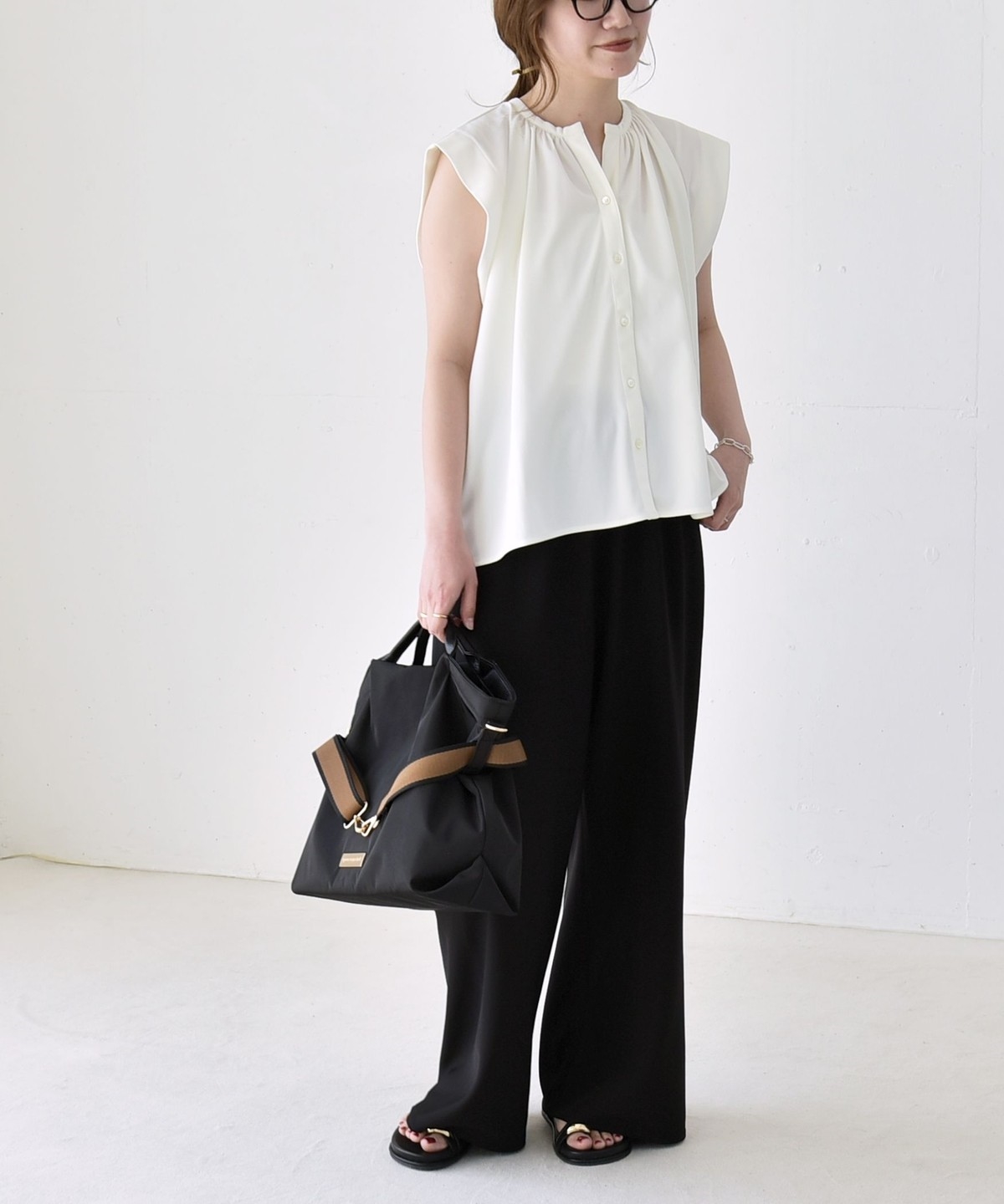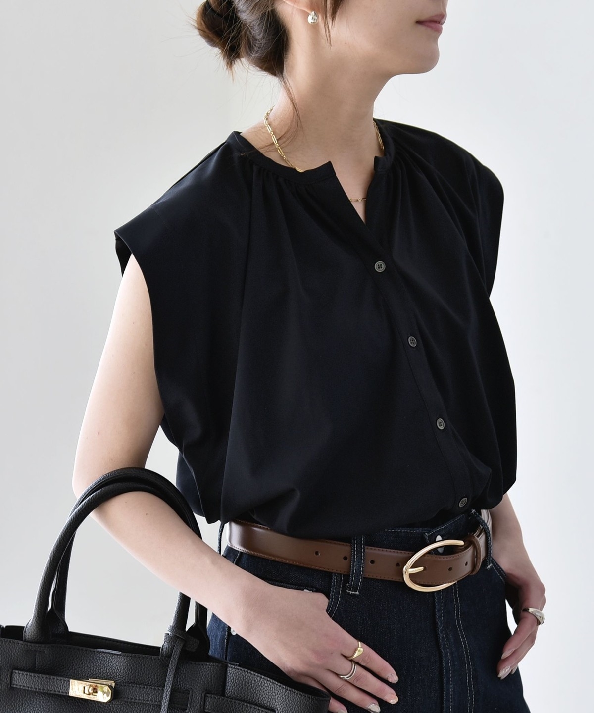 オンオフで使える、多機能ギャザーシャツ