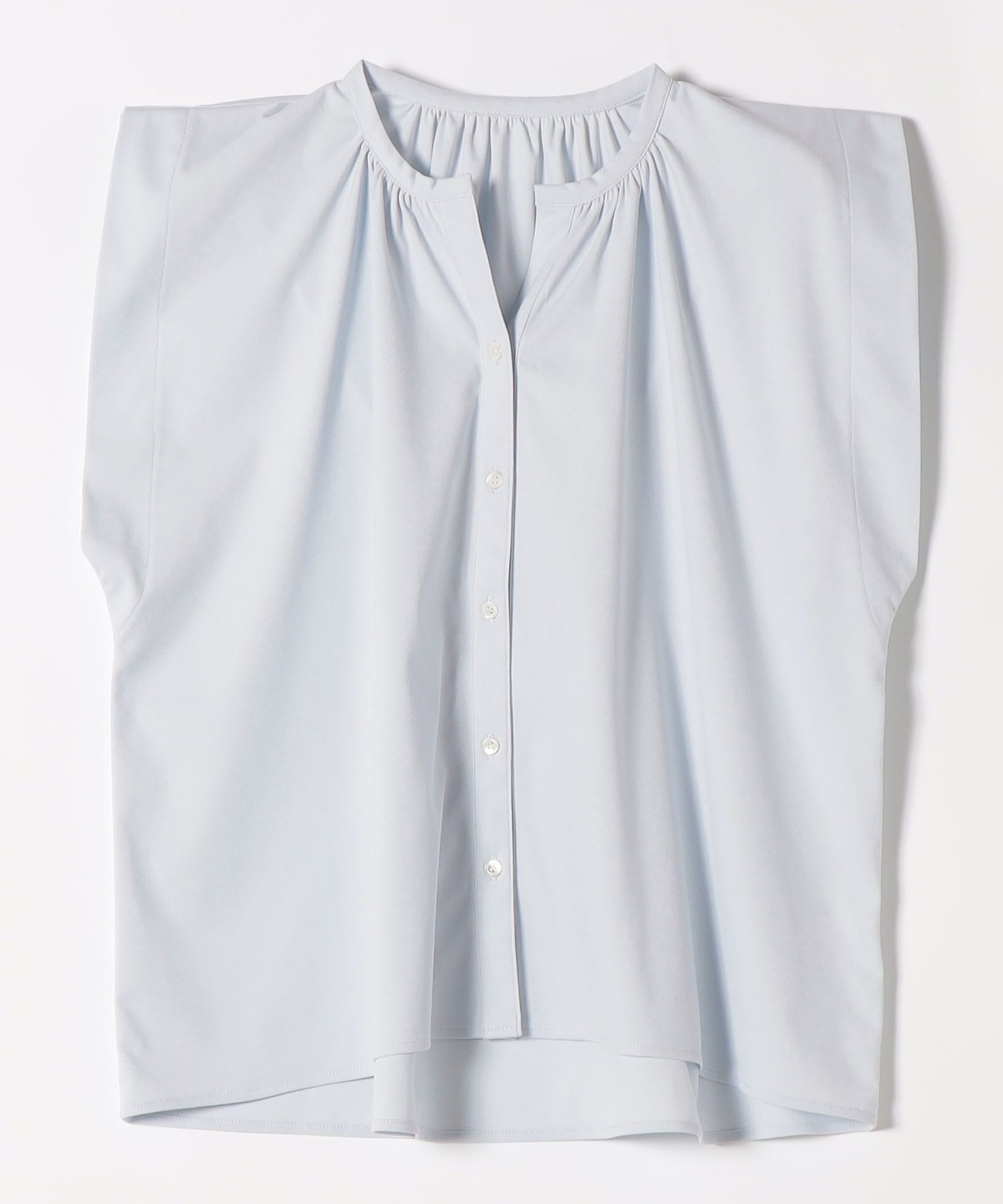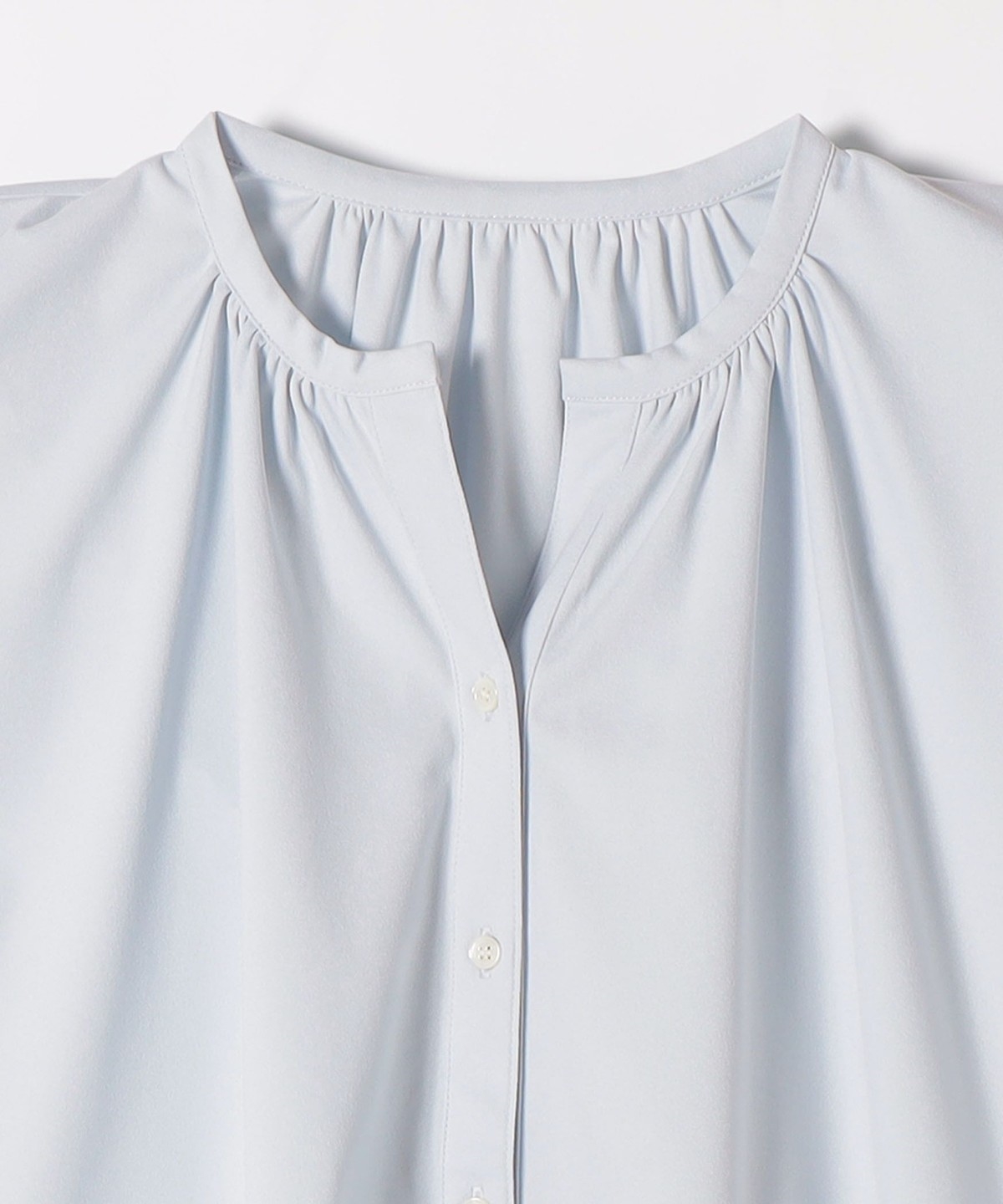 1. 《予約》quaranciel:〈接触冷感/UVカット/吸水速乾/洗濯機可能〉スキッパー ギャザー シャツ カットソー ライトブルー