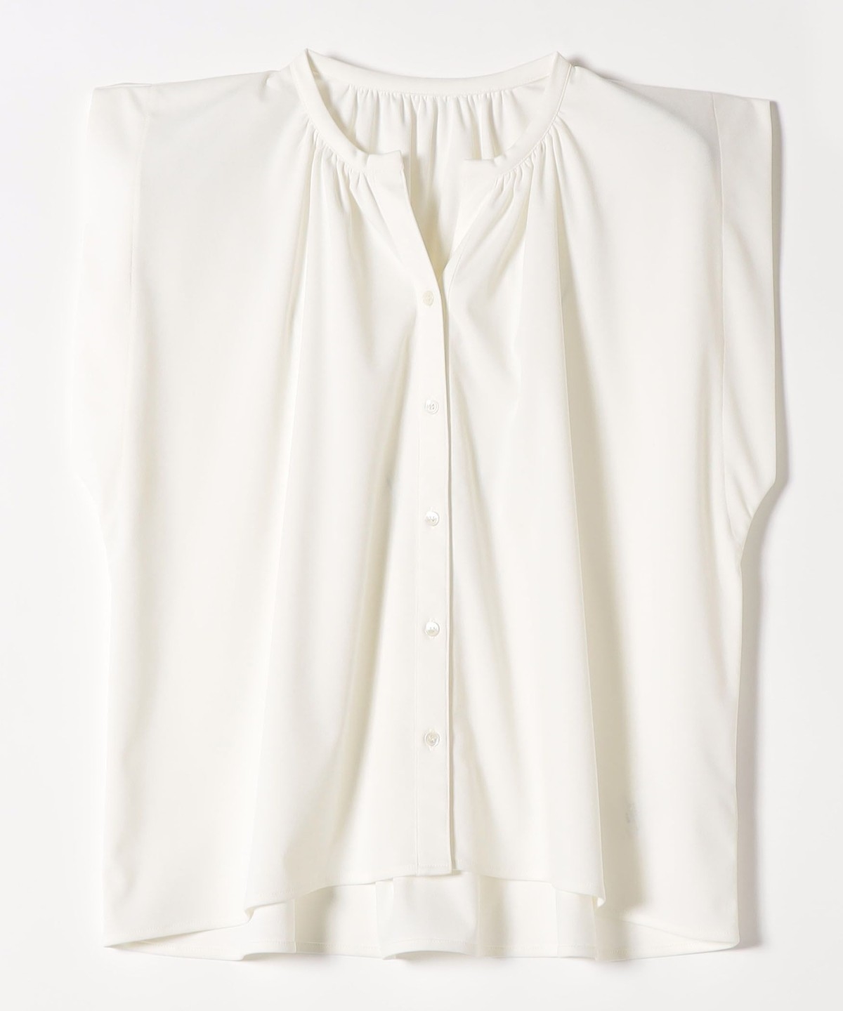2. 《予約》quaranciel:〈接触冷感/UVカット/吸水速乾/洗濯機可能〉スキッパー ギャザー シャツ カットソー オフホワイト