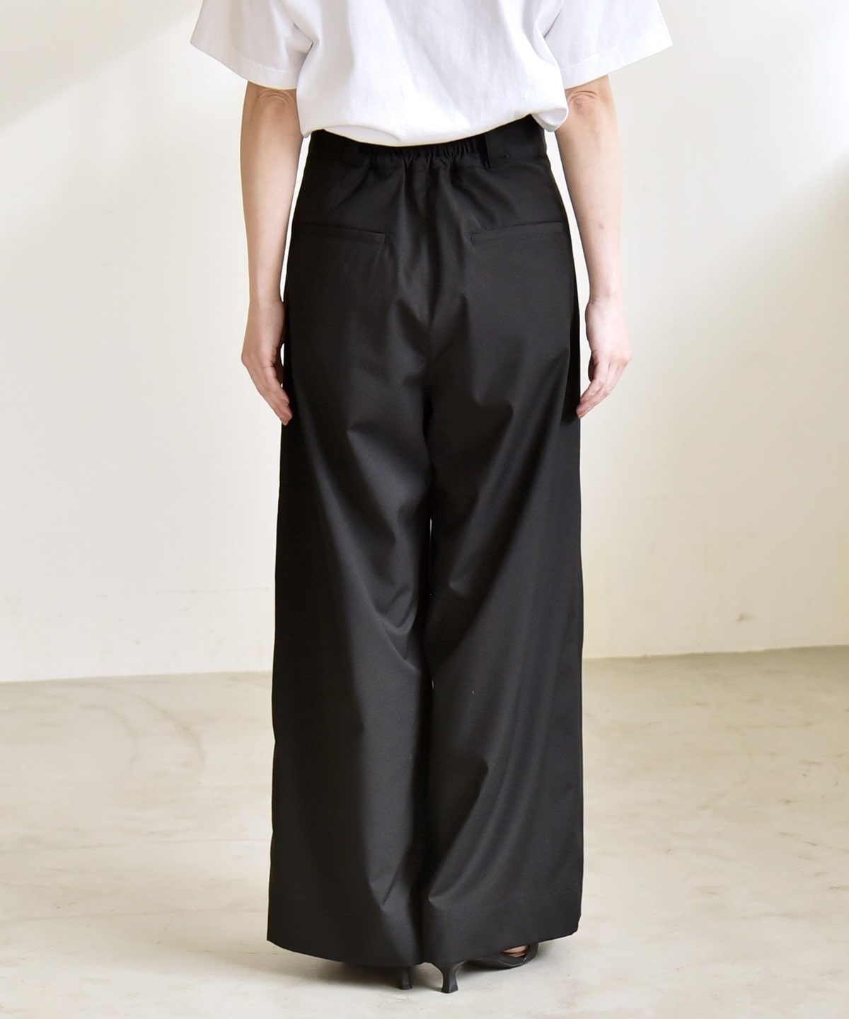 落ち感のある軽やかな生地をたっぷりと使ったワイドシルエットが美しく、着るだけでサマになってくれるパンツです。