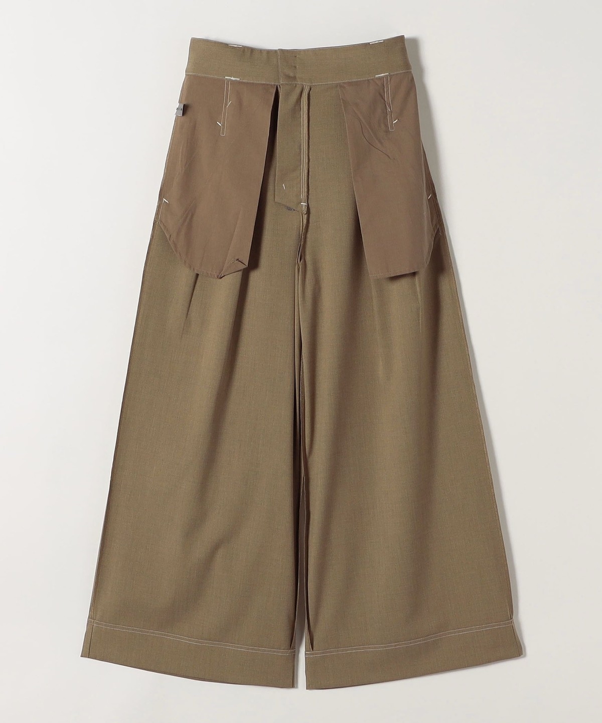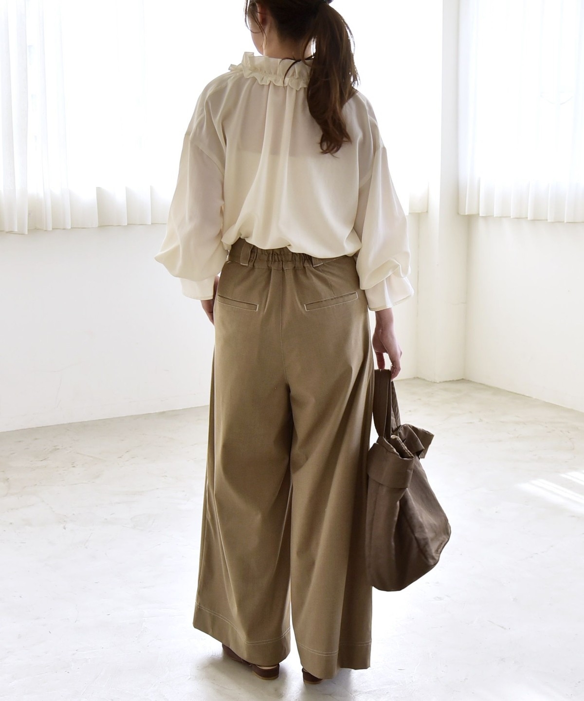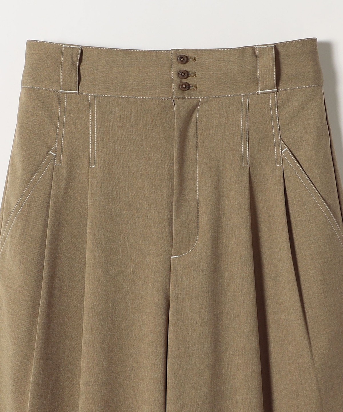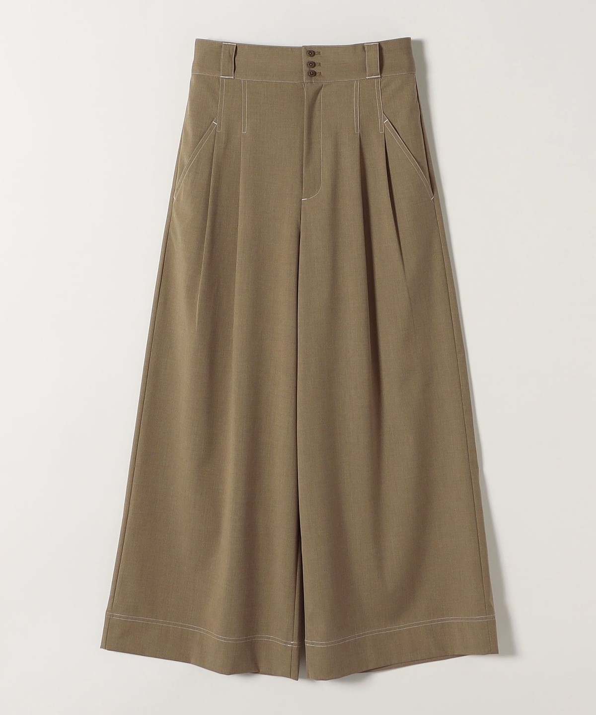 ウエストのボタンディテールがモードな雰囲気のある、ハイウエストのワイドパンツ。