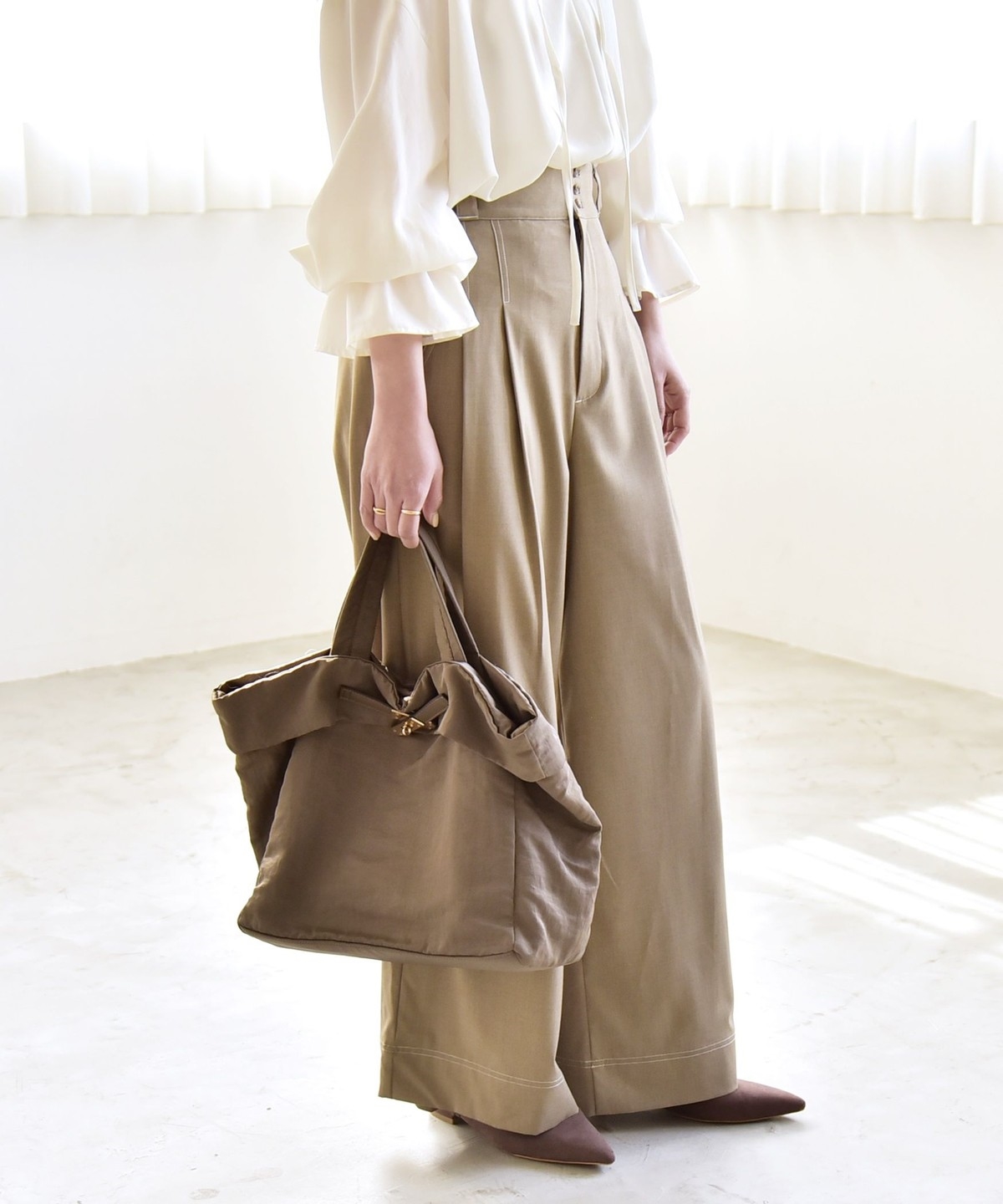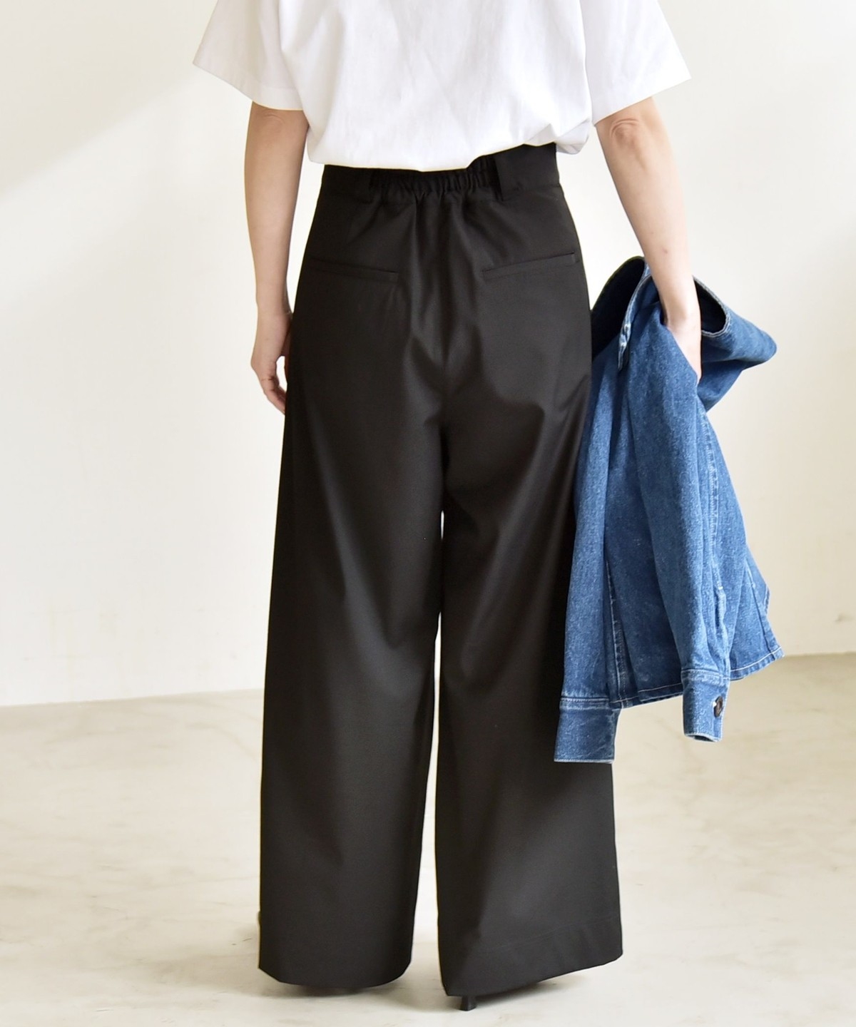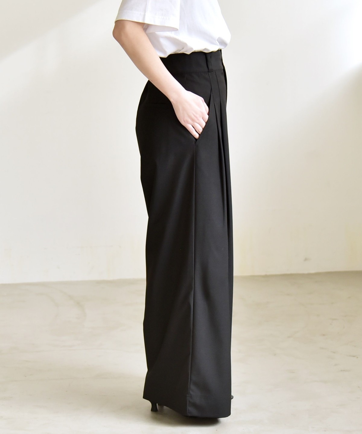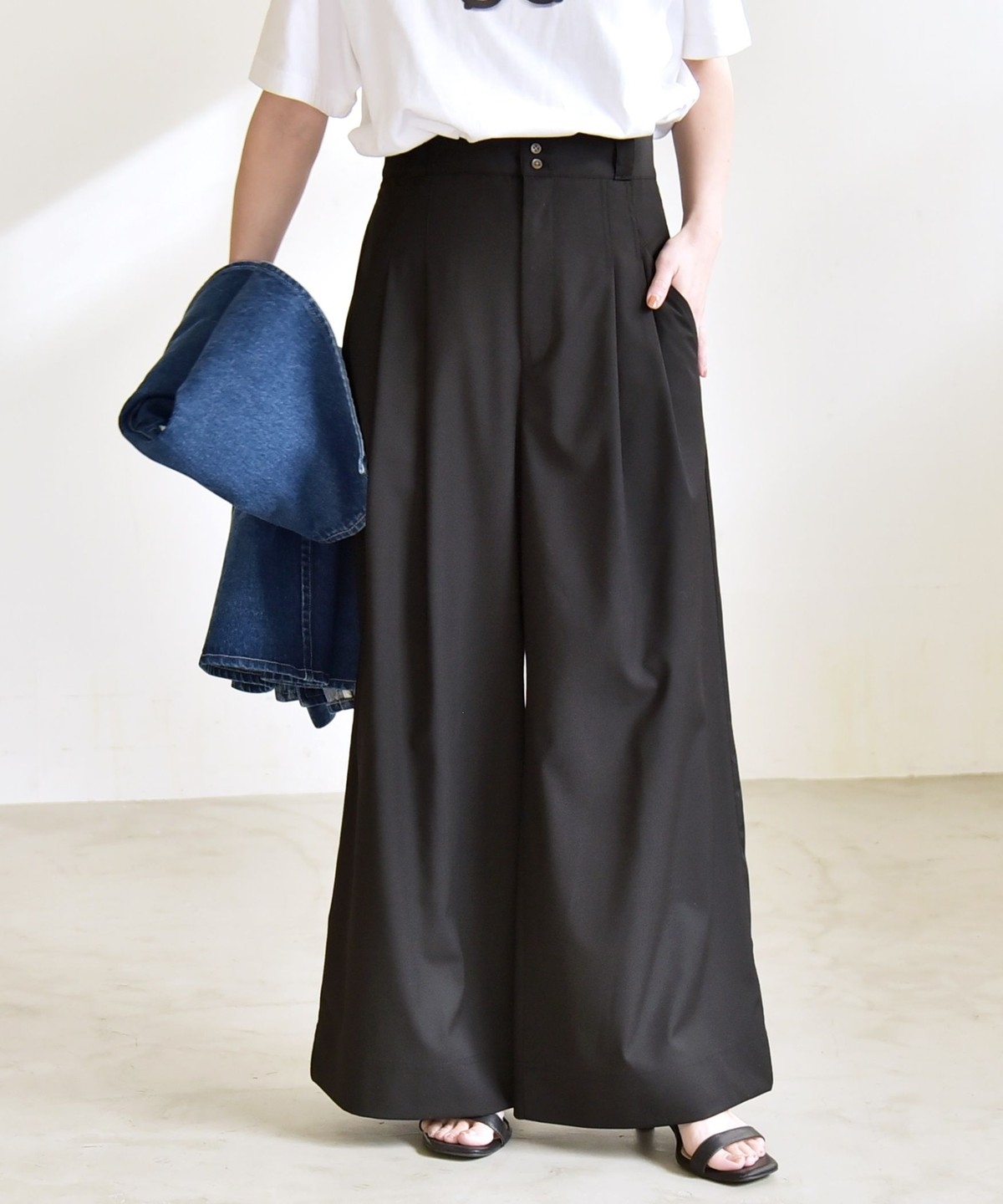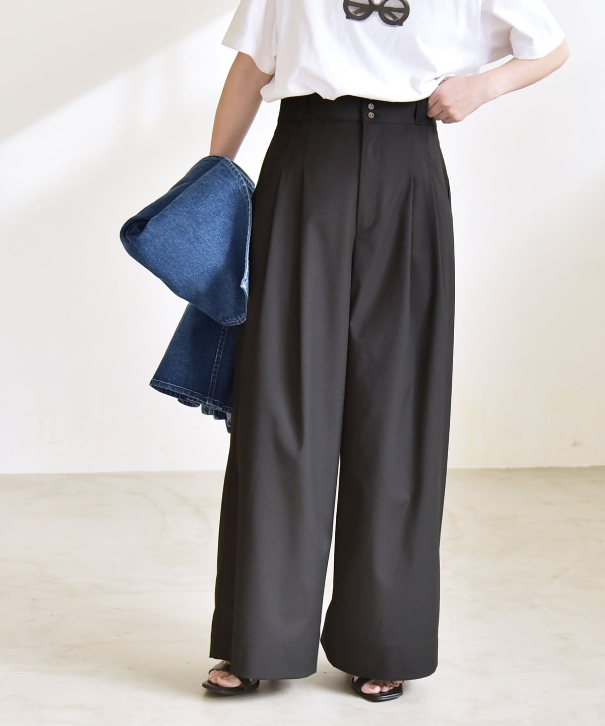 《予約》quaranciel:〈洗濯機可能〉ハイウエスト ボタン 2タック ワイド パンツ