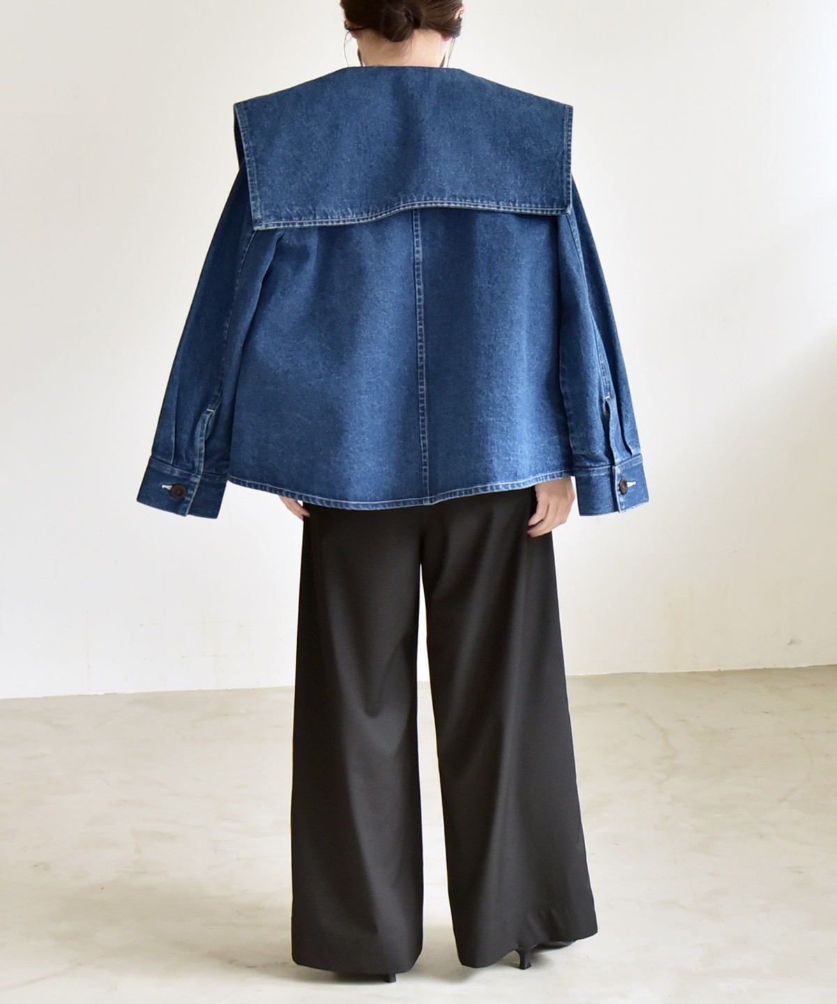 美シルエットなので、タックインしてパンツを主役にしたスタイリングがおすすめ。