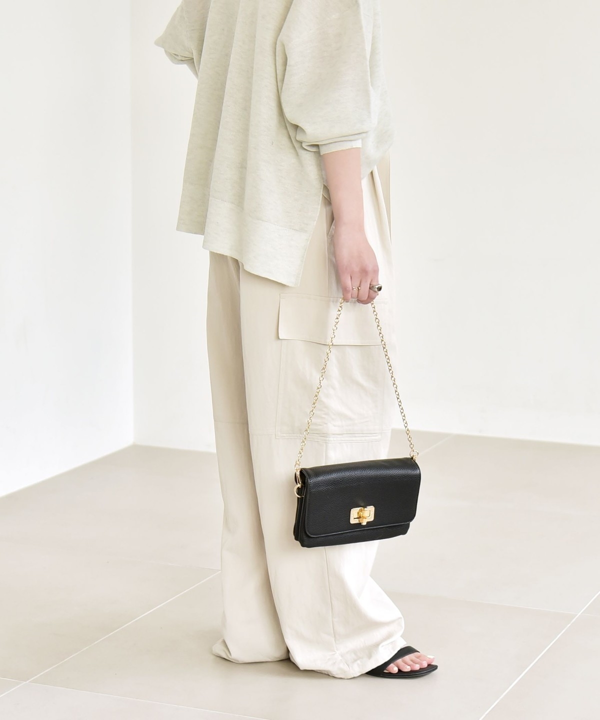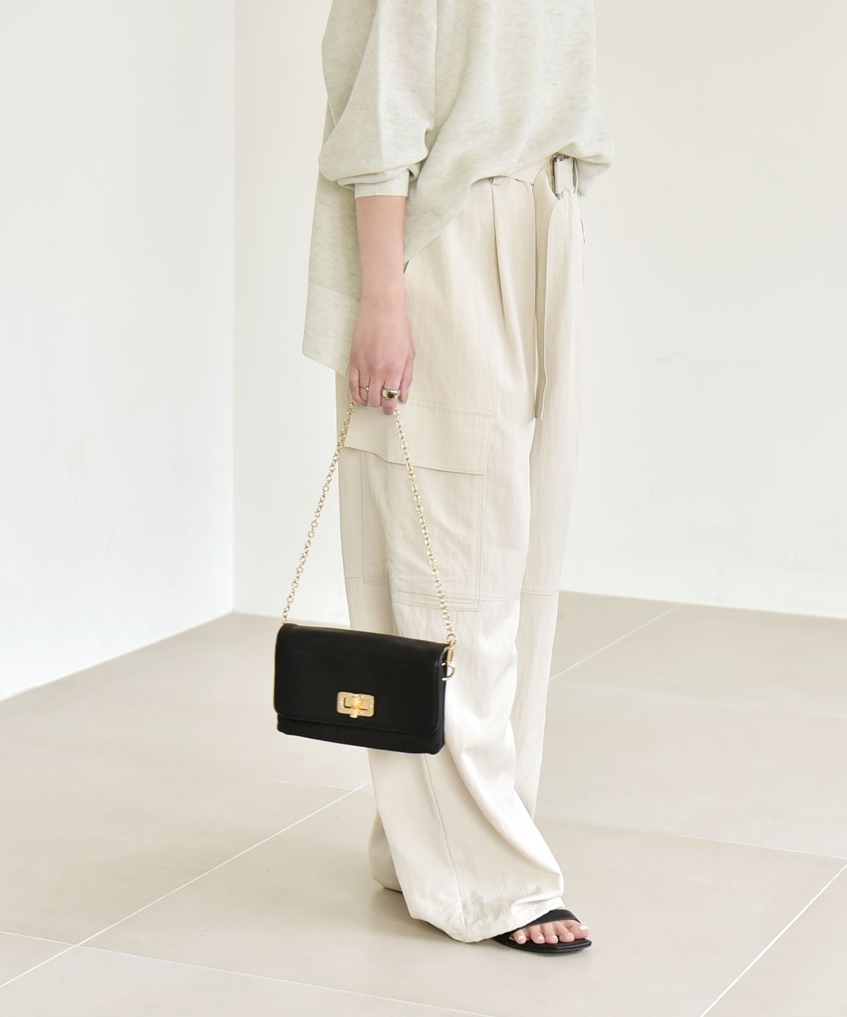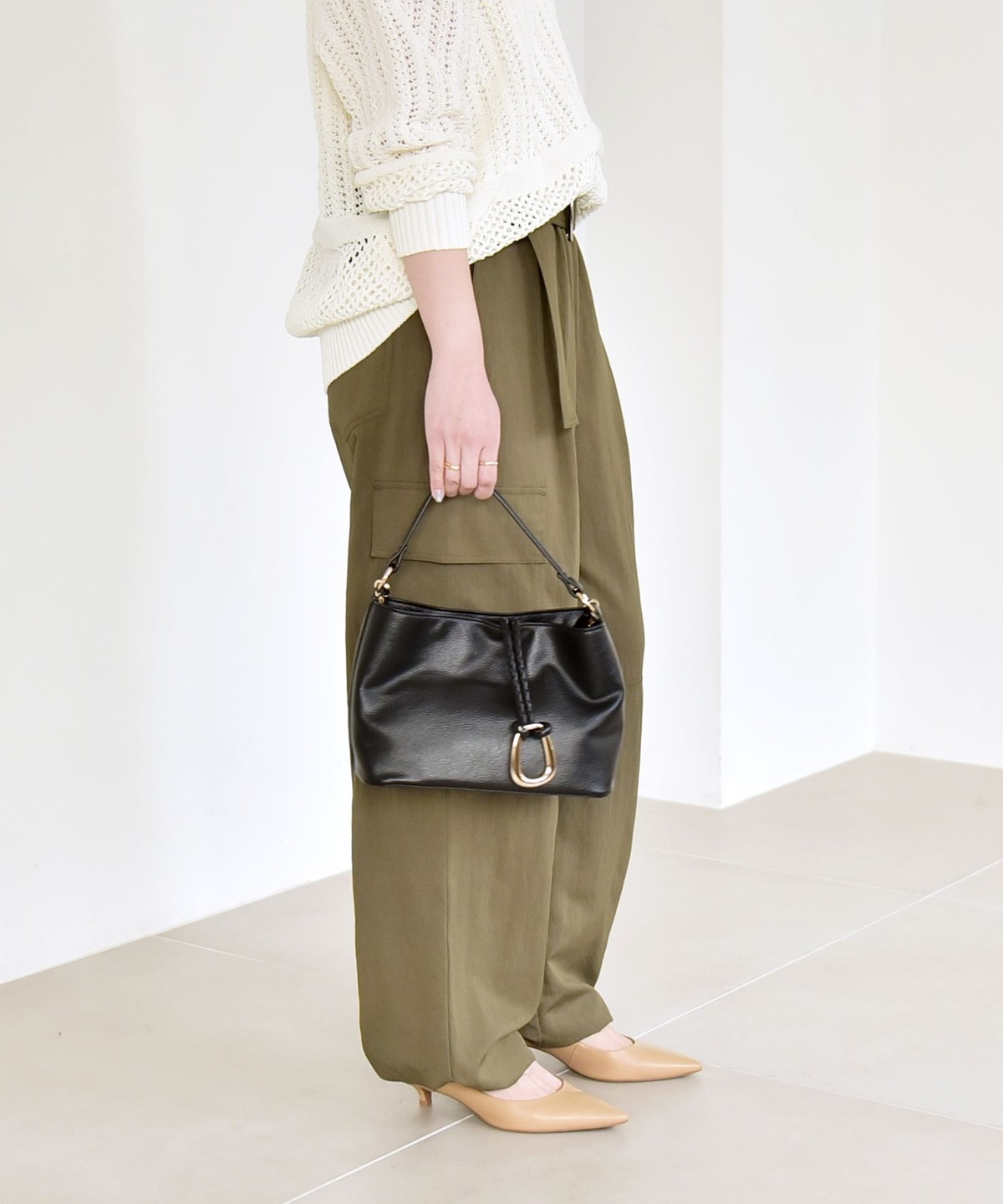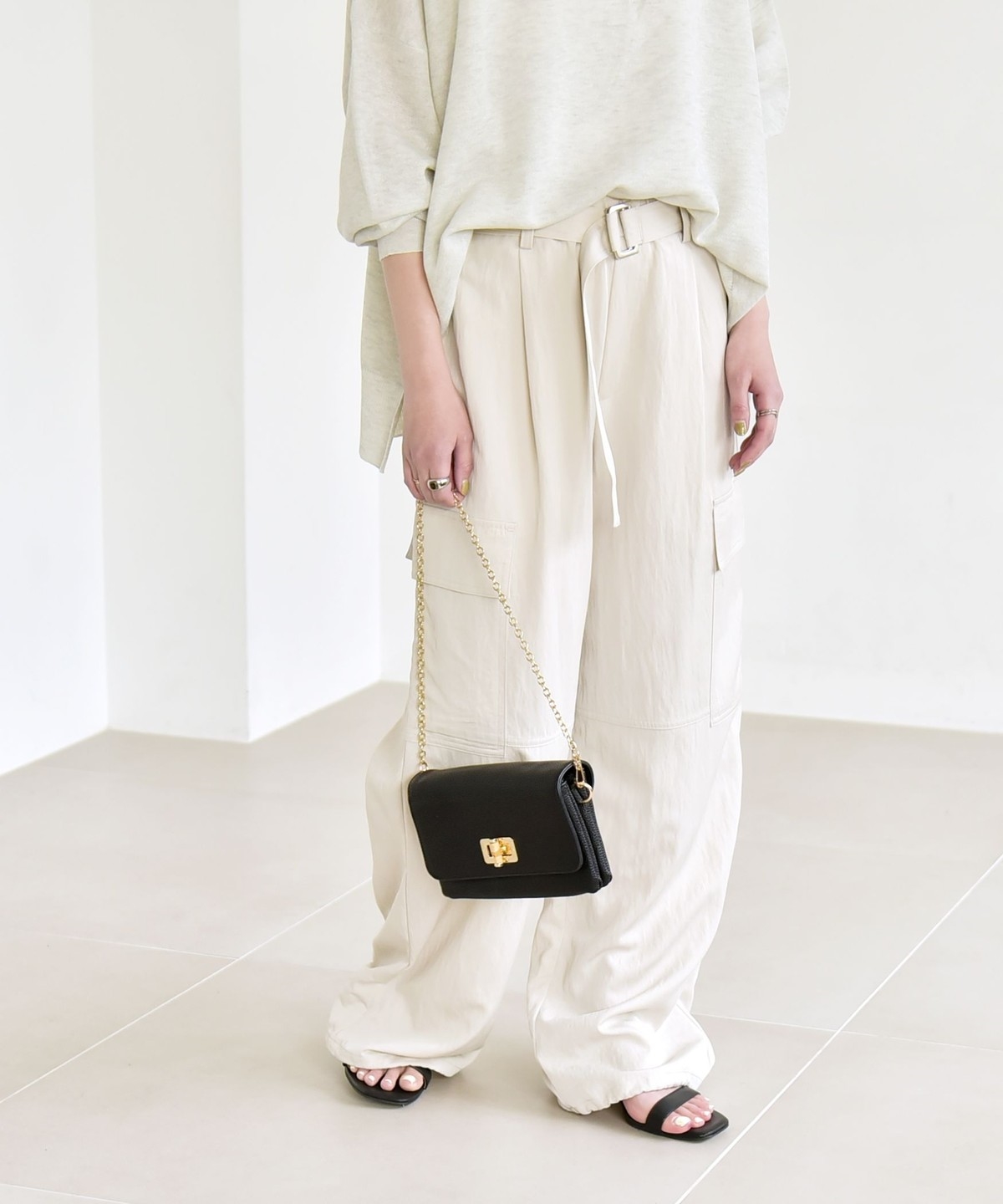 ソフトで女性らしさのある風合いの生地に、サイドポケットなどカジュアル要素をプラスしたカーゴパンツ。