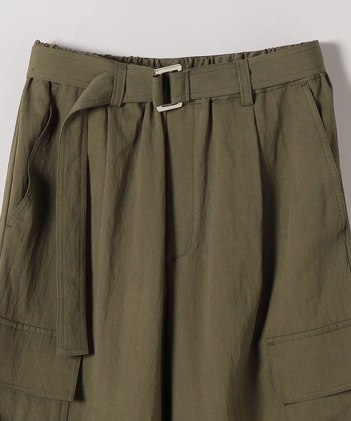 ウエストは総ゴムのイージー仕様でストレスフリー、取り外し可能な共地のベルトでフィット感を調整できます。