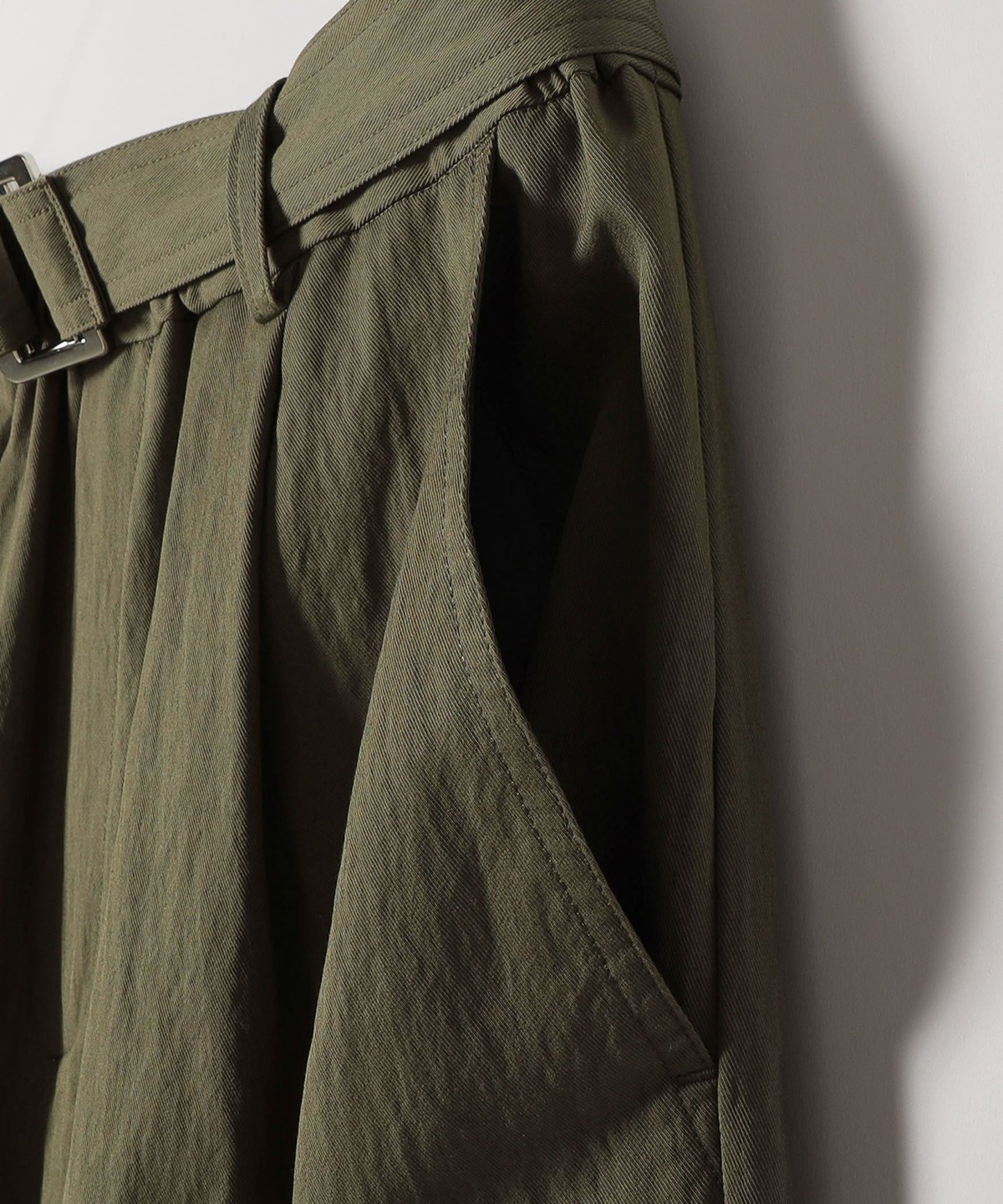 裾はドローコードが通っているので、きゅっと絞ってシルエットの変化を2wayで楽しめる一着です。