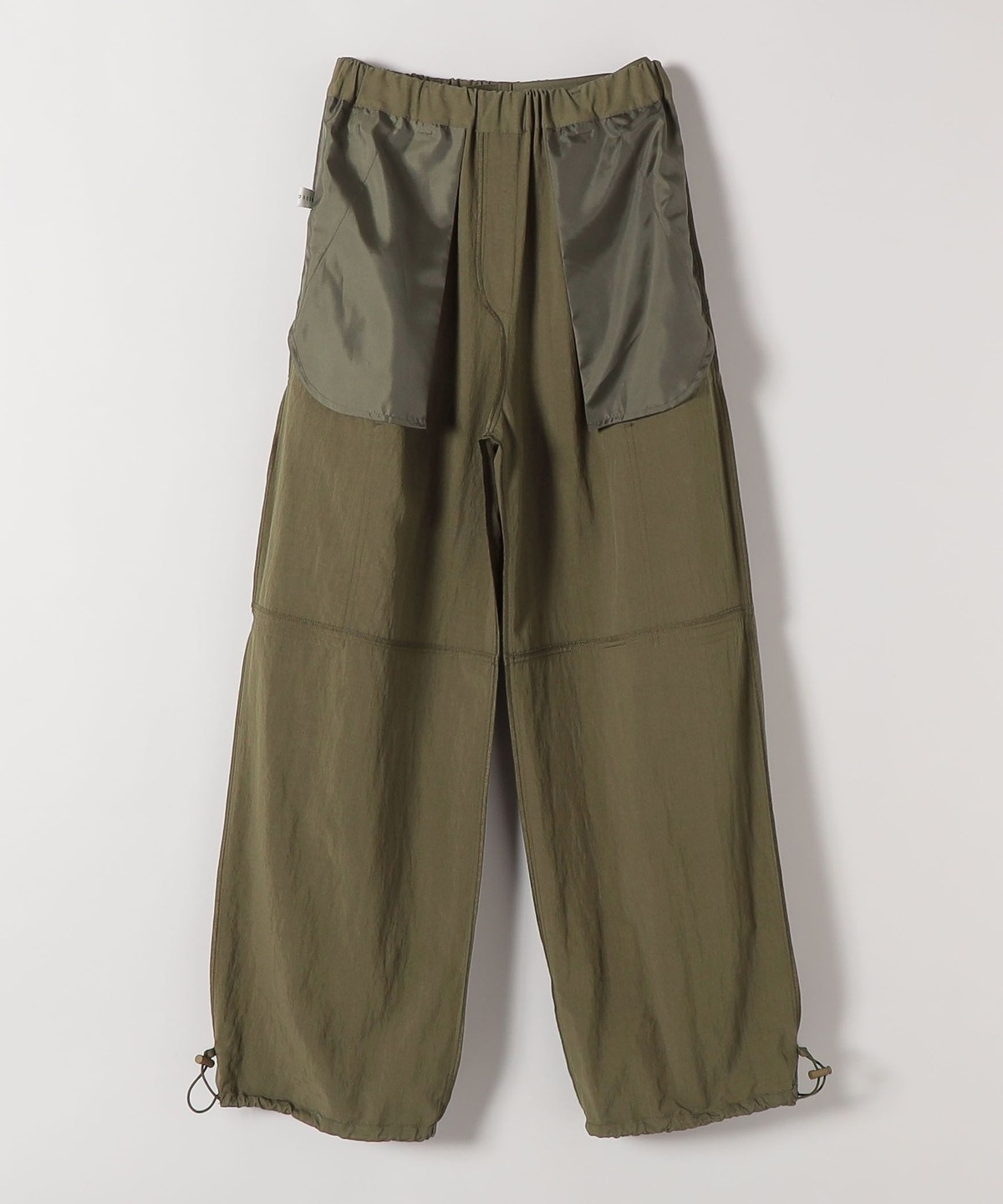 サイズ感:ヒール合わせで床に付きそうなすれすれの長さ。裾のドロストを絞れば足首で留まります。ウエストはゴムで快適。ヒップやもも周りもかなりゆとりがありますが広がっては見えません。