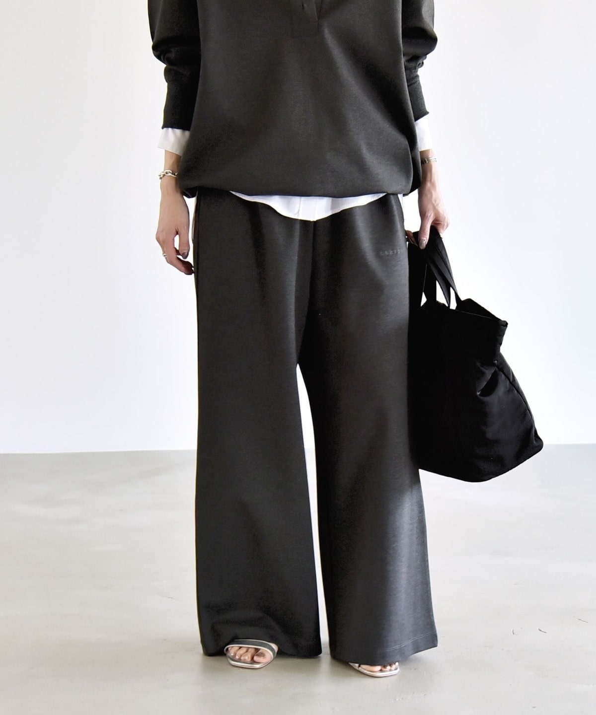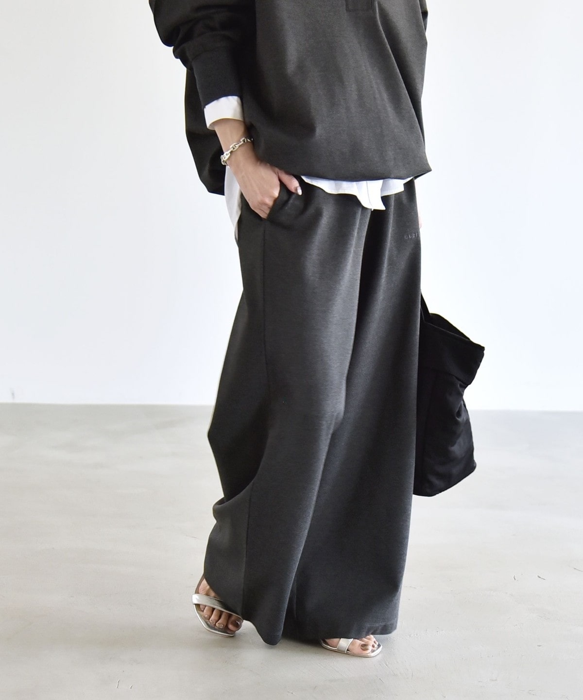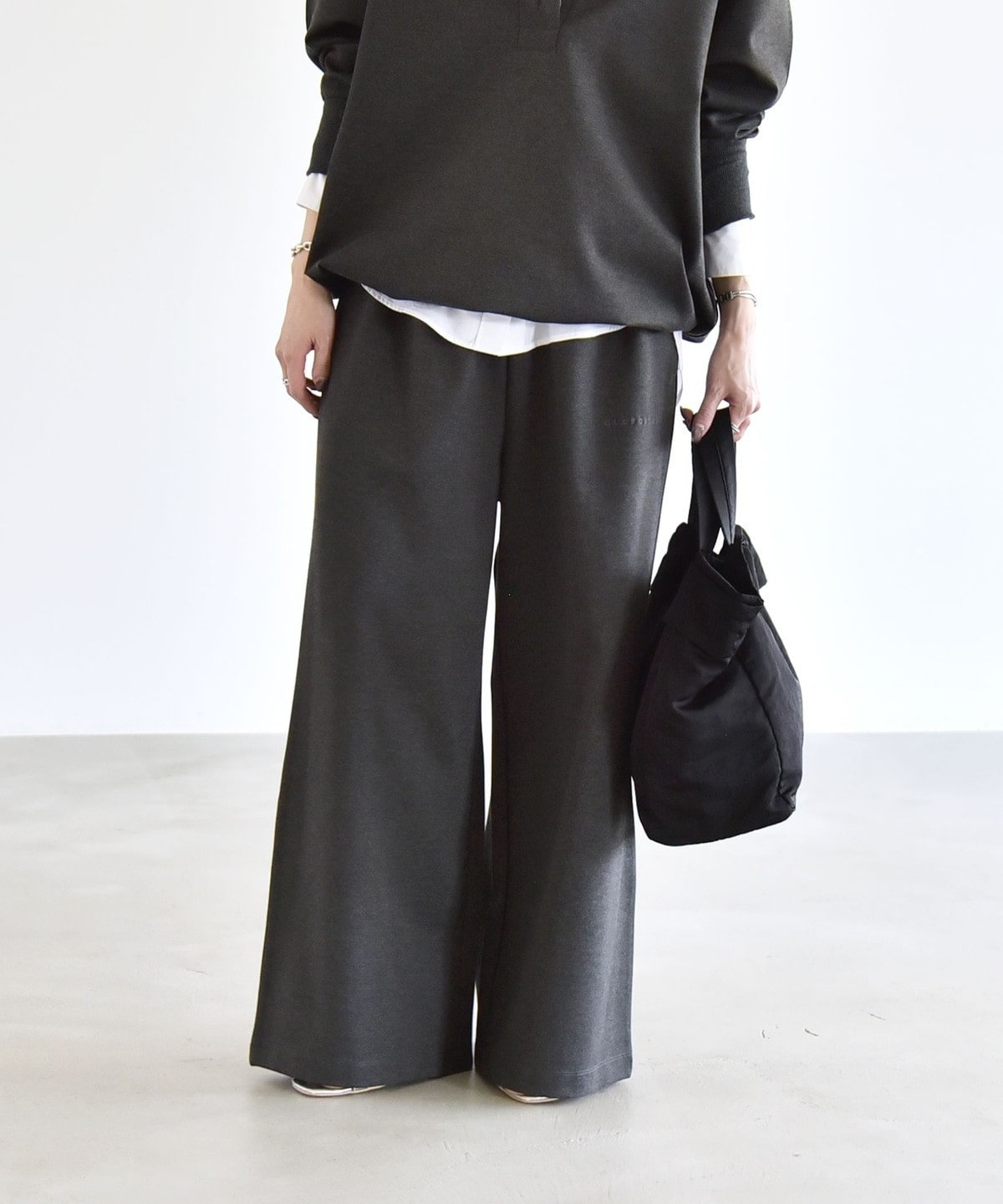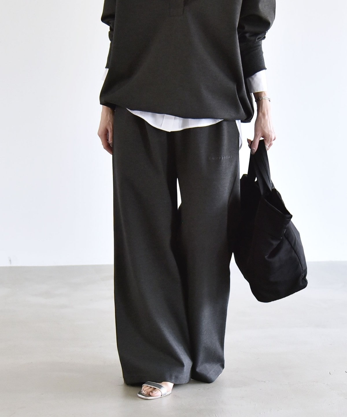 2. 《予約》quaranciel:〈洗濯機可能〉ライト ポンチ ロゴ刺繍 スウェット パンツ チャコールグレー