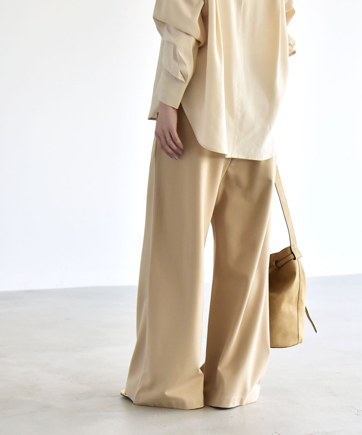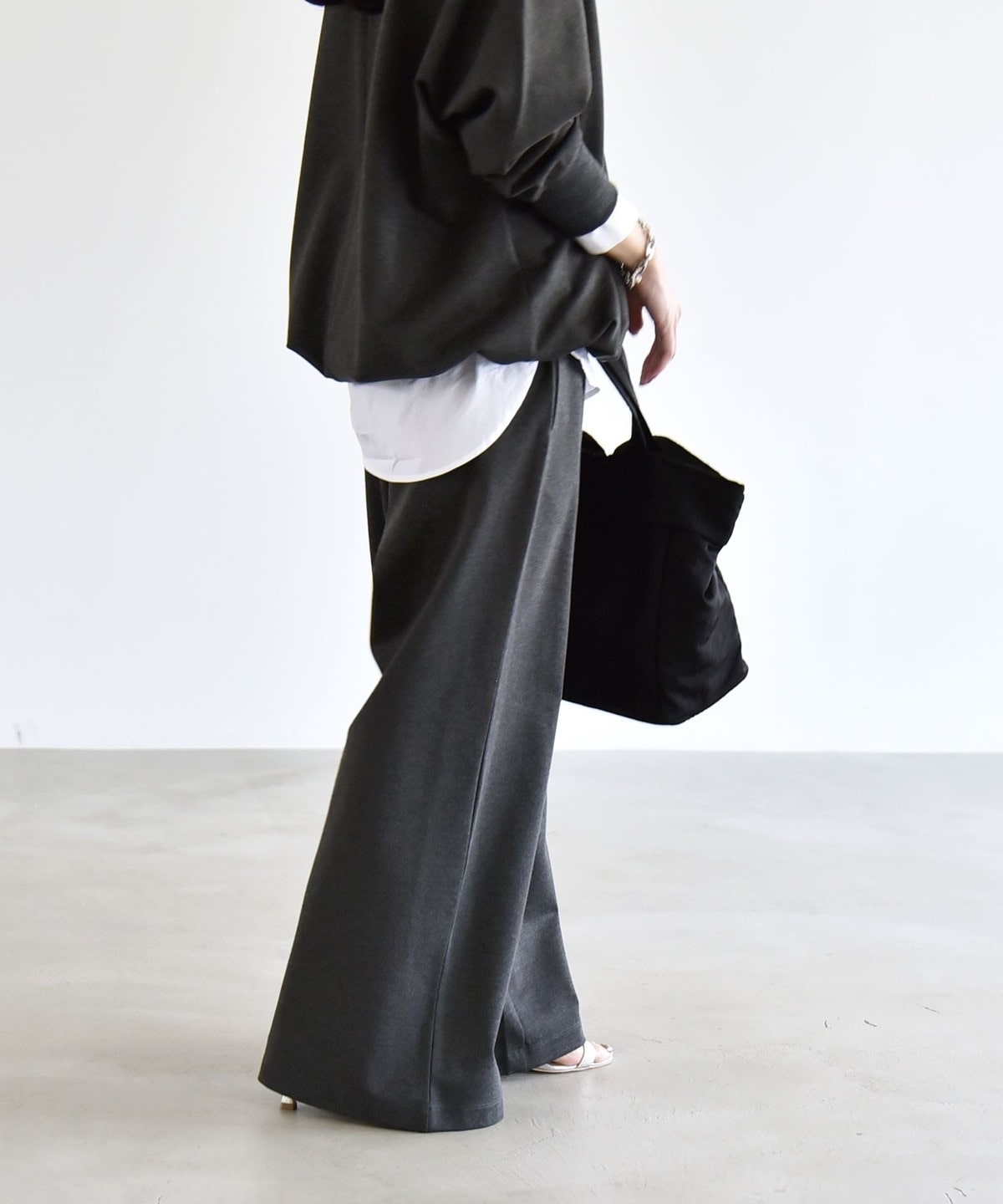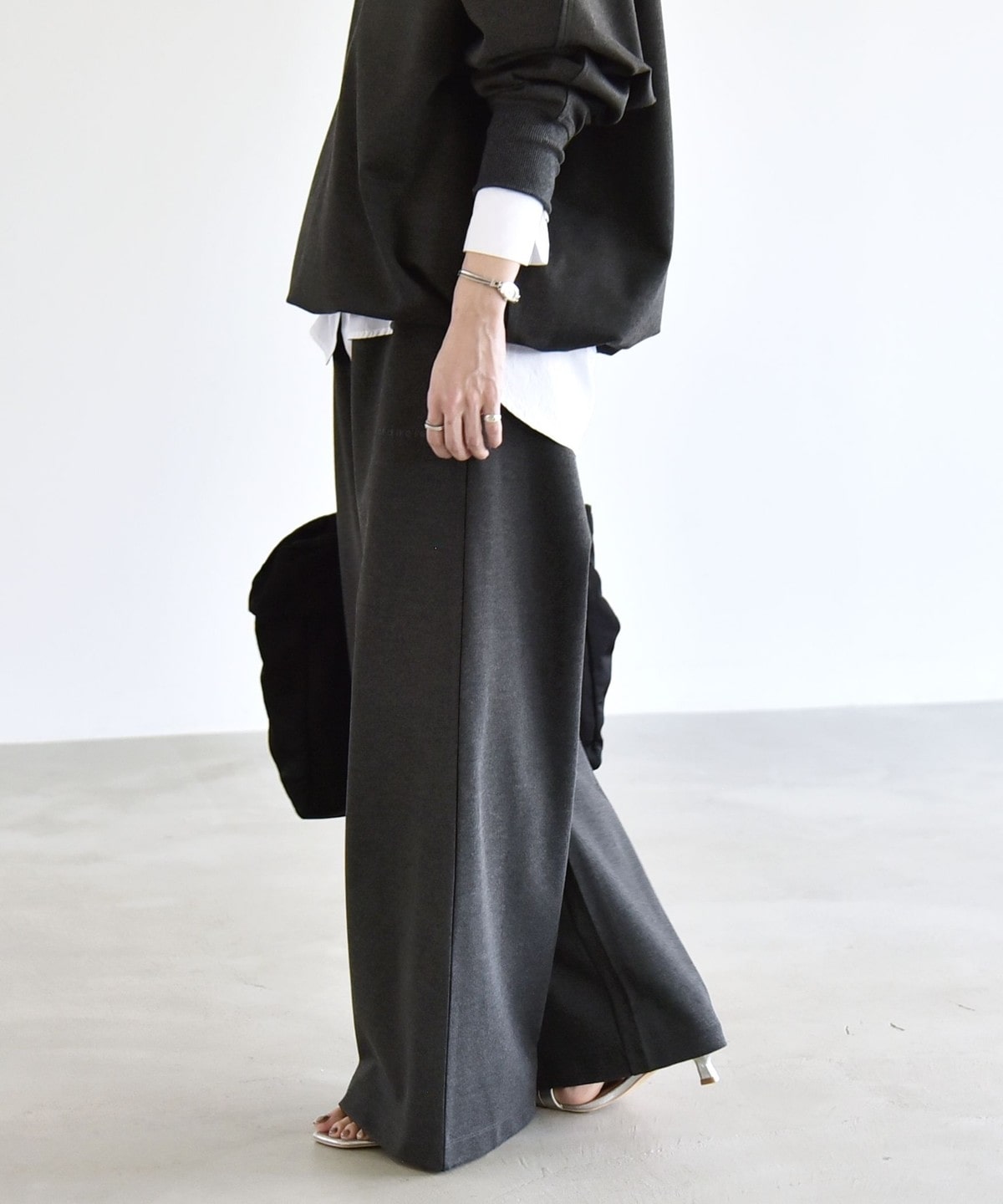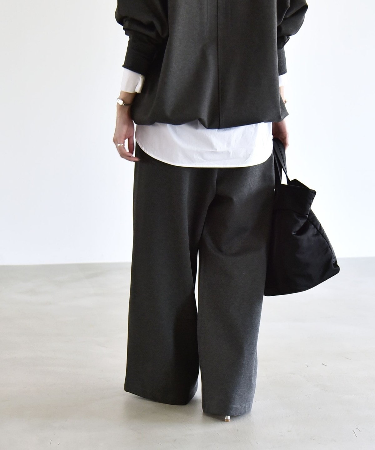 腰まわりをすっきり見せるミニマルなデザインながら、ルーズなシルエットがメリハリを演出してくれます。