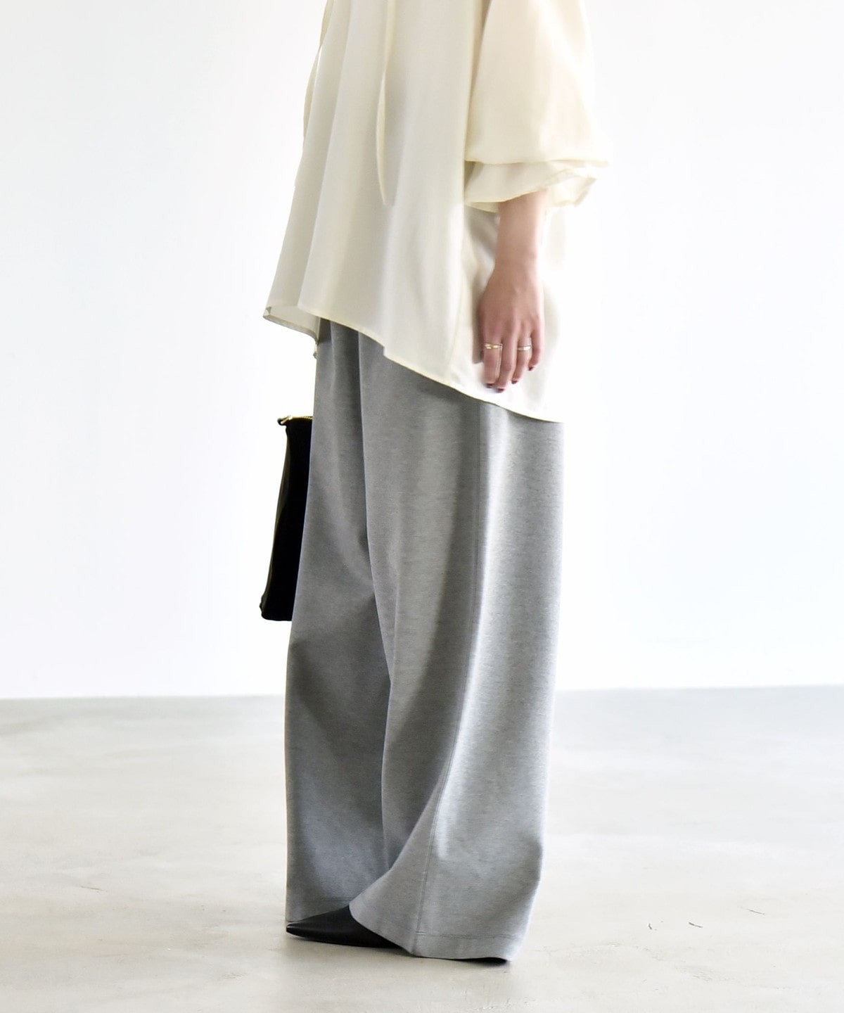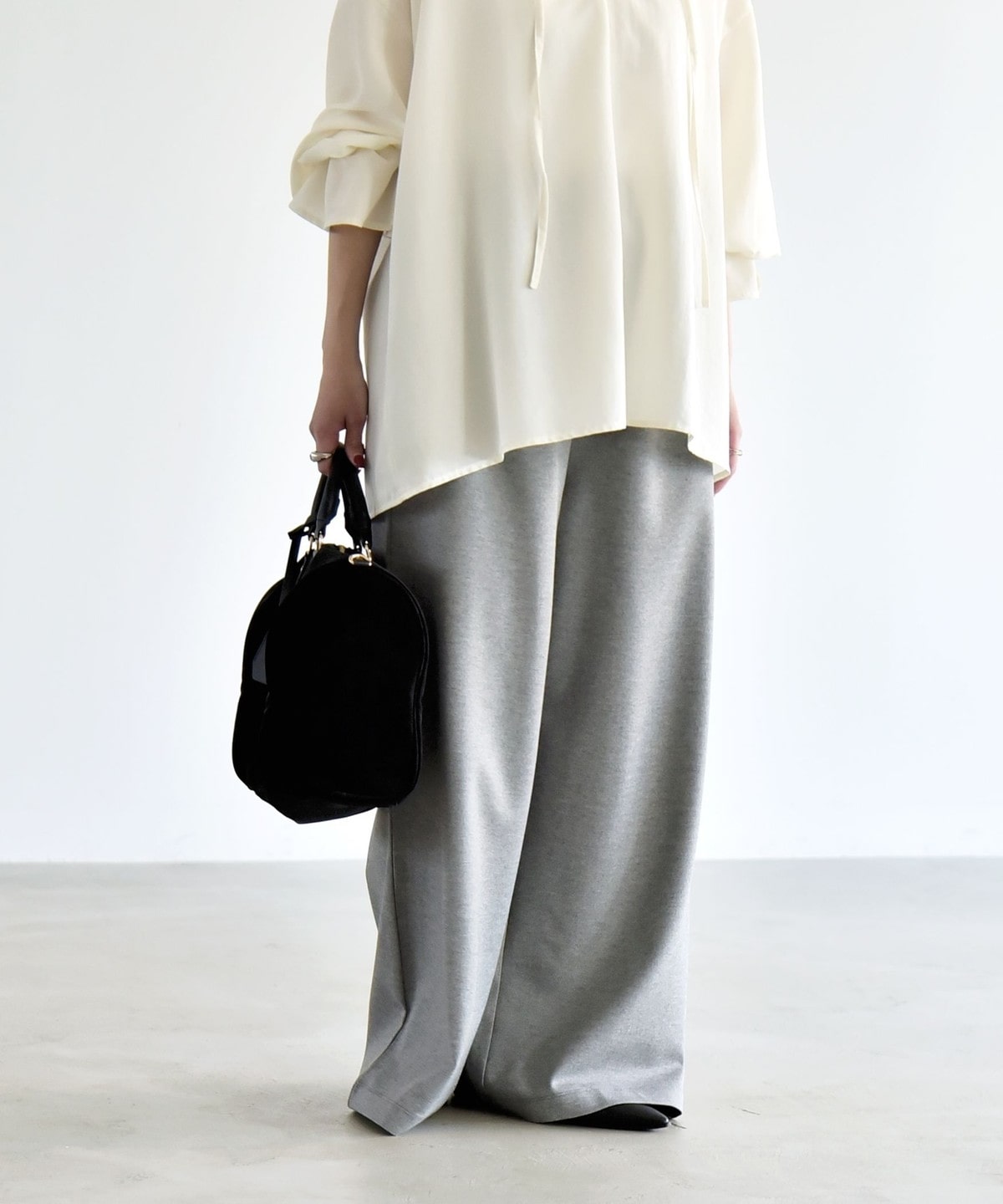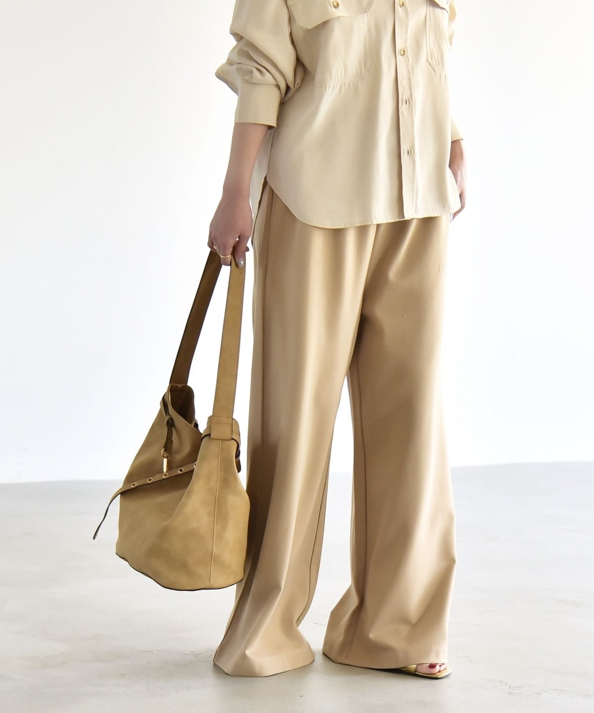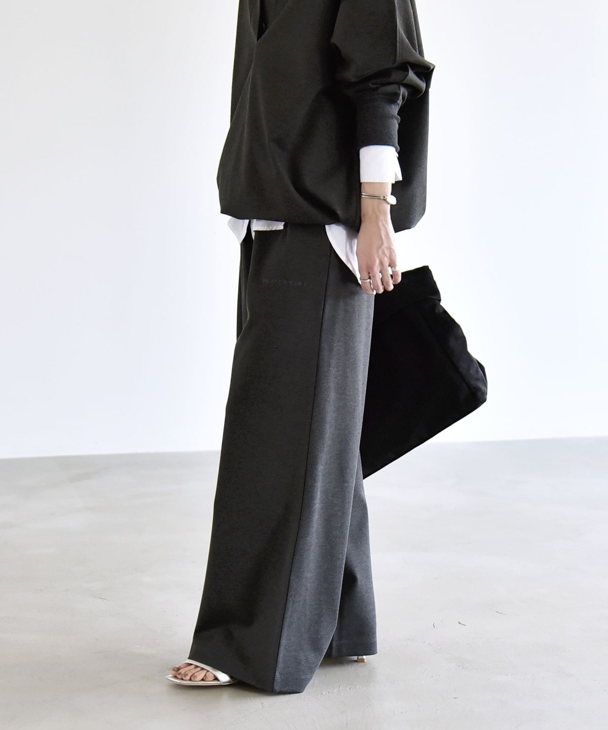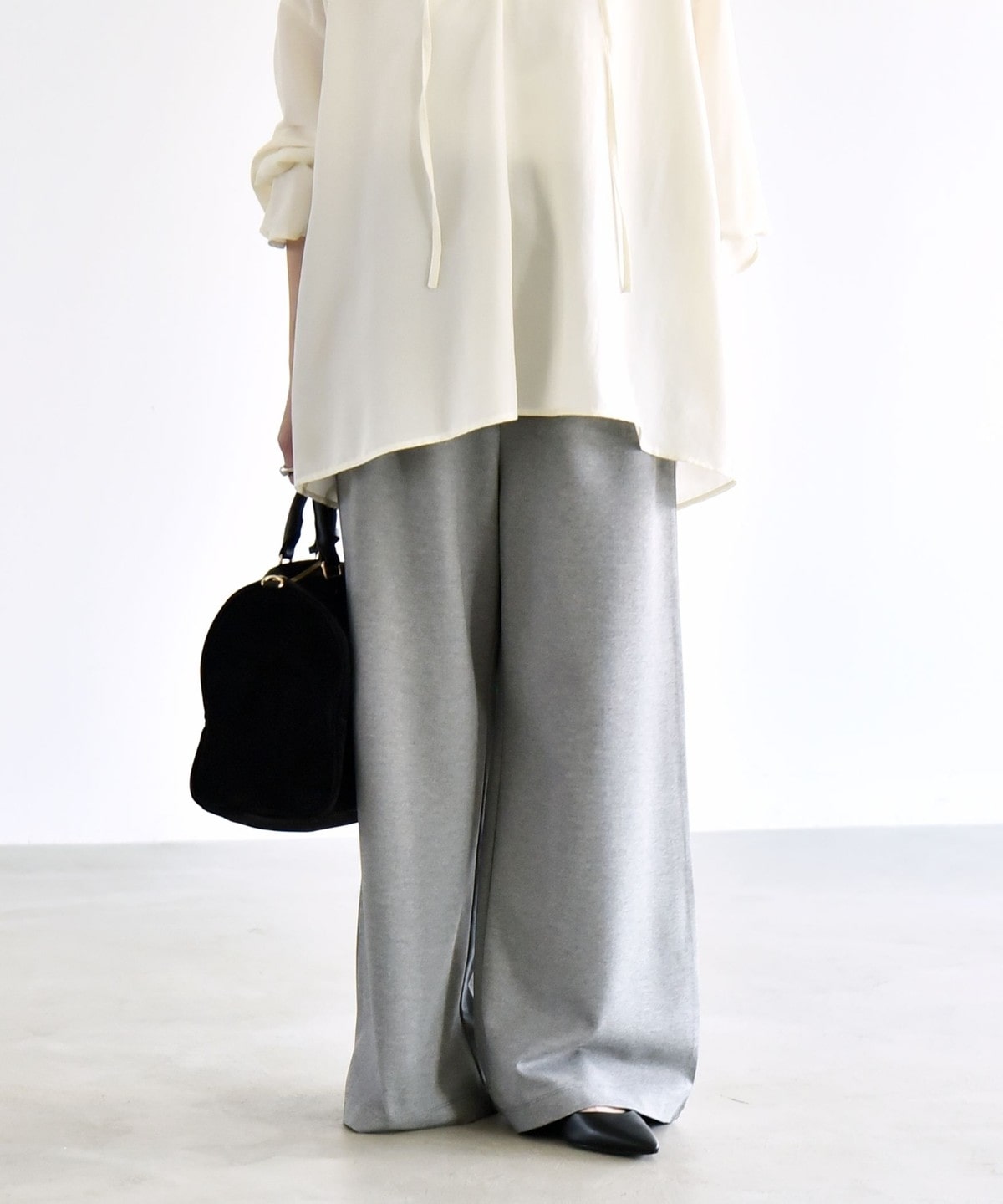 腰まわりをすっきり見せるミニマルなデザインながら、ルーズなシルエットがメリハリを演出してくれます。
