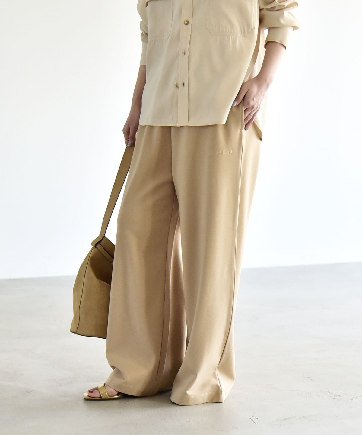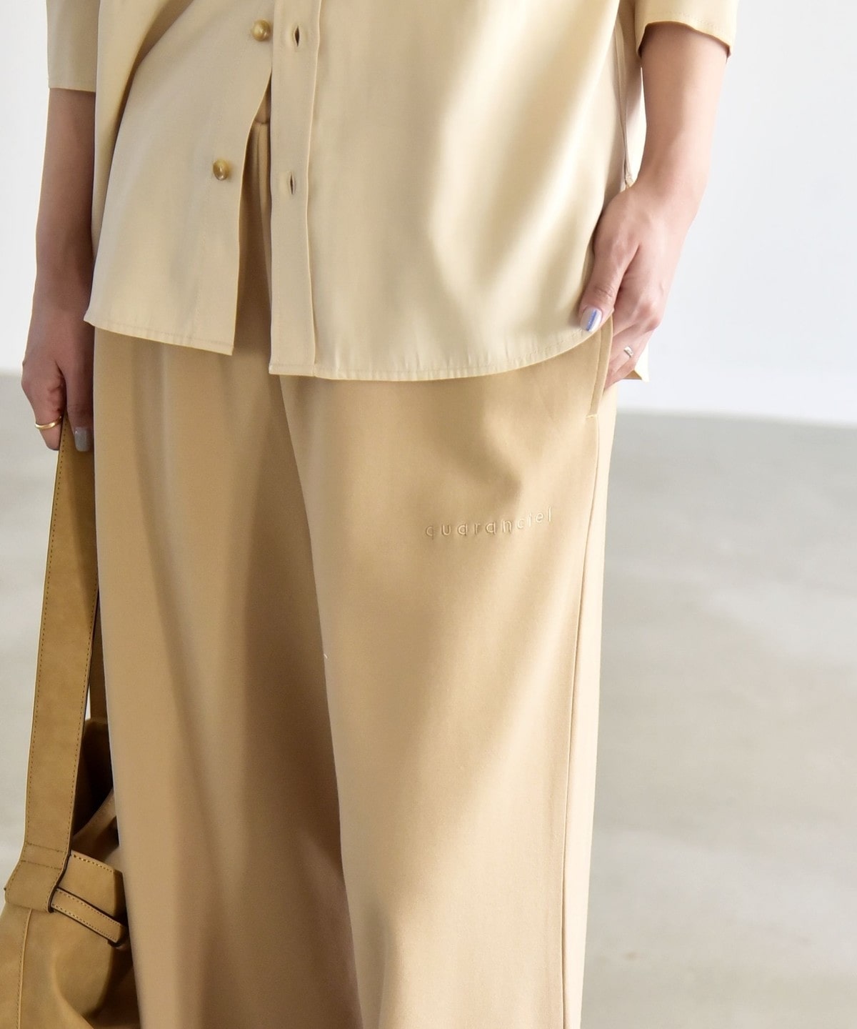 1. 《予約》quaranciel:〈洗濯機可能〉ライト ポンチ ロゴ刺繍 スウェット パンツ ベージュ