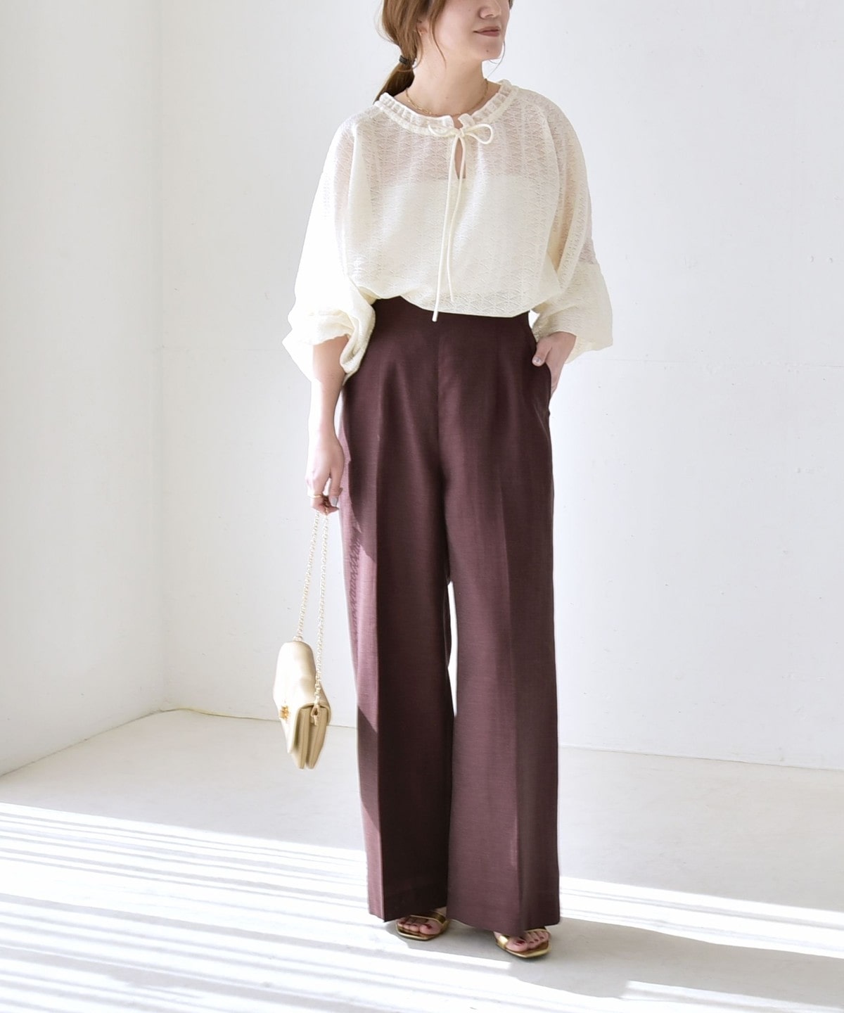 裏地付きのパンツなので、安心して透け感を楽しめます。