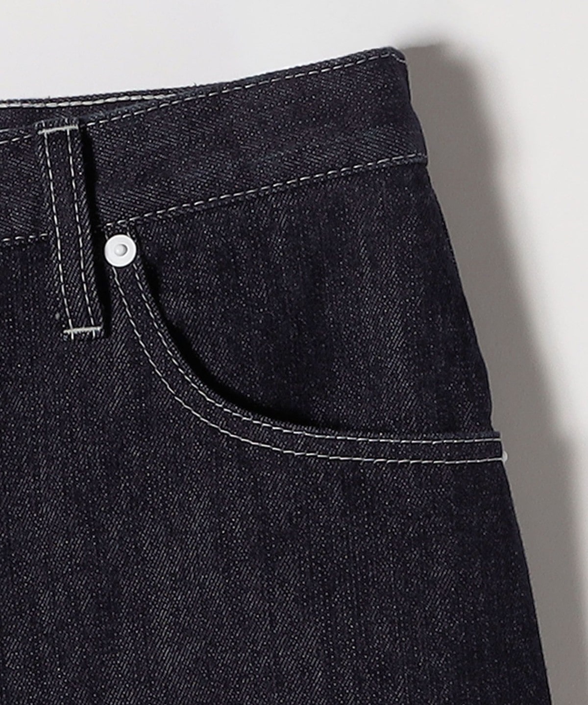 ホワイトデニムとワンウォッシュのインディゴネイビーの2色展開で、お色違いで揃えるのもおすすめ。