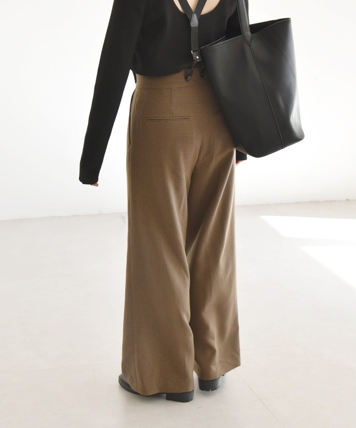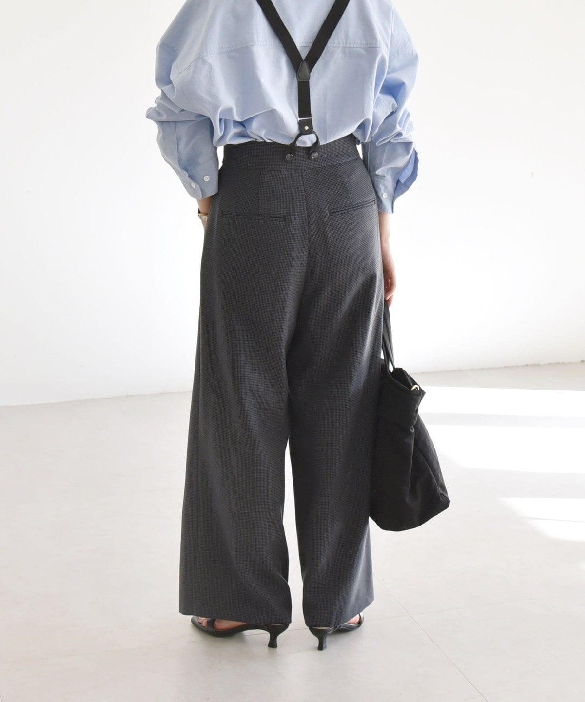 13. quaranciel:〈洗濯機可能〉チェック サスペンダー付 タック ワイド パンツ