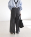 quaranciel:〈洗濯機可能〉チェック サスペンダー付 タック ワイド パンツ